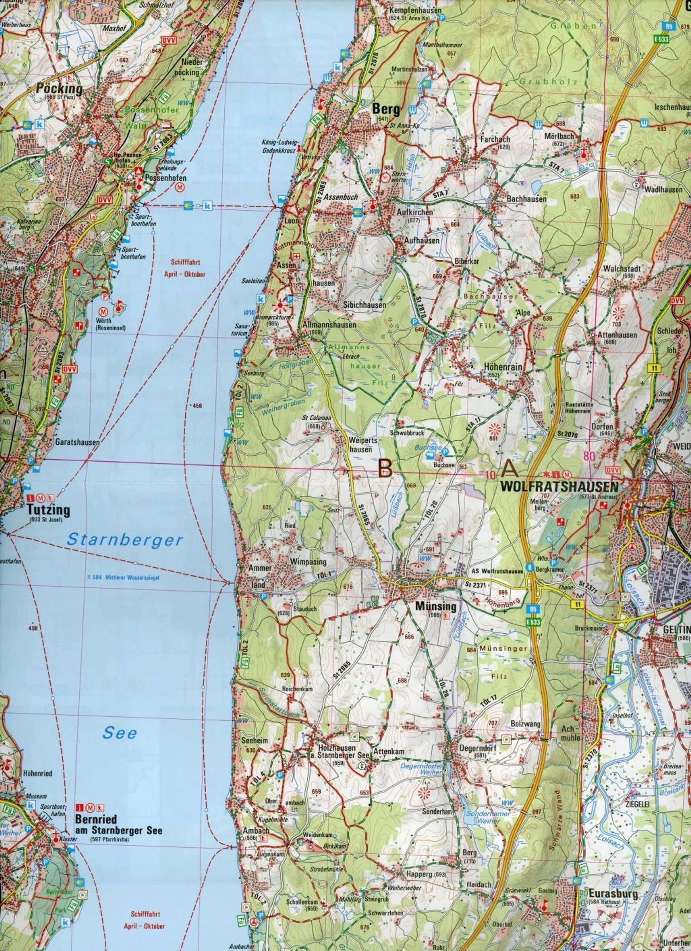 - Starnberg, Wolfratshausen, Bad Tölz, Penzberg, Holzkirchen, Lenggries, Kochelsee, Walchensee, Mangfallgebirge, Bayerisches Oberland, oberes Isartal, Benediktenwand, Herzogstand, Kloster Benediktbeuern, untere Loisach, Wallgau