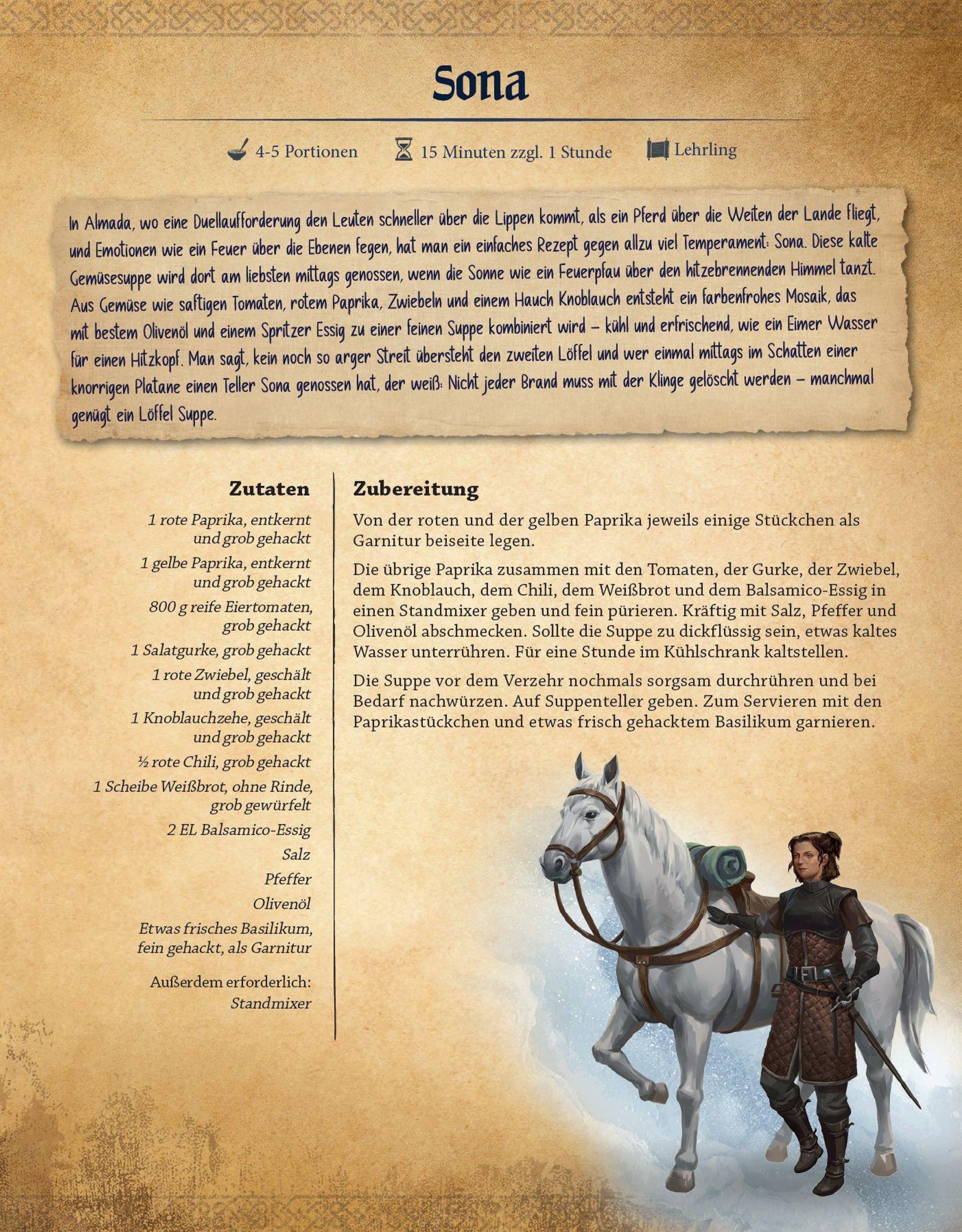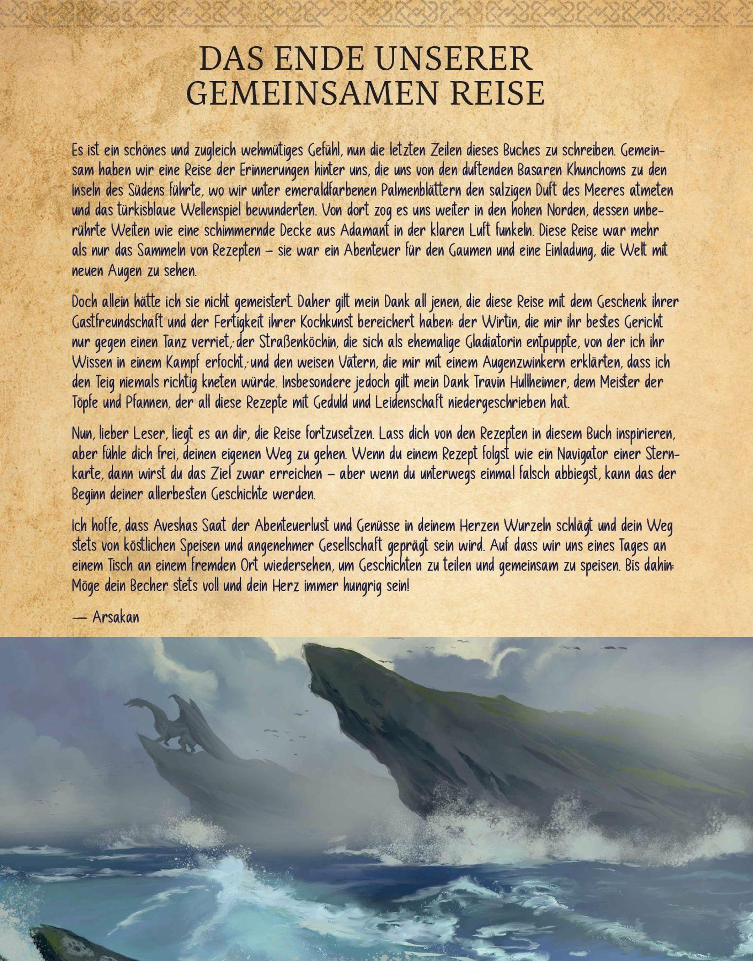 Dieses offizielle Kochbuch nimmt euch mit auf eine kulinarische Reise durch die vielgestaltigen Regionen und Kulturen Aventuriens, von den sturmgepeitschten Küsten Thorwals über die winterlichen Gefilde Bornlands bis zu den exotischen Märkten von Al'Anfa. Jedes Gebiet birgt seine ganz eigenen Rezepte, Zutaten und Aromen, so vielfältig wie die Völker, die dort leben. Und über allem steht dabei die Frage: Wie mundet¿s?