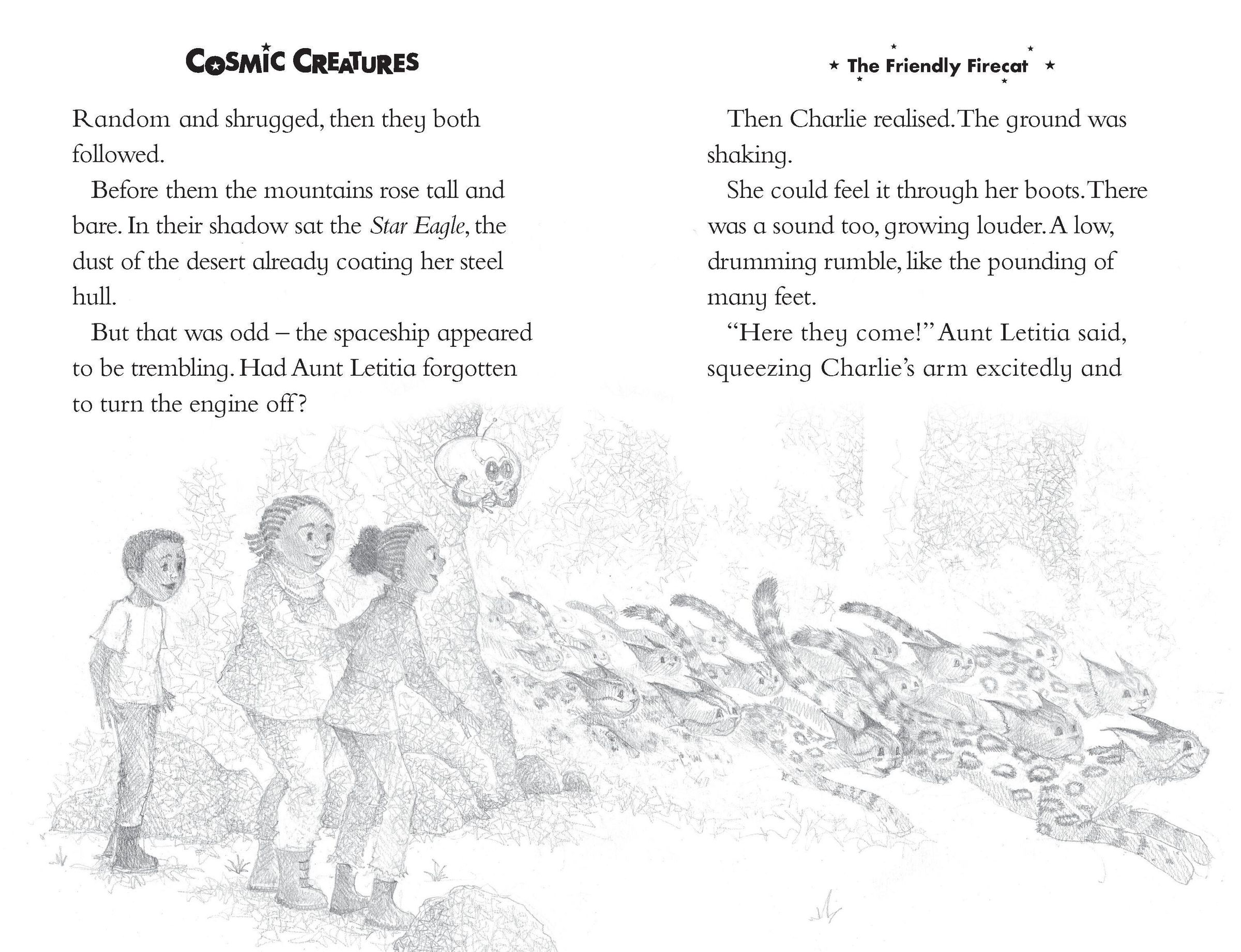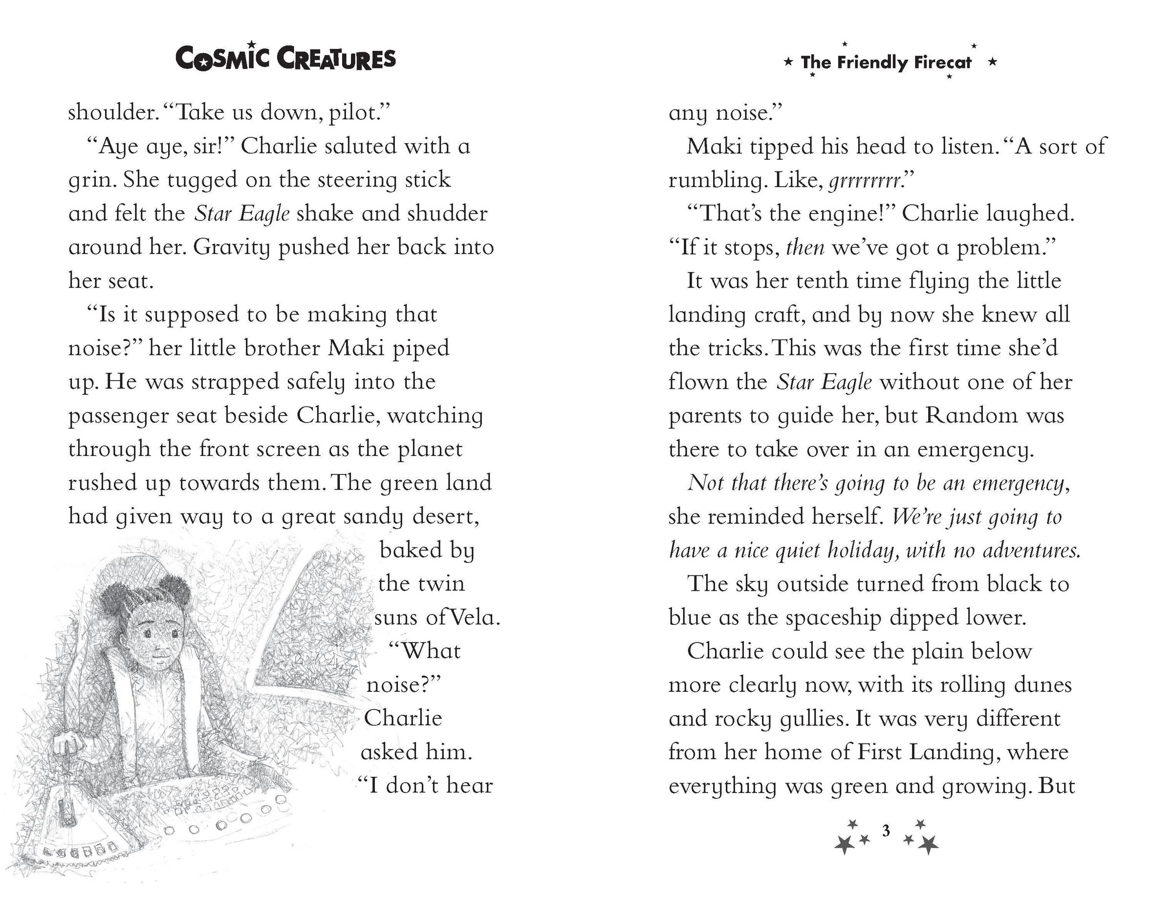 On a faraway planet, cute alien animals need help! Luckily, Charlie and her robot friend, Random, are ready for any rescue adventure. Charlie is on a special trip to see the migration of the firecats, the fastest animals on planet Vela! But when rustlers start kidnapping the cats, the herd stampede, and a sparkly little firekitten is left behind. Charlie and Random must come up with a plan to stop the rustlers and reunite the baby firecat with its family before it's too late. Fans of Zoe's Rescue Zoo and Holly Webb will love Cosmic Creatures ! Beautifully illustrated throughout by Sophy Williams, Cosmic Creatures is perfect for animal lovers ages 6+.