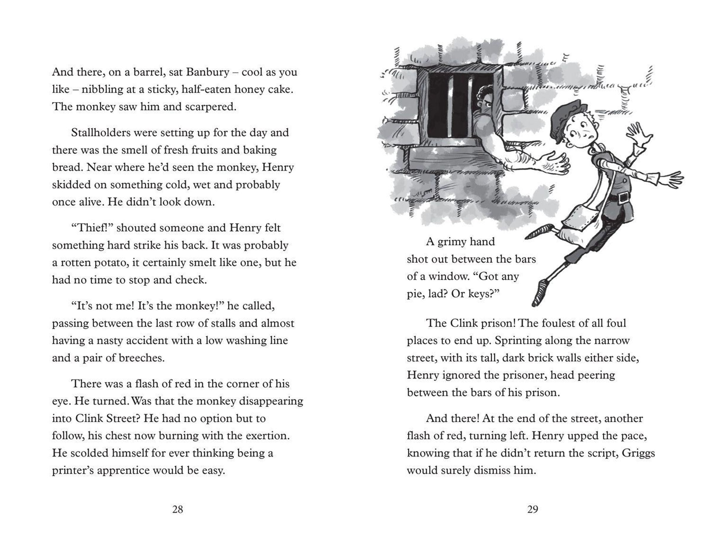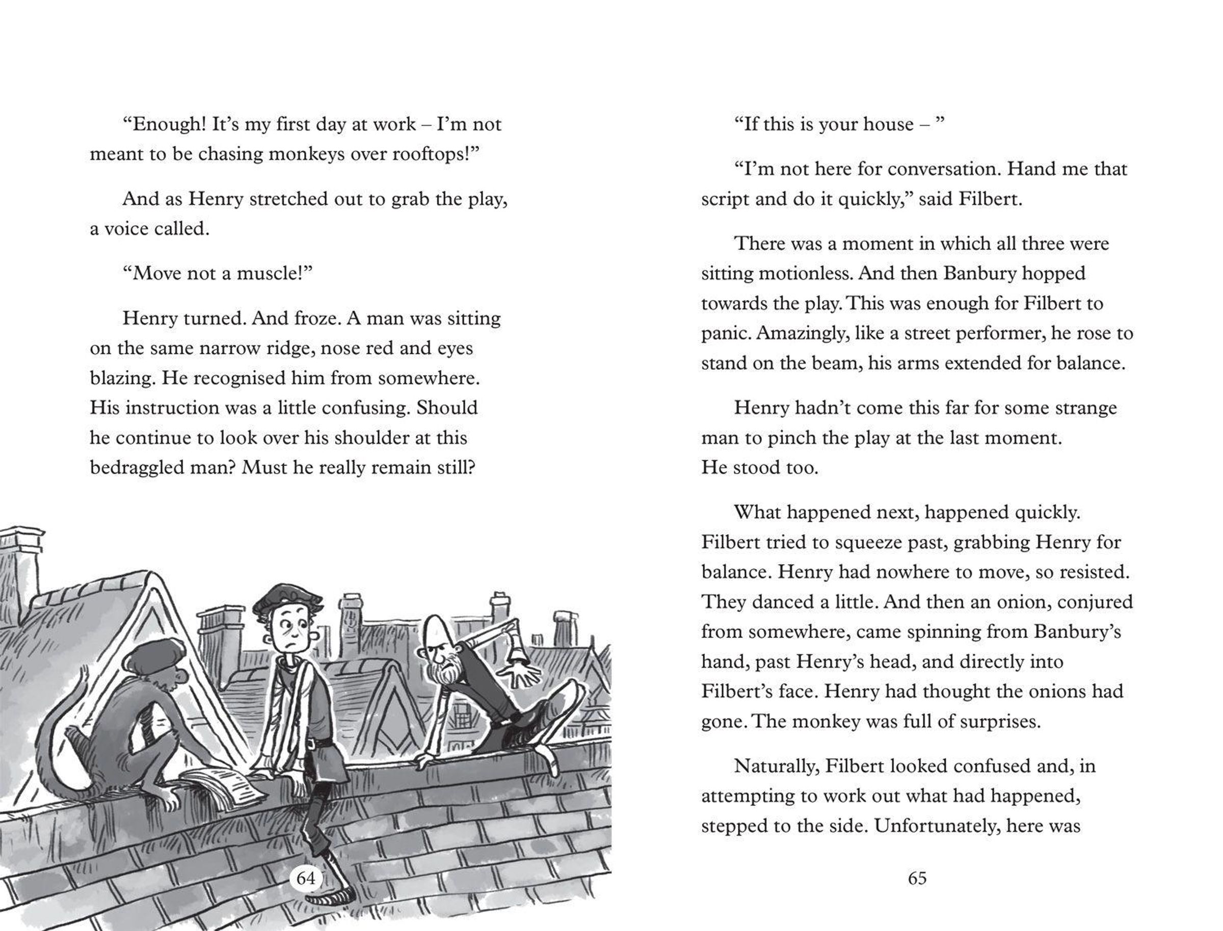 A missing play. A runaway monkey. A boy's first day on the job. What could possibly go wrong? The year is 1600, and Henry just wants to survive his first day as an apprentice at Griggs's print shop. When a mischievous monkey steals pages from the only complete copy of Shakespeare's A Midsummer Night's Dream, Henry is flung into a wild chase across London to get it back.