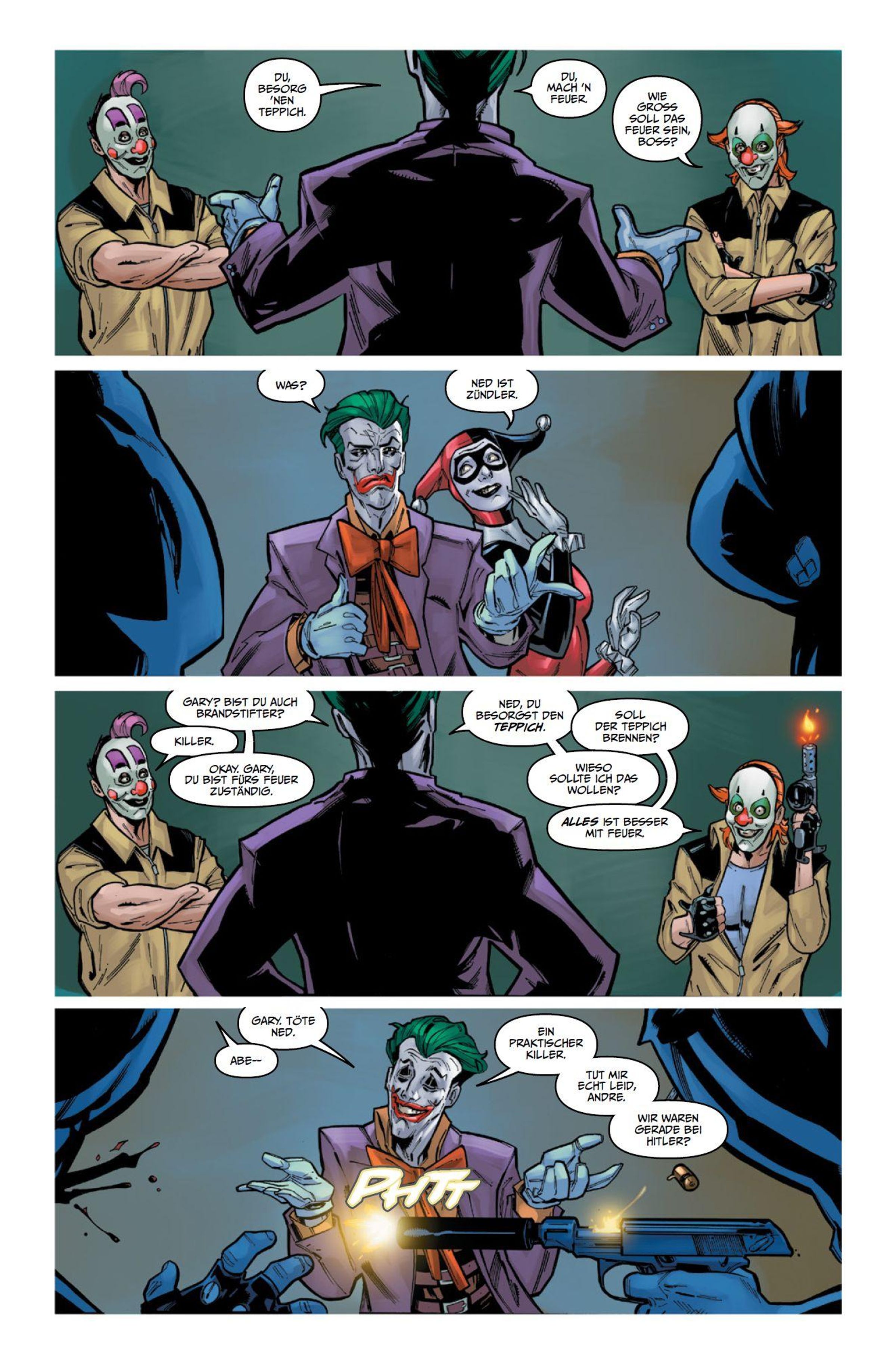 JOKER ALLMÄCHTIG! Der Joker ist der berüchtigtste Superkriminelle der Welt - doch immer wieder verliert er gegen seinen Erzfeind Batman! Jetzt aber könnte er gottgleiche Kräfte erlangen - durch ein mächtiges Artefakt, das die Helden der Justice Society gegen Ende des Zweiten Weltkriegs einem ihrer schlimmsten Gegner wegnahmen und versteckten! Der Joker und seine Gefährtin Harley Quinn machen sich auf die Suche danach ... Anschließend attackiert der wahnsinnige Killerclown, ausgestattet mit unglaublichen Kräften, nicht nur die Mitglieder der Justice League, sondern auch die alten Helden von damals. Batman, Superman, Starman und Wonder Woman erleiden schmerzhafte Verluste, bis es zum dramatischen Showdown kommt ...