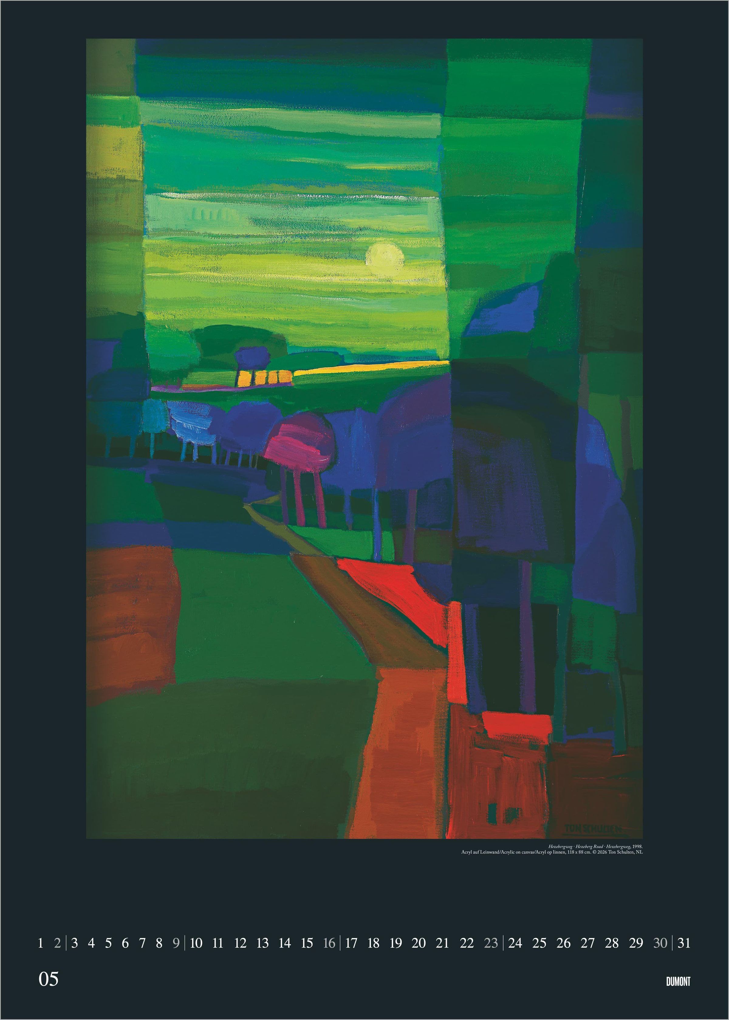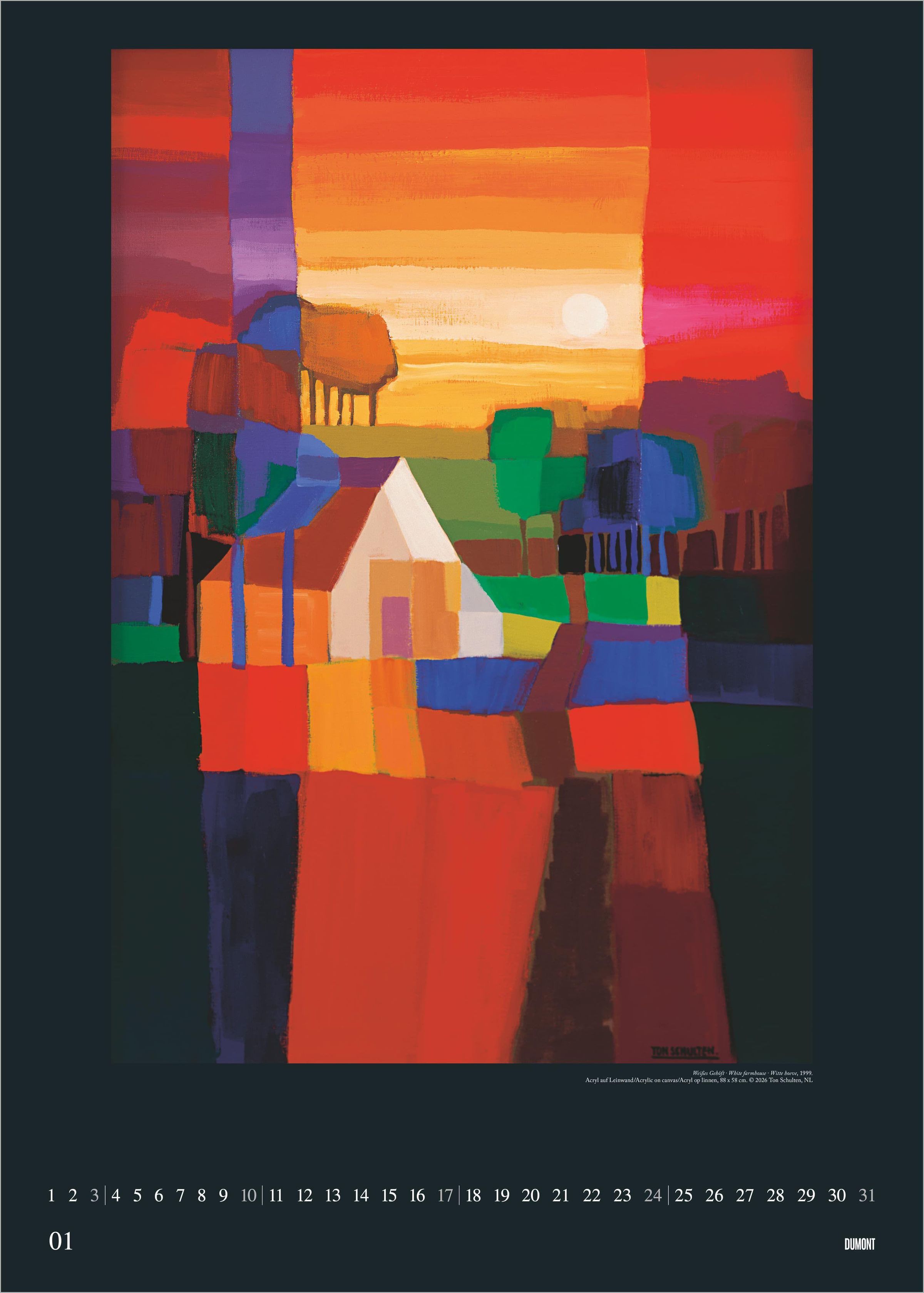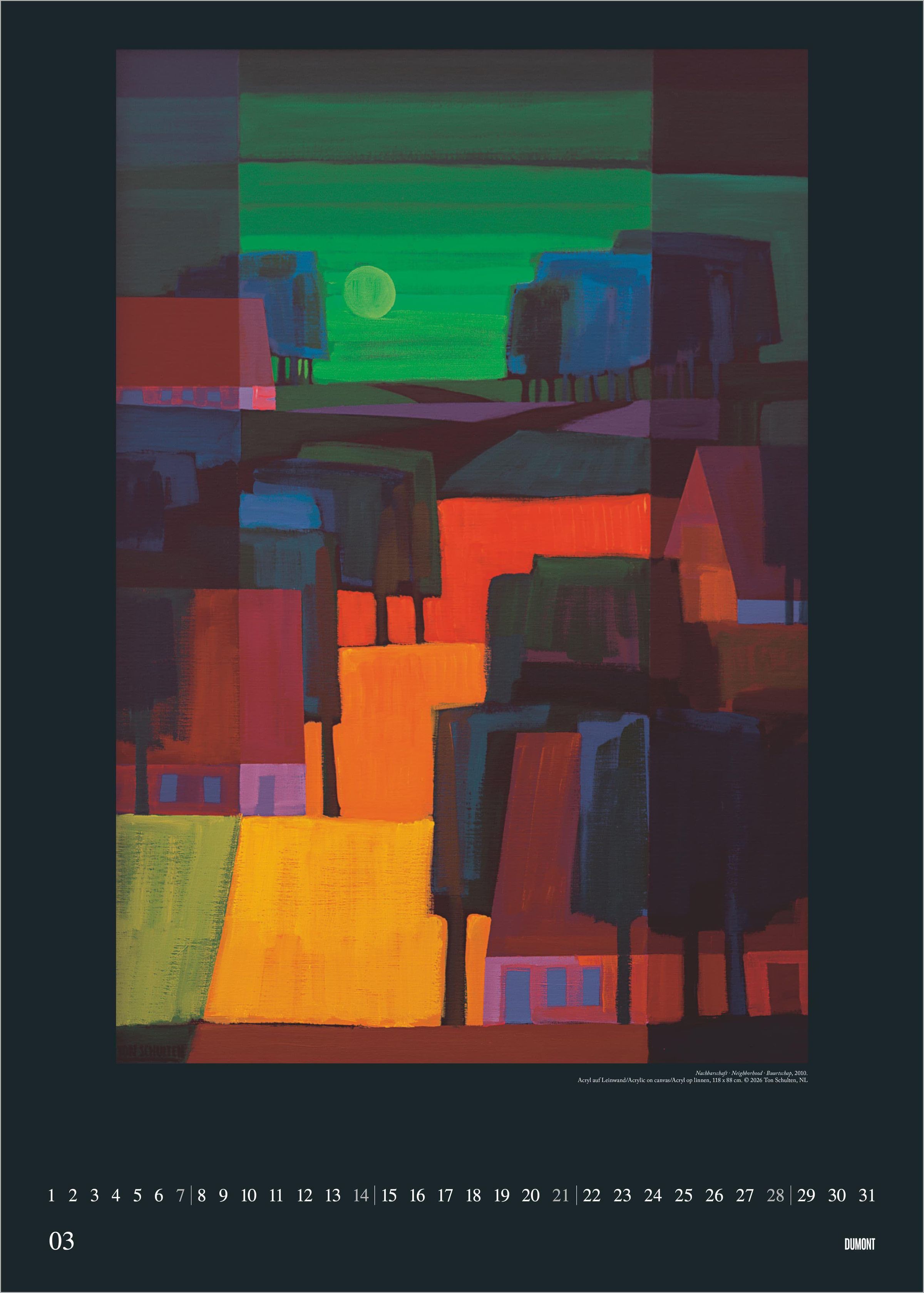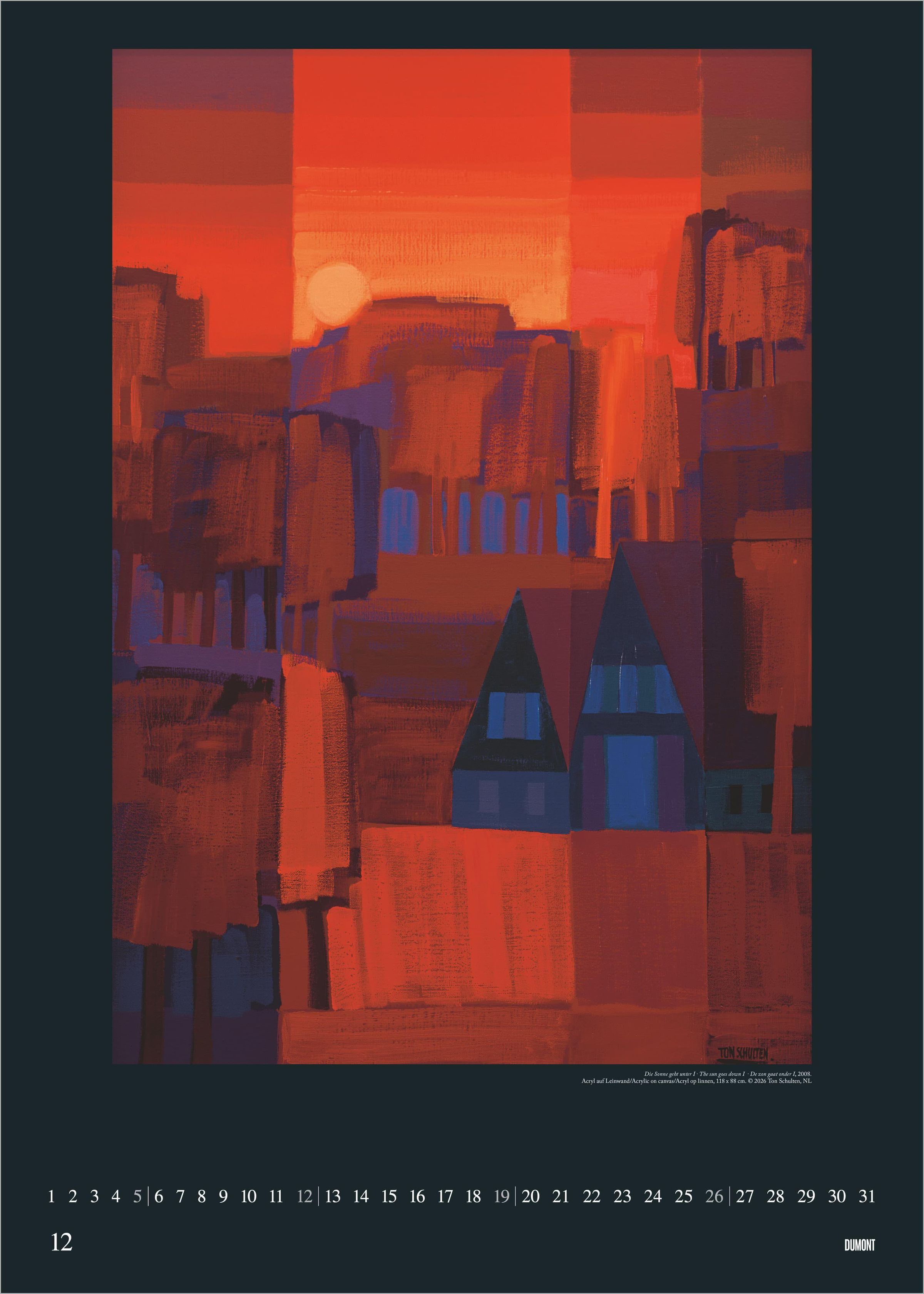 Erleben Sie die faszinierende Farbwelt des niederländischen Künstlers Ton Schulten: Der DUMONT Kunstkalender 2027 präsentiert 12 exklusive Gemälde in einem eindrucksvollen Poster-Format. Schulten gilt als Meister der abstrakten Malerei und begeistert mit einzigartigen Landschaftsmosaiken, die ausschließlich durch Farben und Formen entstehen. Seine Werke verleihen jedem Raum eine besondere, atmosphärische Tiefe.
