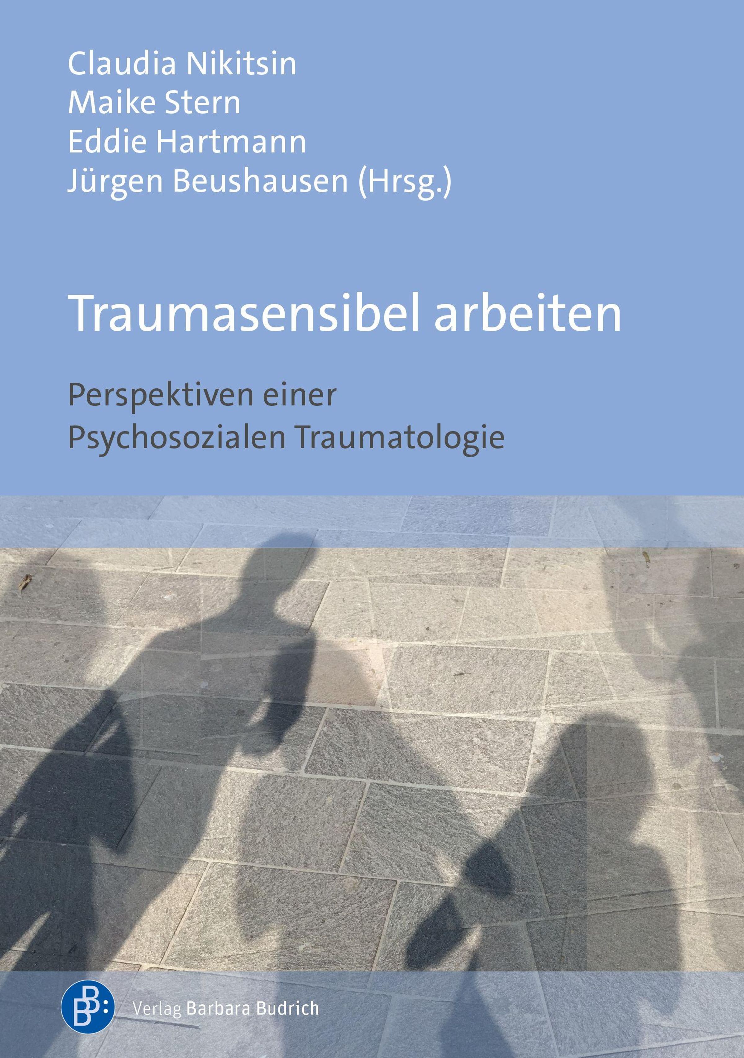 Buchtitel "Traumasensibel arbeiten", Schatten von Menschen auf Pflastersteinen., Buch
