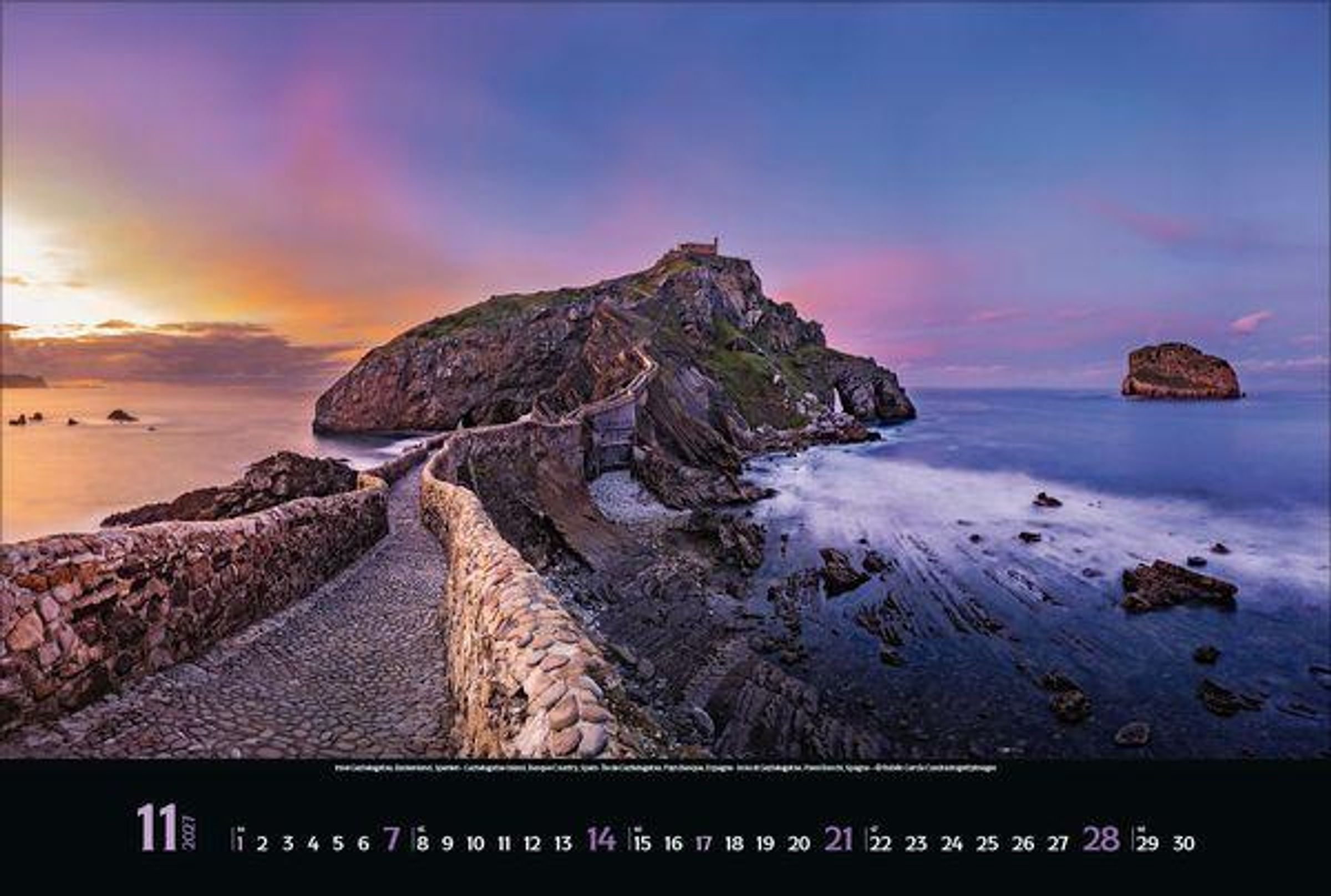 - Großer Foto-Wandkalender mit Bildern von Traumzielen. Edler schwarzer Hintergrund. PhotoArt Panorama Querformat: 58x39 cm.