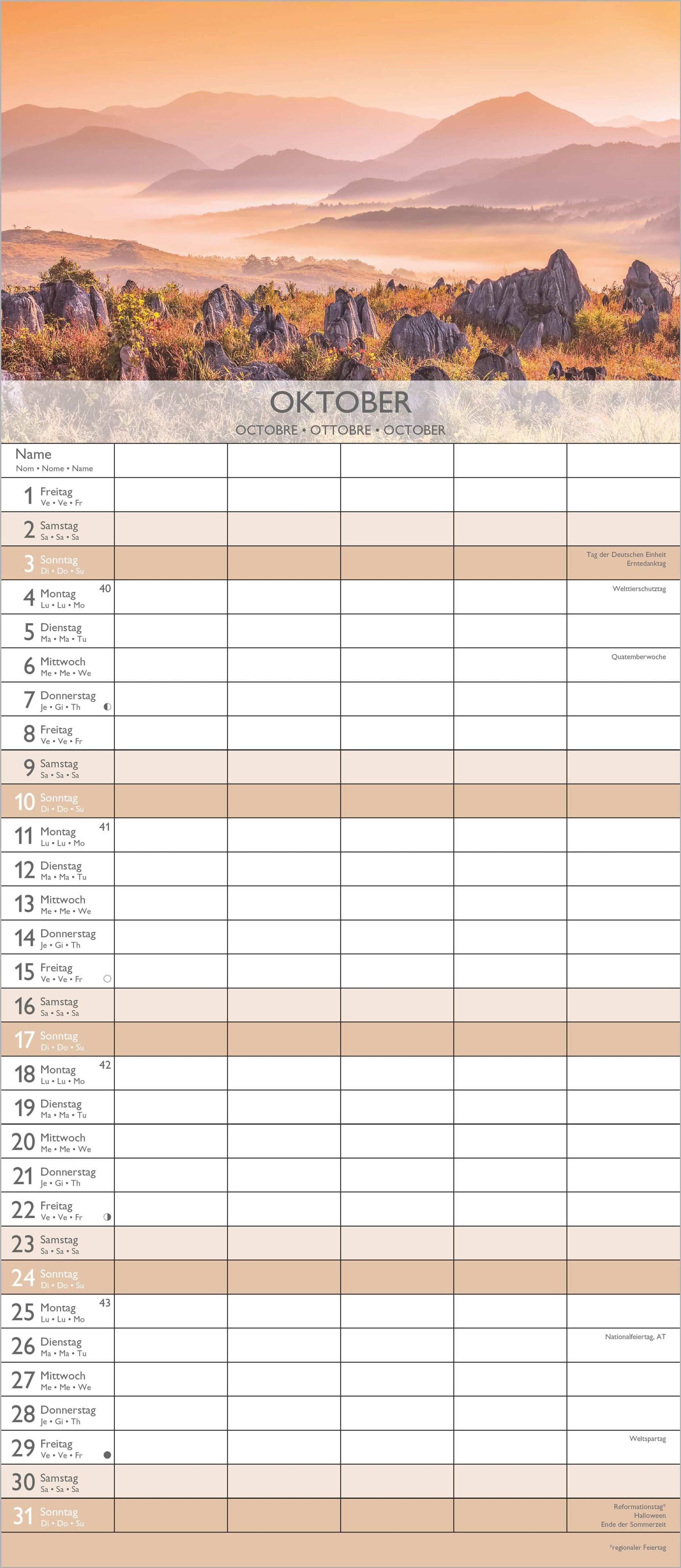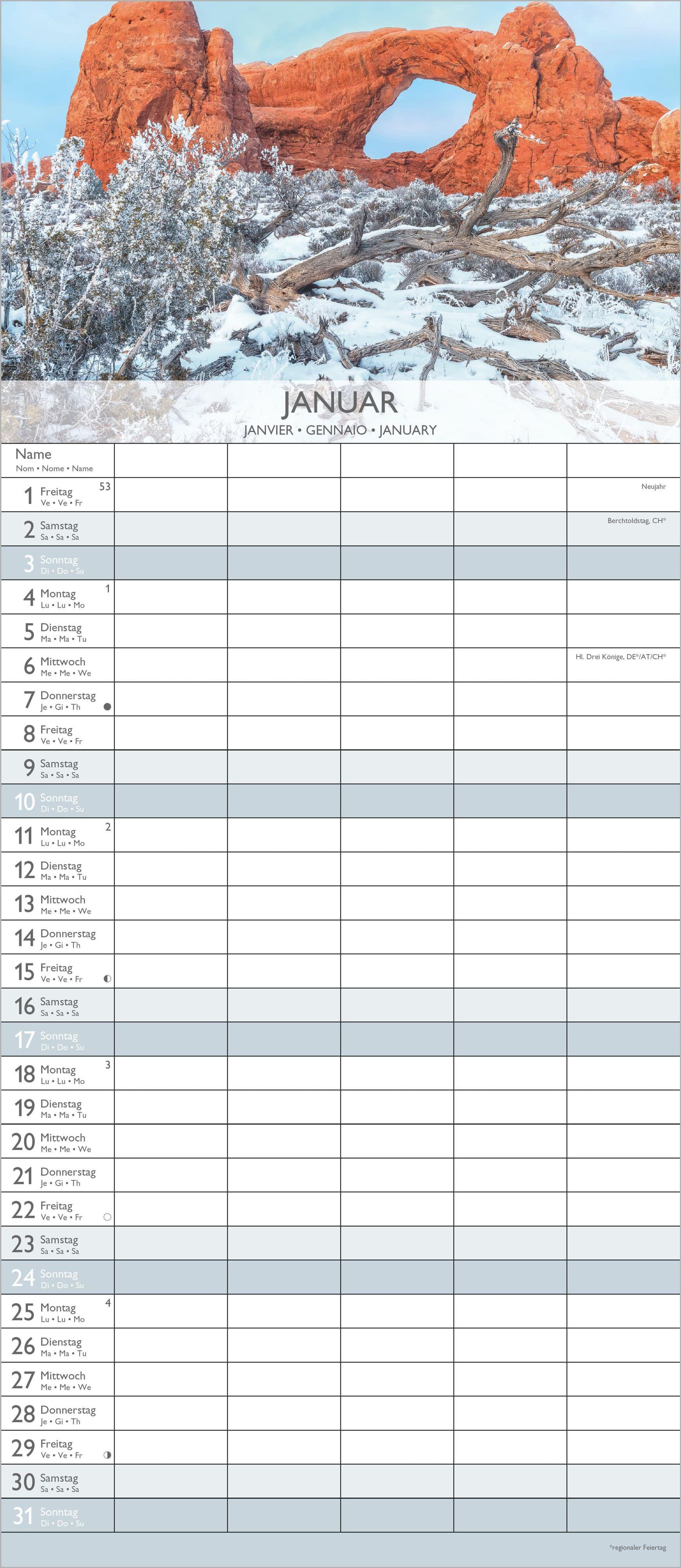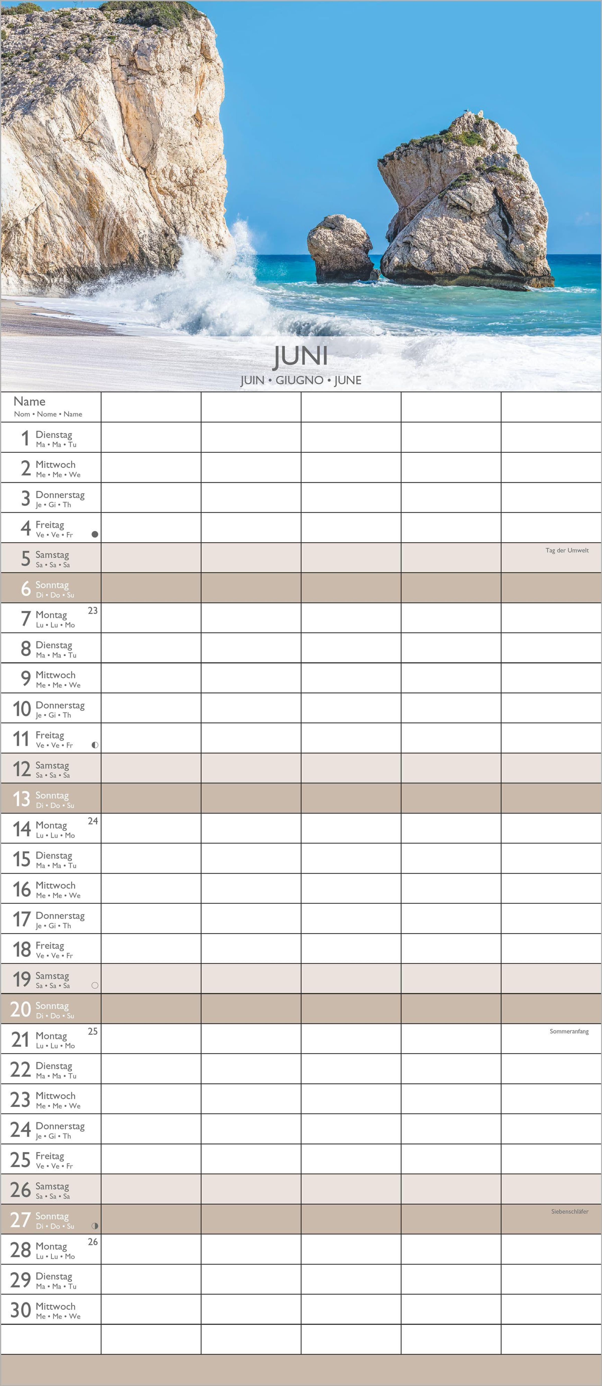 Der Alpha Edition Traumziele Familienkalender 2027 bringt Urlaubsfeeling in den Alltag. Mit fünf übersichtlichen Spalten, traumhaften Reisefotografien und einem mehrsprachigen Kalendarium behalten Familien, Paare oder WGs jederzeit alle Termine im Blick.