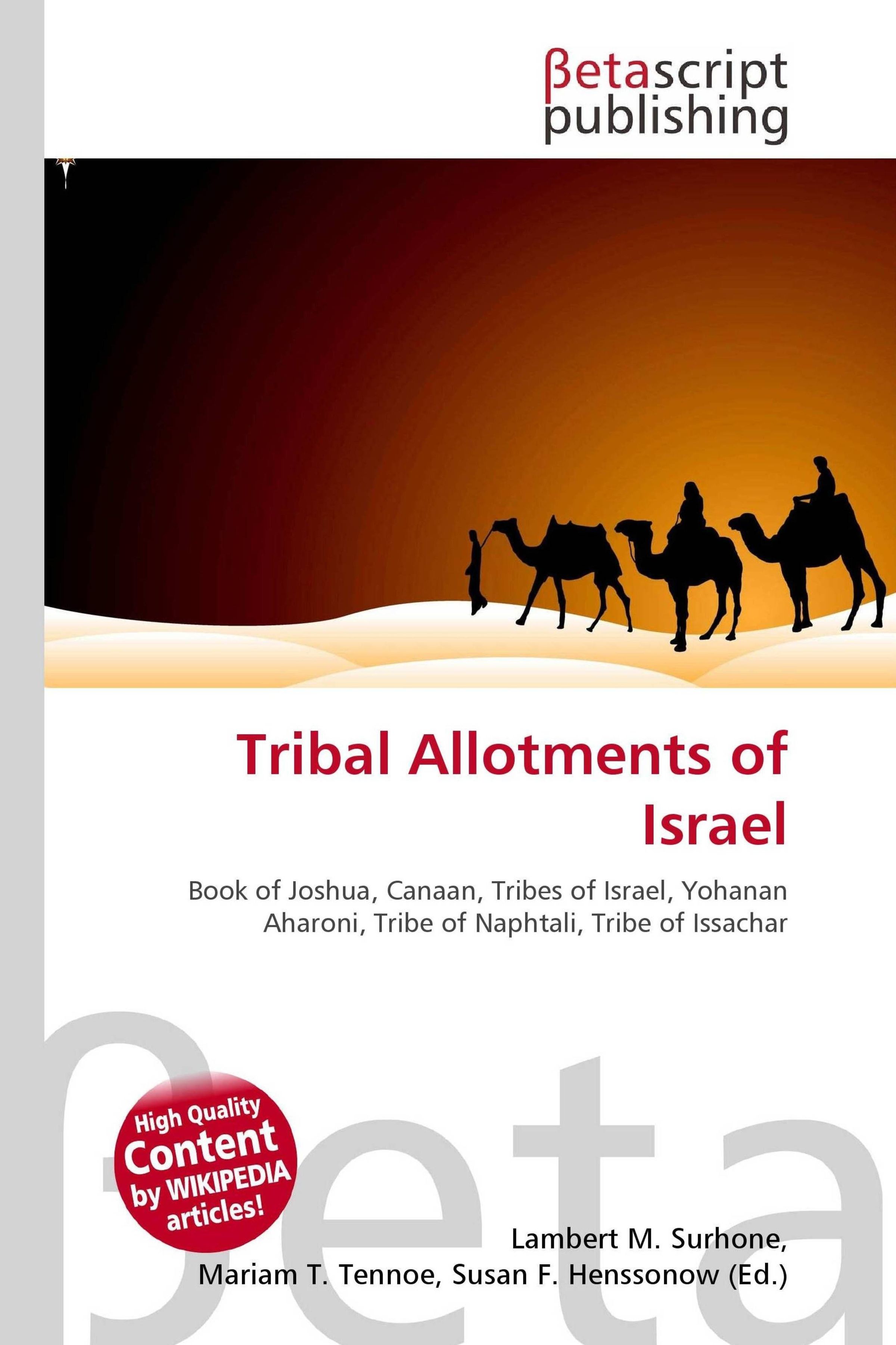 Please note that the content of this book primarily consists of articles available from Wikipedia or other free sources online. According to the Book of Joshua, Joshua divided the newly conquered land of Canaan into parcels, and assigned them to the Tribes of Israel by lot. The Book of Joshua describes the parcels by giving landmarks along the borders, or in some cases by listing the included cities. If the landmarks listed in Joshua can be identified with modern sites, the borders can be placed on a map. A general principle, articulated by the archaeologist Yohanan Aharoni, is that each town had a surrounding territory of villages and land that were dependent on it, and the tribal borders ran along the borders of these territories, rather than through the towns themselves. It may be possible to determine the borders of town territories by looking at archaeological field surveys.