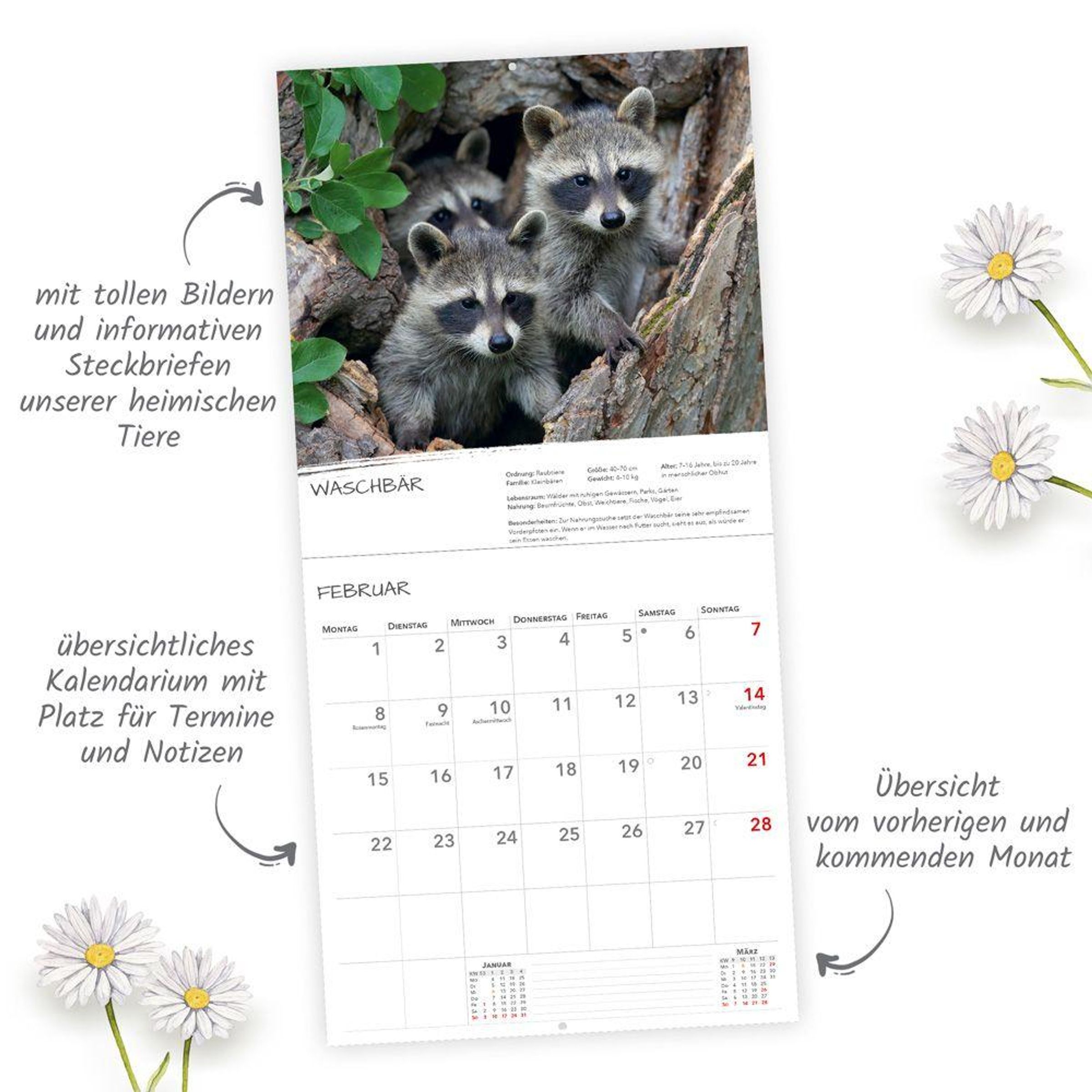 Im Wald, am Feldrand oder im Park um die Ecke - unsere heimische Tierwelt umgibt uns zu jeder Zeit. Der dekorative Broschurkalender Heimische Tierwelt im Format 30 x 30 cm präsentiert jeden Monat herrliche Fotos von 12 allbekannten Wald- und Wiesenbewohnern mit zusätzlichen, spannenden Informationen zu den einzelnen Tieren. Dank des übersichtlichen Kalendariums mit viel Platz für Termine und Erinnerungen hilft der Kalender wunderbar beim Organisieren des Alltags. Das perfekte Geschenk für alle naturverbundenen Tierfreunde!