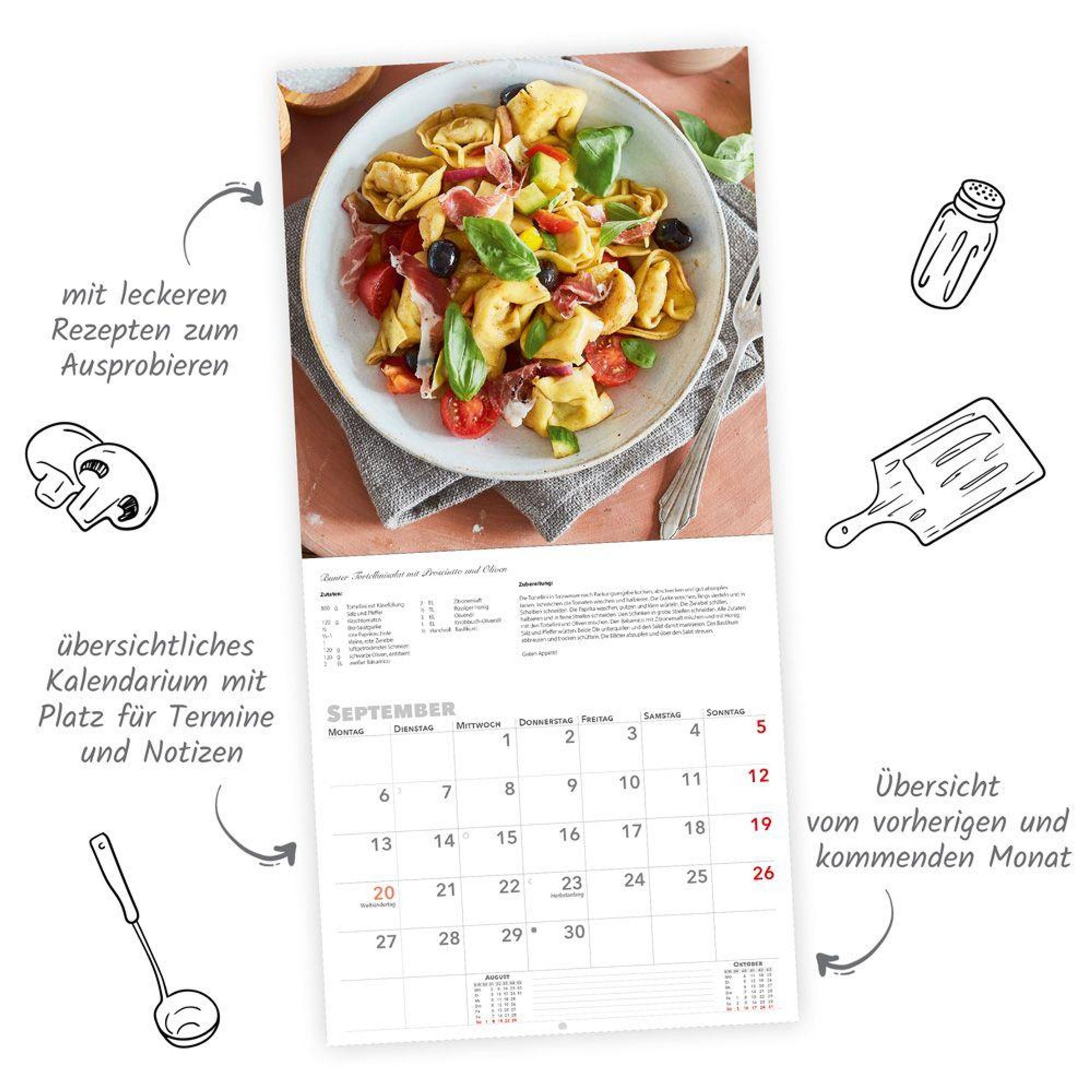 Auf die Löffel, fertig, los! - Dieser Kalender ist ein absolutes Muss in der Küche. Der dekorative Broschurkalender Küche im Format 30 x 30 cm präsentiert jeden Monat leckere Rezepte zum Ausprobieren. Dank des übersichtlichen Kalendariums mit viel Platz für Termine und Erinnerungen hilft der Kalender wunderbar beim Organisieren des Alltags. Das perfekte Geschenk für alle Gourmets!