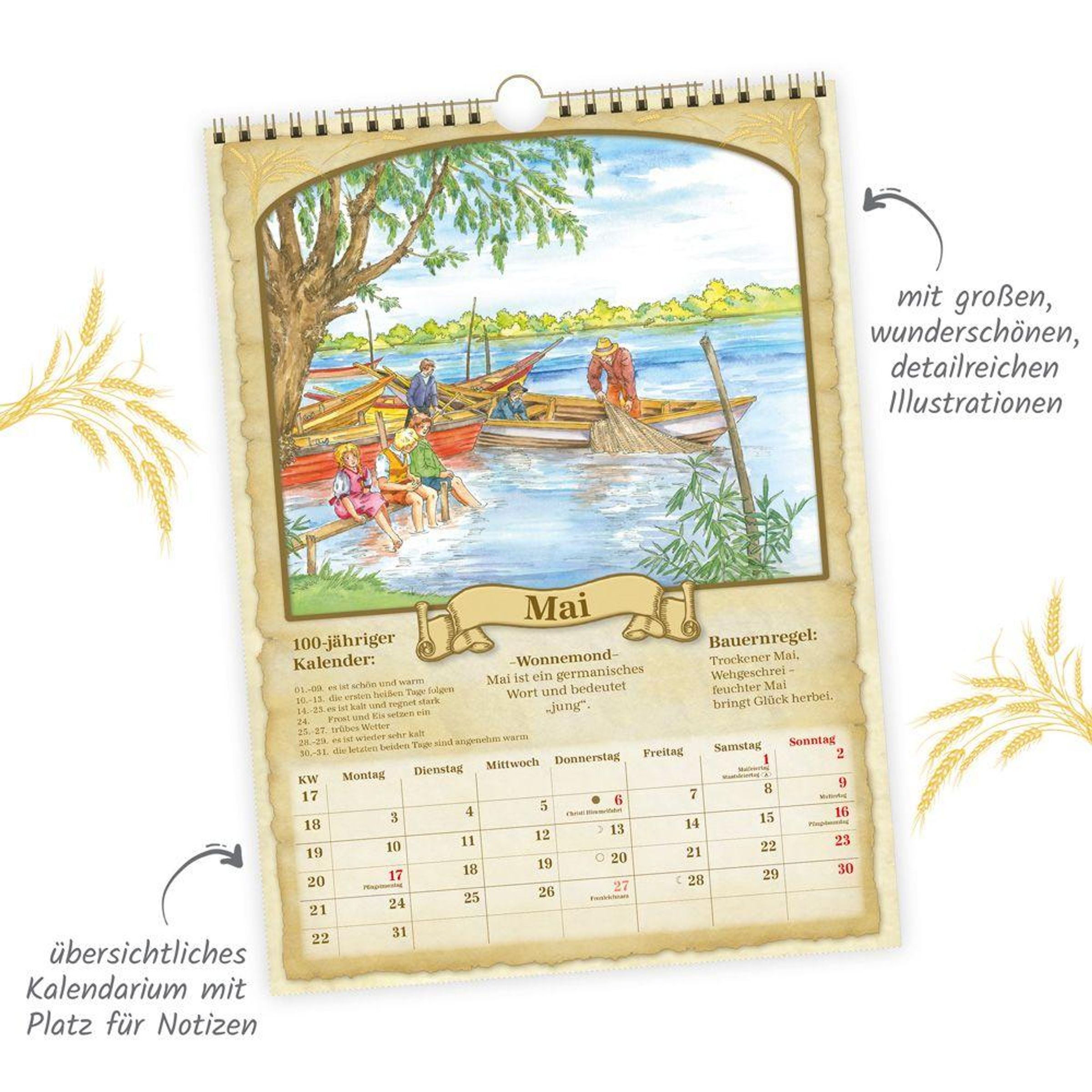 Der dekorative Kalender im Format 24 x 33 cm mit seinen herrlichen Fotos rückt die Geschichte in den Fokus und wartet mit Bauernregeln und hundertjährigem Wetter in jedem Monat auf. Dank gut ablesbaren Kalendariums, markierter Feiertage, Mondphasen und Platz für Notizen hilft der Kalender außerdem ganz wunderbar beim Organisieren des Alltags.