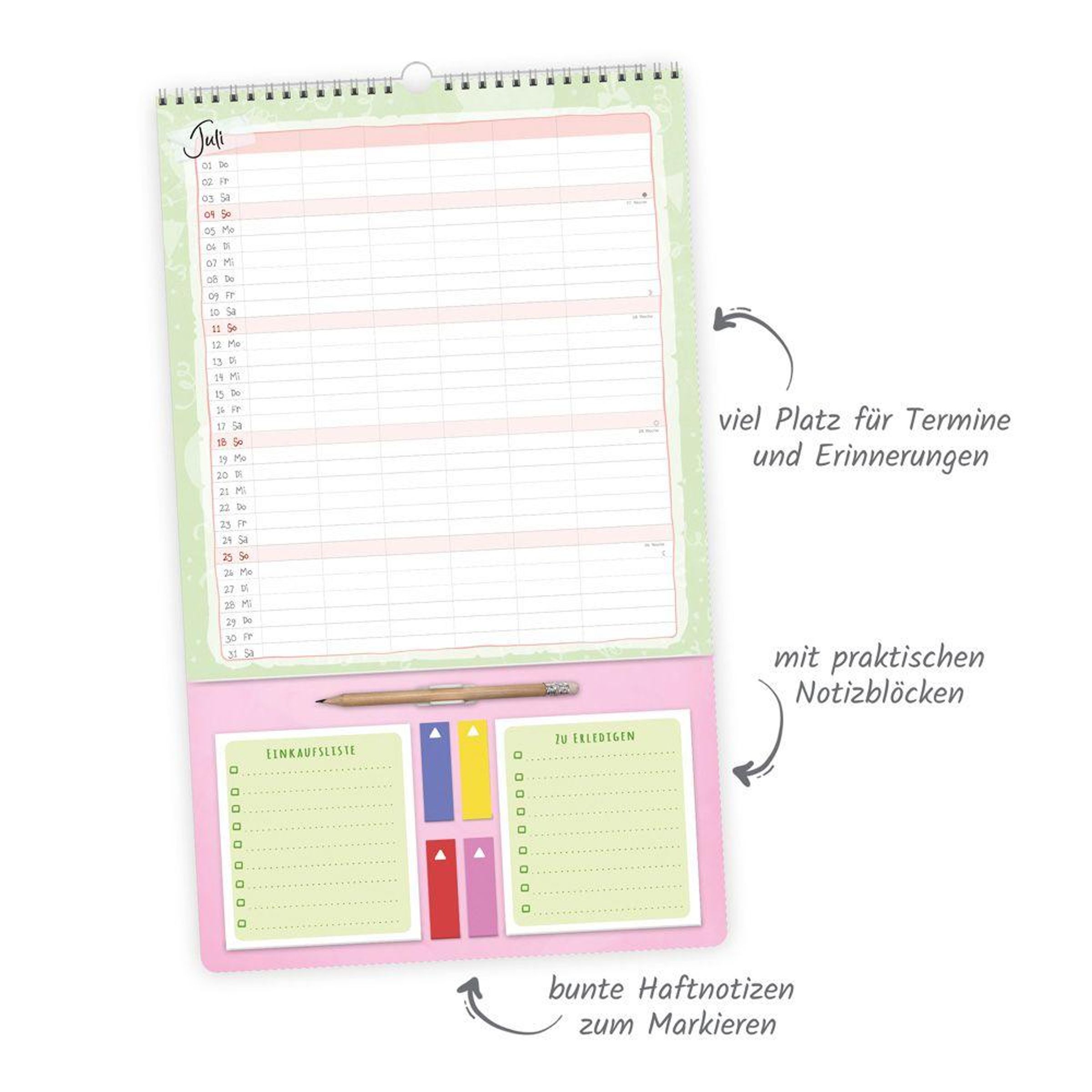 Damit keiner sagen kann, er hätte nichts gewusst! Der Familienkalender zeigt alle wichtigen Termine der gesamten Familie auf einen Blick. So wird der Kalender ein unverzichtbarer Alltagshelfer im aktiven Familienleben. Wie jedes Jahr hilft der Familienkalender auch in den kommenden zwölf Monaten, Pläne und Termine im Griff zu behalten. Mit freundlichen Farben, dezenten Grafiken, dem übersichtlichen Kalendarium und jeder Menge Platz für Notizen, Termine oder Erinnerungen ist er ein perfekter Begleiter durch den Familienalltag. So kommt Ordnung in die Pläne aller Familienmitglieder und nichts gerät durcheinander.