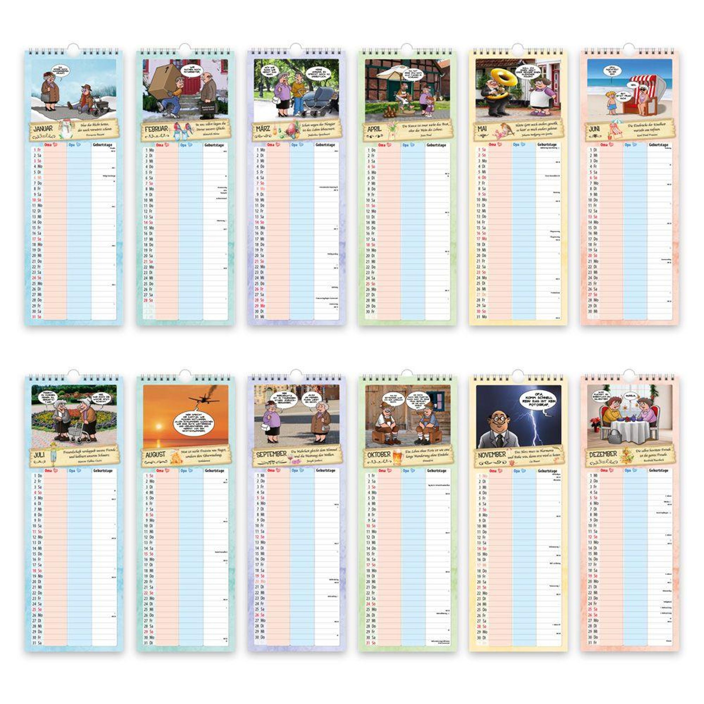 Der OMA UND OPA Streifenkalender im Format 15 x 42 cm ist ein unverzichtbarer Alltagshelfer im aktiven Rentnerleben. Wie jedes Jahr hilft er auch in den kommenden zwölf Monaten, Pläne und Termine im Griff zu behalten. Mit Witz, Tipps, leckeren Rezeptideen, stimmungsvollen Fotos und altbewährten Bauernregeln ist er ein fröhlich-beschwingter Begleiter durch den Alltag. In dem gut ablesbaren Kalendarium befindet sich Platz für Notizen, wie Erinnerungen an Veranstaltungen oder Termine. So kommt Ordnung in den Alltag, die Pläne geraten nicht durcheinander. Den Lauf der Monate versüßt unser OMA UND OPA Streifenkalender Ihnen mit Bauernregeln, Geburtstagssprüchen, leckeren Rezepten von damals und heute, wertvollen Gesundheitstipps und Karikaturen zum Schmunzeln von Christian Habicht auf der Blattrückseite. Auf dem Rückcover schließlich befindet sich ein Überblick über die Schulferien aller Bundesländer, damit die Ferientermine der Enkel auf einen Blick erkennbar sind. Das perfekte Geschenk um den Großeltern, Freunden oder sich selbst ein ganzes Jahr lang gute Laune und unterhaltsame Kurzweil zu schenken.