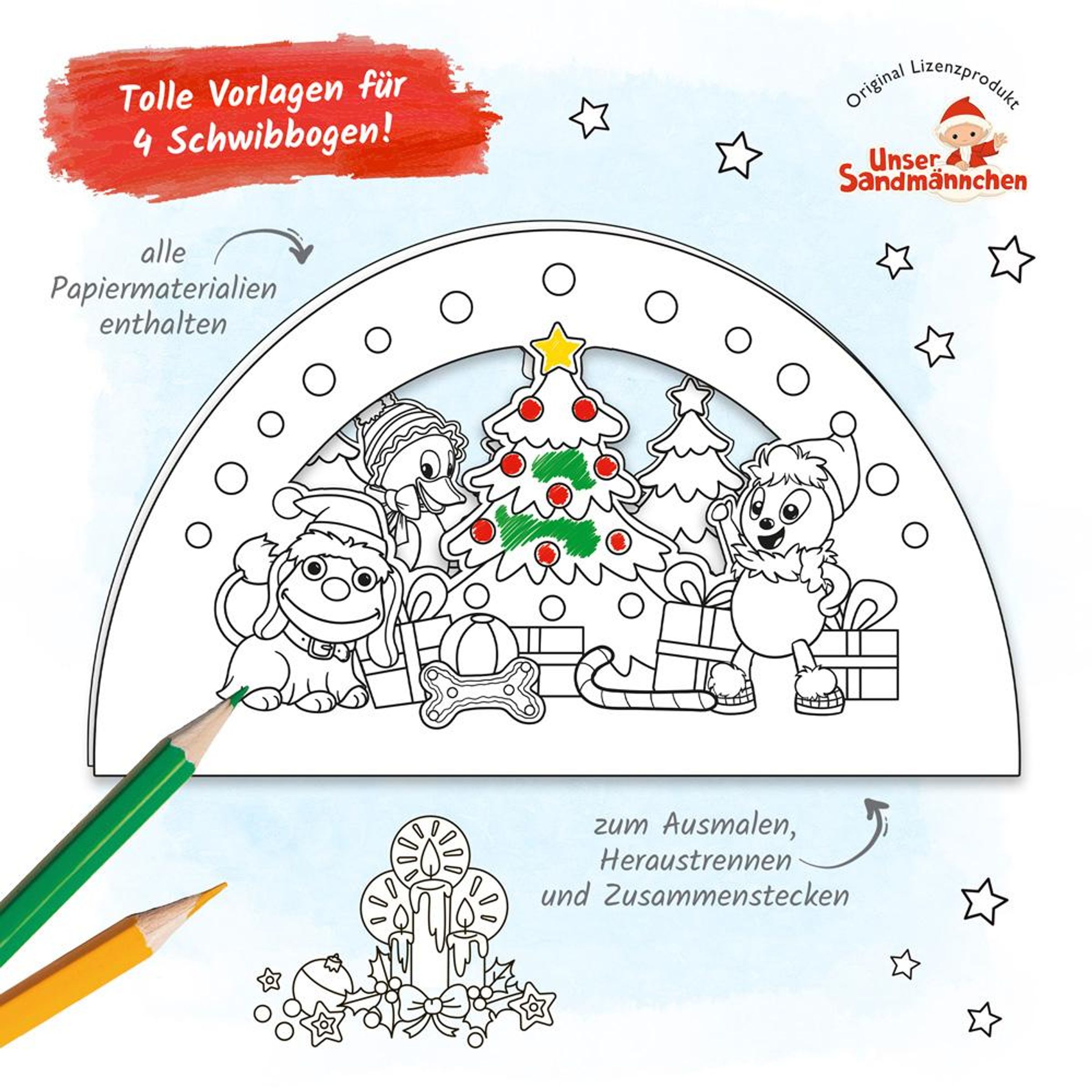 Dieses tolle Schwibbogenbuch mit dem Sandmännchen und seinen Freunden bietet großen Bastelspaß für die Weihnachtszeit: Kinder malen die Weihnachtsmotive bunt aus, zusammengebaut wird gemeinsam mit den Eltern. Die Vorlagen für 4 verschiedene Schwibbogen können ohne zu kleben ineinander gesteckt werden. Die Einzelteile der Bogen sind vorgestanzt und lassen sich leicht aus dem Buch lösen. So einfach entsteht einzigartige Weihnachtsdeko mit dem Sandmännchen, Pitti und Co.!