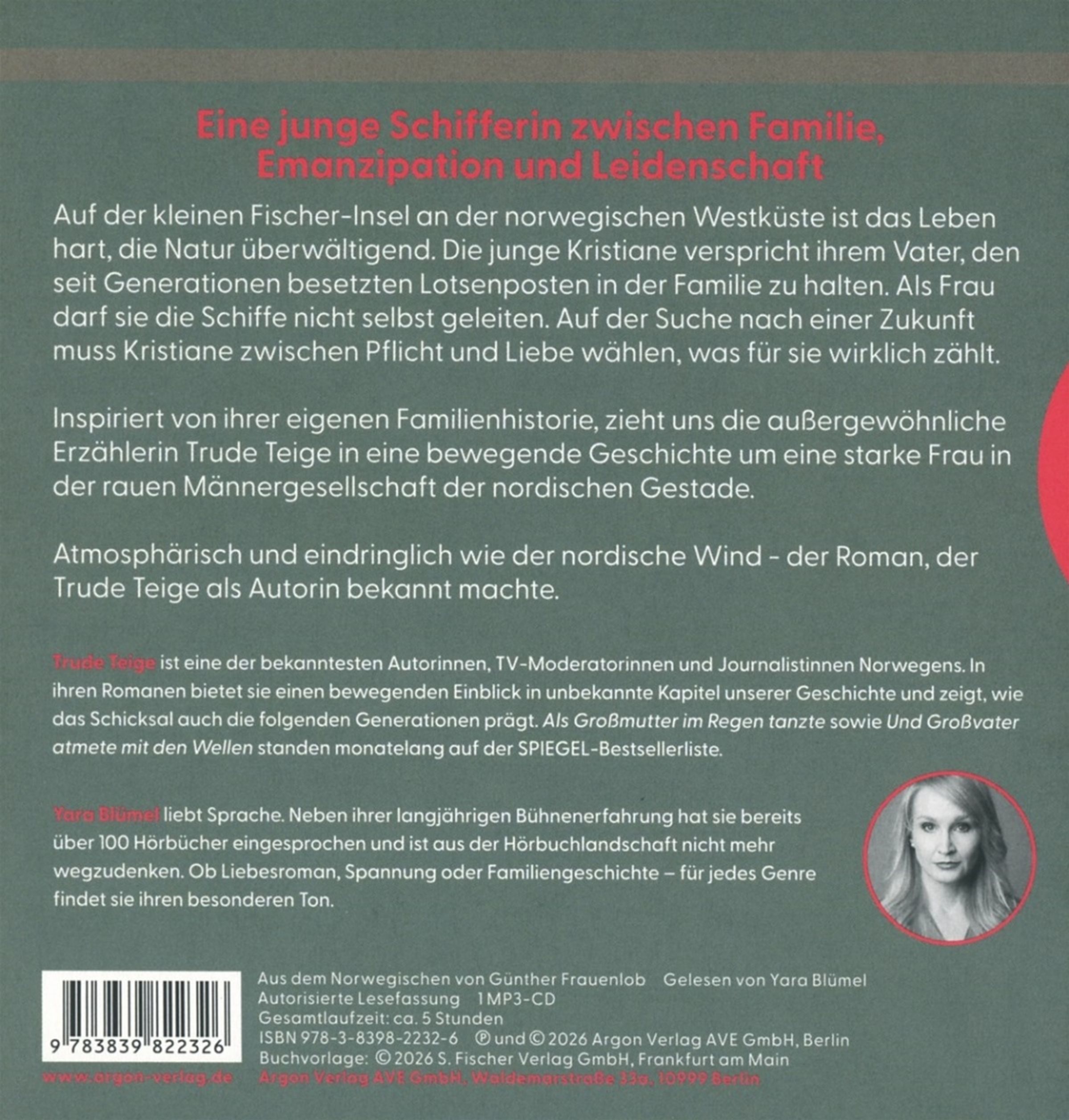 Eine junge Schifferin zwischen Familie, Emanzipation und Leidenschaft: Sorgfältig recherchiert und inspiriert von ihrer eigenen Familienhistorie, zieht uns die außergewöhnliche Erzählerin Trude Teige in eine bewegende Geschichte um eine starke Frau in der rauen Männergesellschaft der nordischen Gestade.