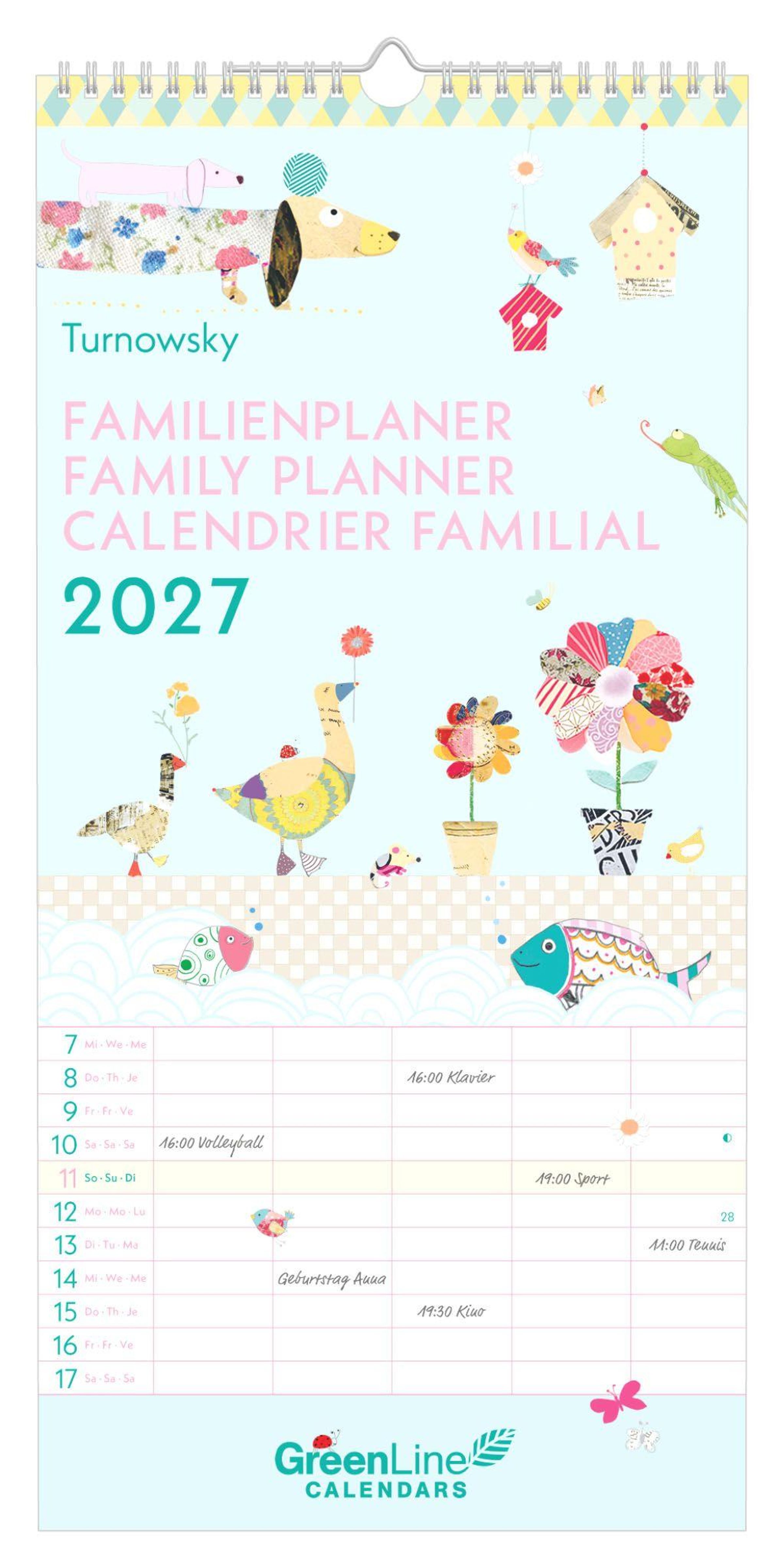 Mit dem GreenLine Turnowsky Familienplaner 2027 behalten Sie spielend leicht alle Termine im Blick -- nachhaltig, stilvoll und inspiriert durch die kreative Welt von Turnowsky.
