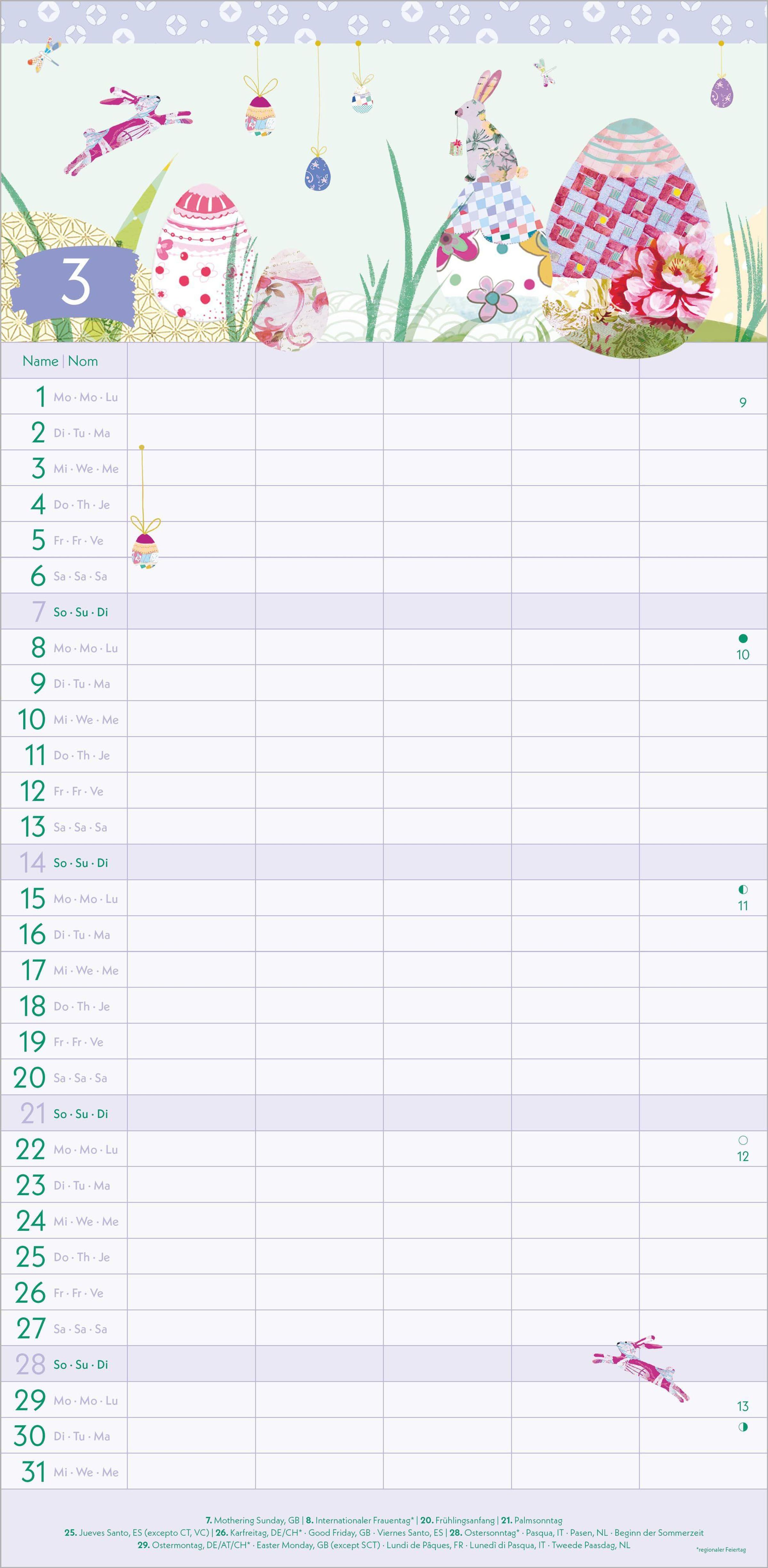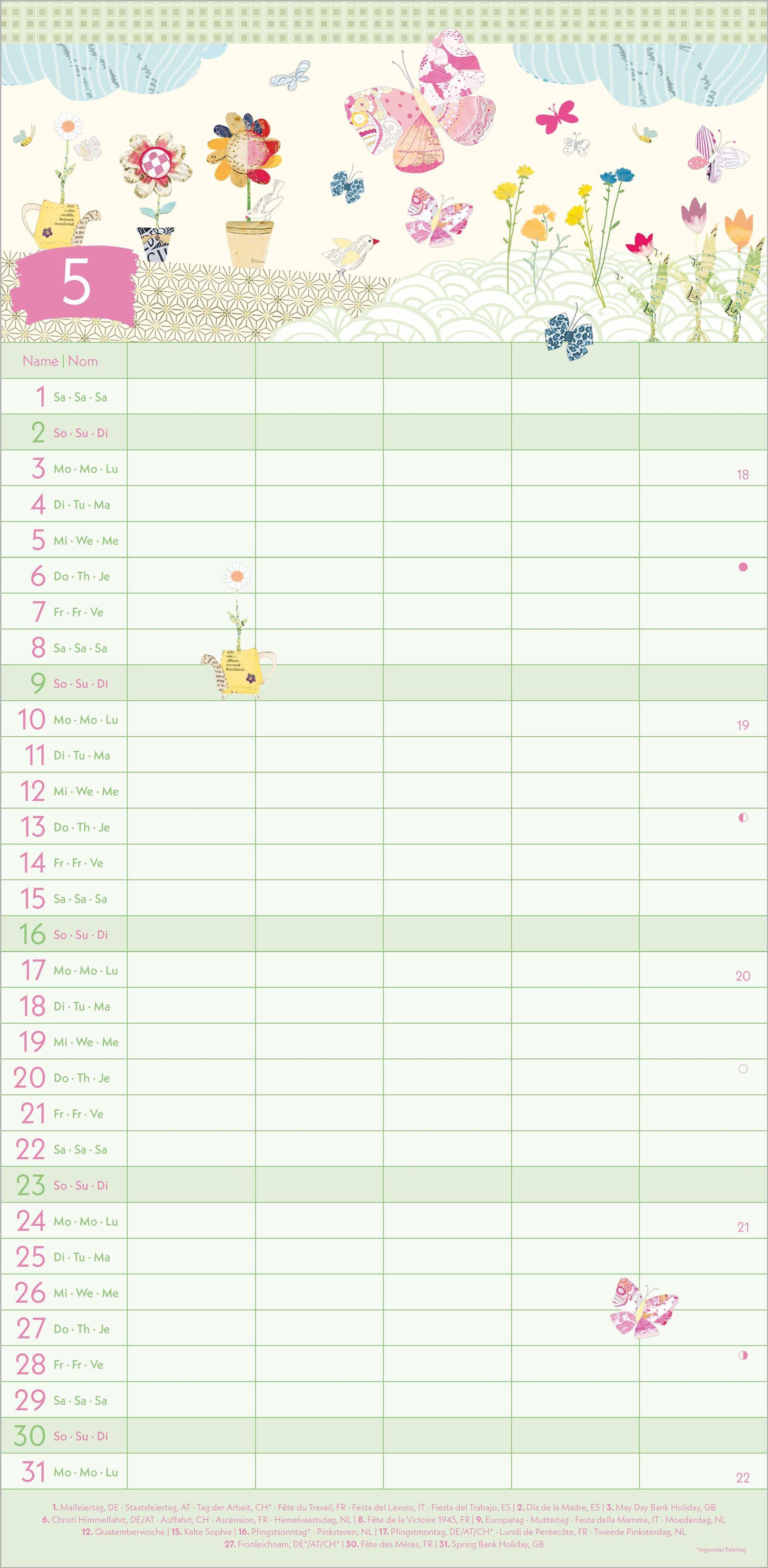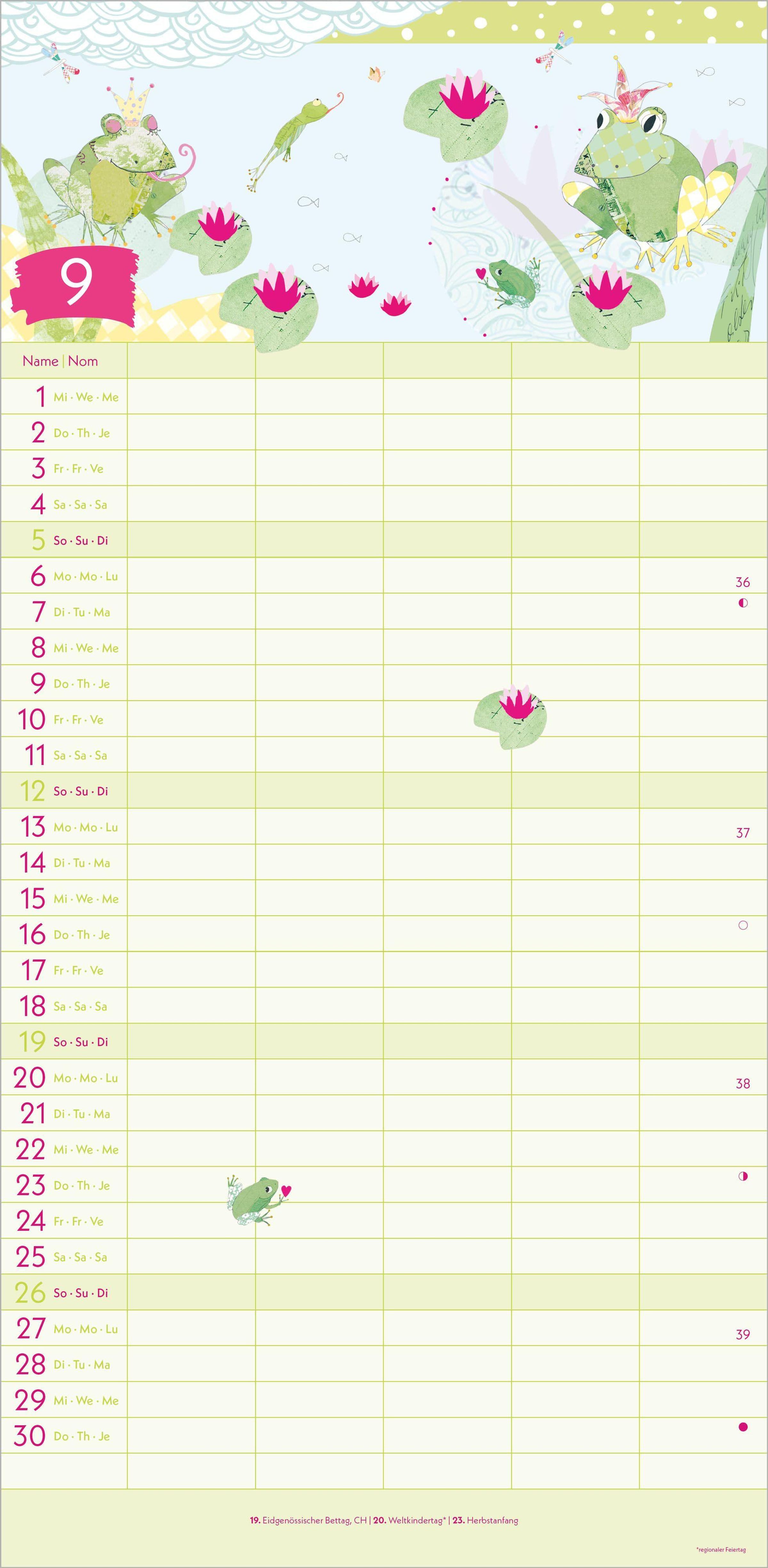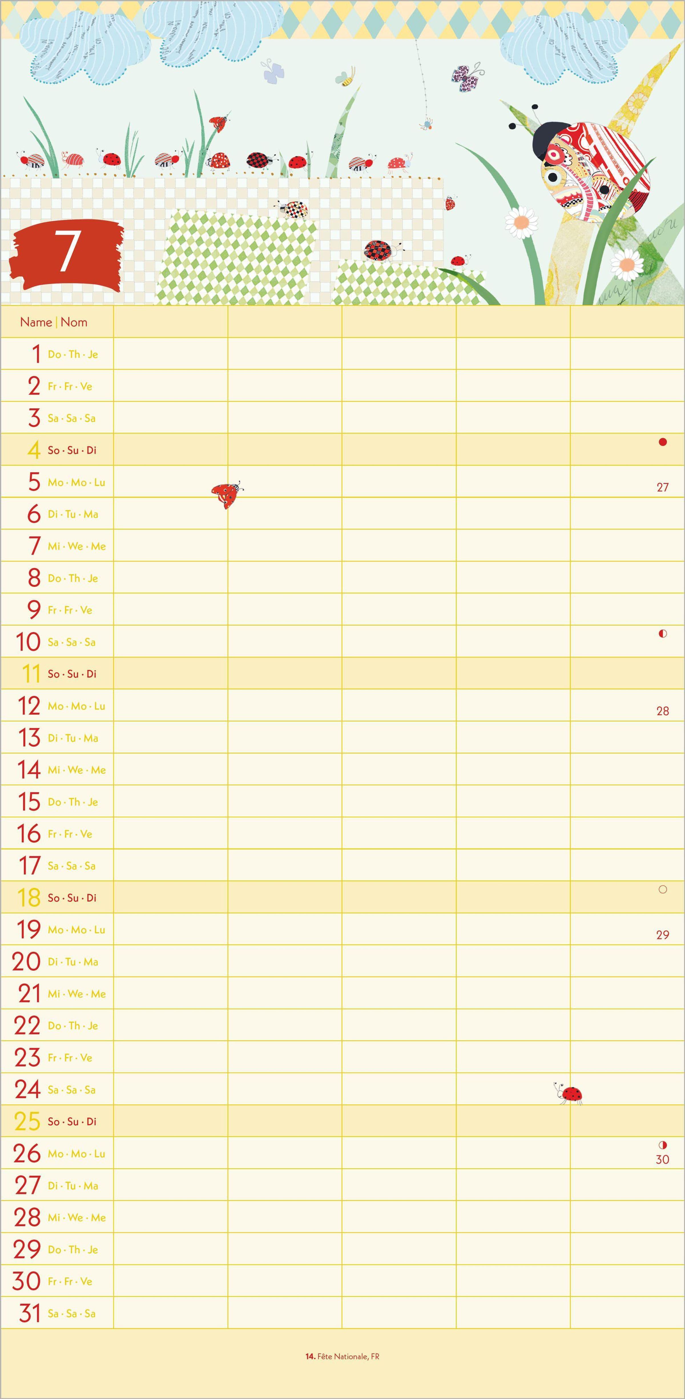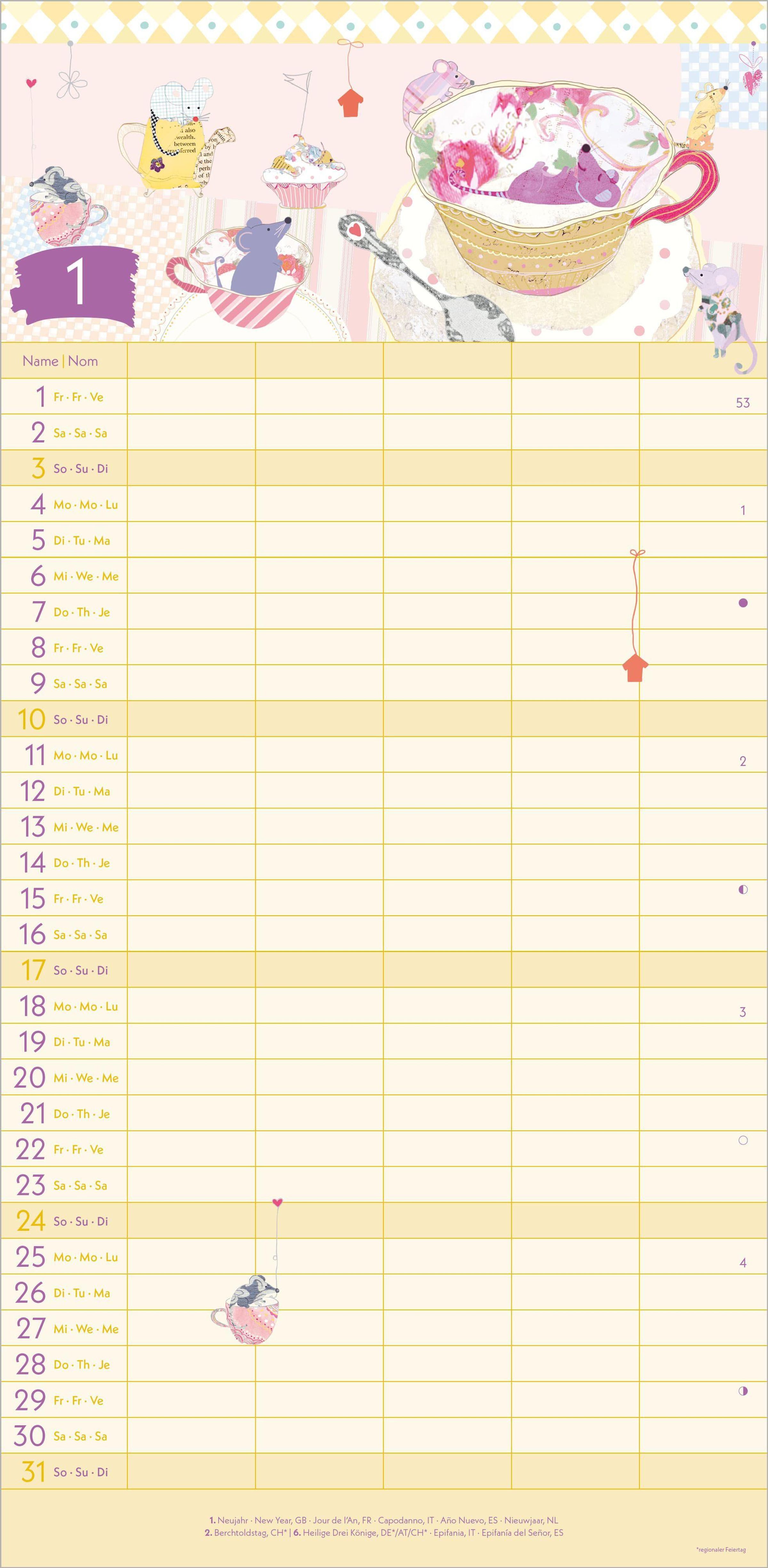5 Spalten für Eintragungen -- perfekt für die ganze Familie