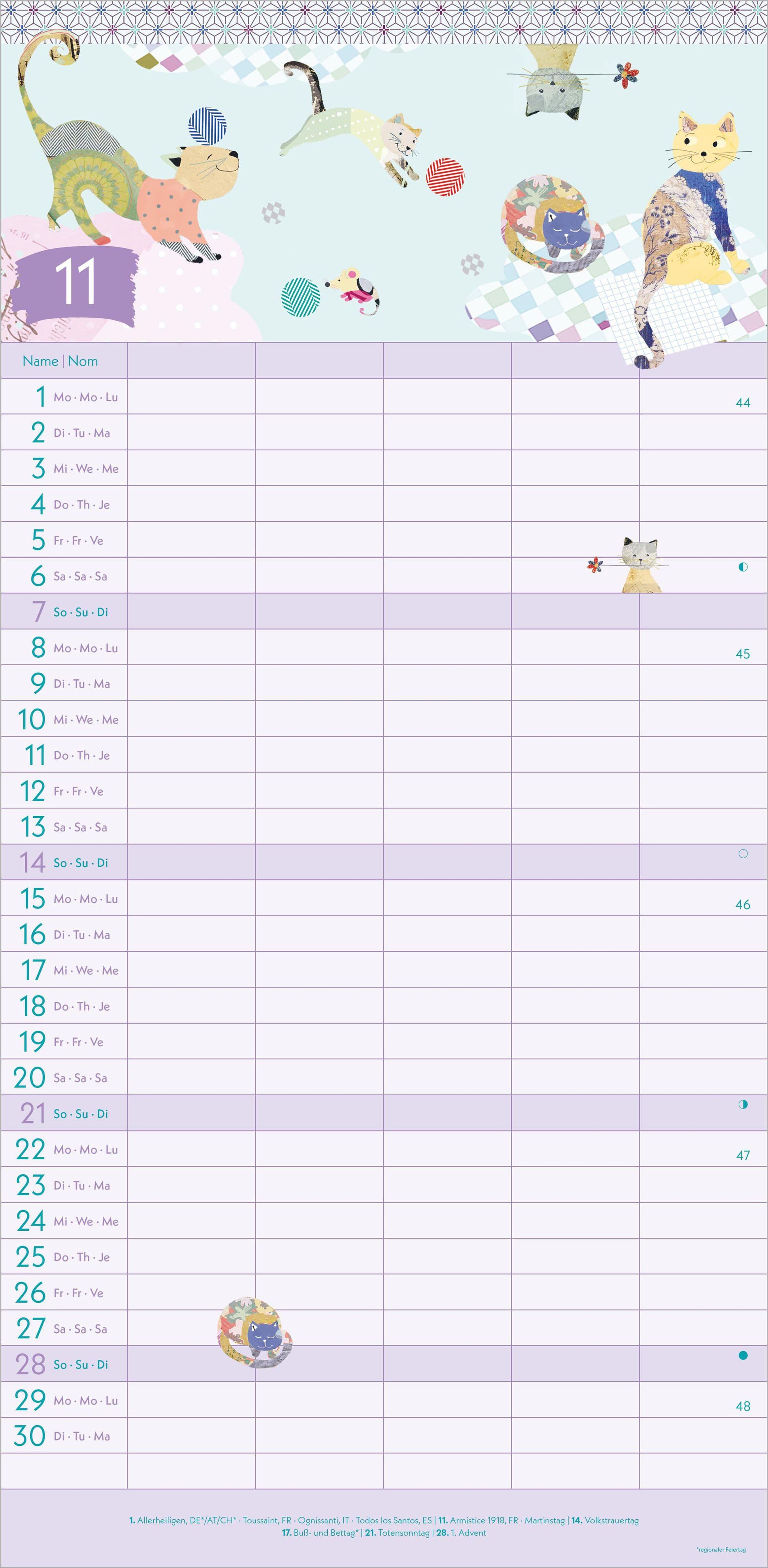 3-sprachiges Kalendarium (DE/EN/FR) -- inklusive Ferientermine