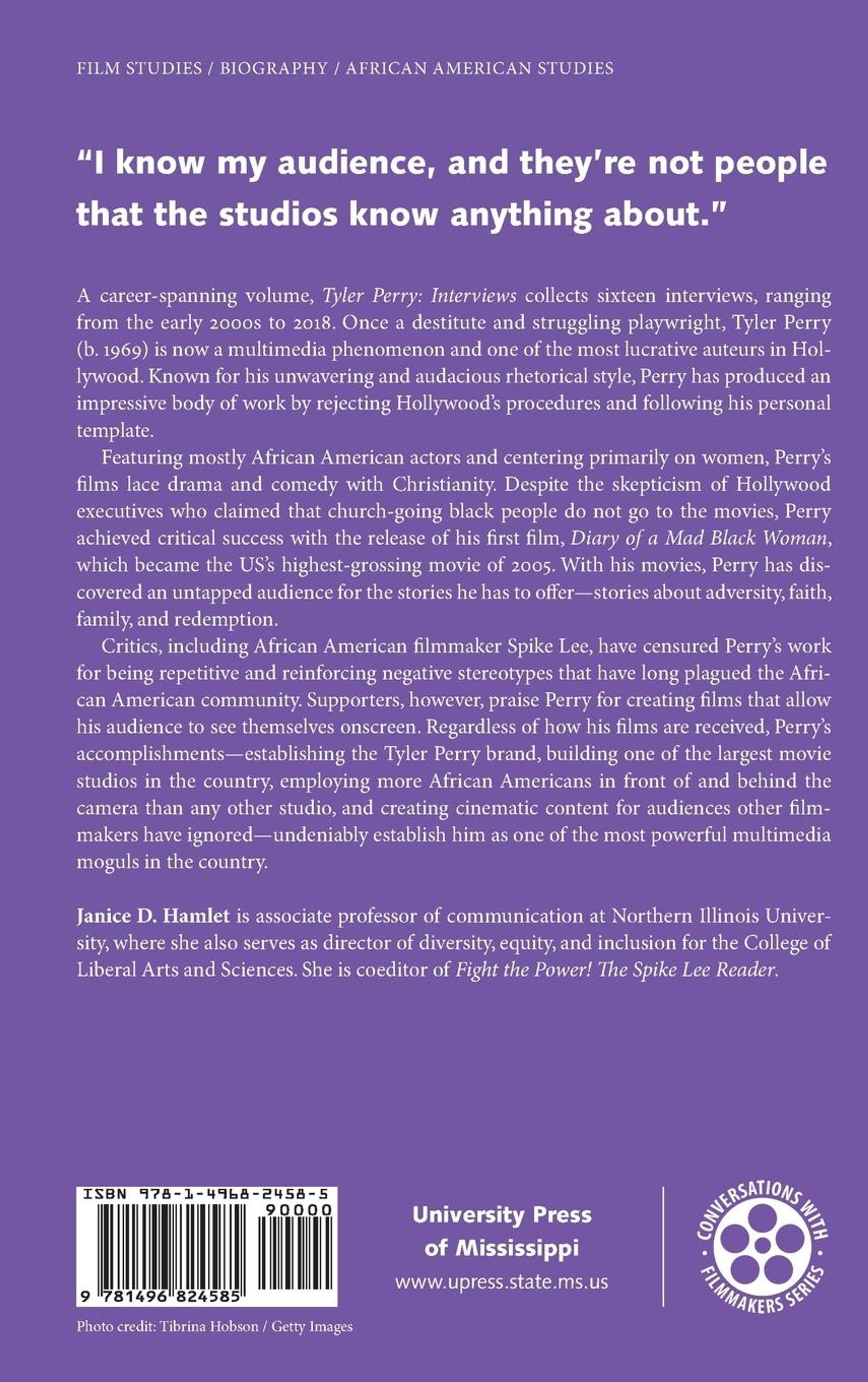 A career-spanning volume, Tyler Perry: Interviews collects sixteen interviews, ranging from the early 2000s to 2018. Once a destitute and struggling playwright, Tyler Perry (b. 1969) is now a multimedia phenomenon and one of the most lucrative auteurs in Hollywood. Known for his unwavering and audacious rhetorical style, Perry has produced an impressive body of work by rejecting Hollywood's procedures and following his personal template. Featuring mostly African American actors and centering primarily on women, Perry's films lace drama and comedy with Christianity. Despite the skepticism of Hollywood executives who claimed that church-going black people do not go to the movies, Perry achieved critical success with the release of his first film, Diary of a Mad Black Woman, which became the US's highest-grossing movie of 2005. With his movies, Perry has discovered an untapped audience for the stories he has to offer--stories about adversity, faith, family, and redemption. Critics, including African American filmmaker Spike Lee, have censured Perry's work for being repetitive and reinforcing negative stereotypes that have long plagued the African American community. Supporters, however, praise Perry for creating films that allow his audience to see themselves onscreen. Regardless of how his films are received, Perry's accomplishments--establishing the Tyler Perry brand, building one of the largest movie studios in the country, employing more African Americans in front of and behind the camera than any other studio, and creating cinematic content for audiences other filmmakers have ignored--undeniably establish him as one of the most powerful multimedia moguls in the country.