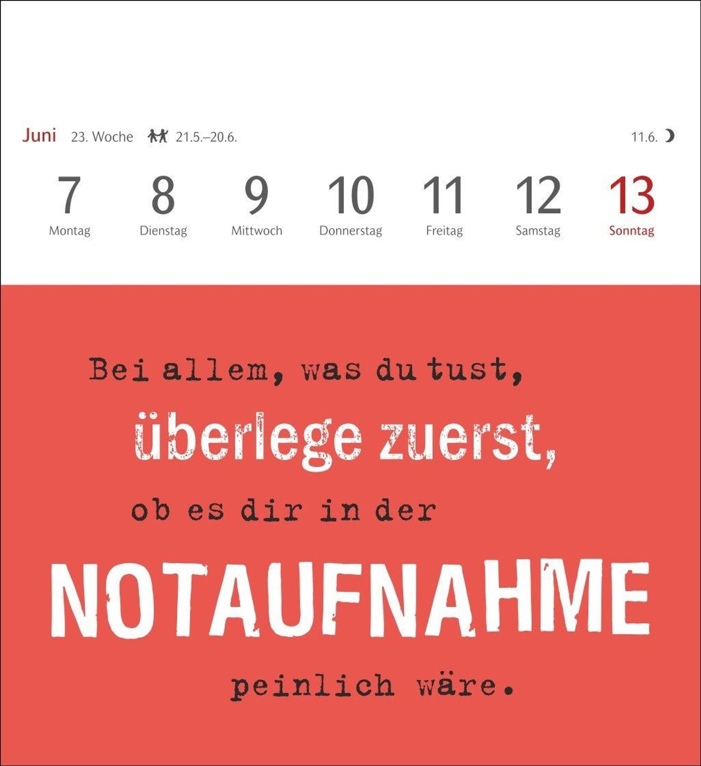 - Wochenkalender mit originellen Sprüchen typografisch kunstvoll gestaltet. Postkarten-Tischkalender mit 53 perforierten Karten zum Sammeln und Verschicken