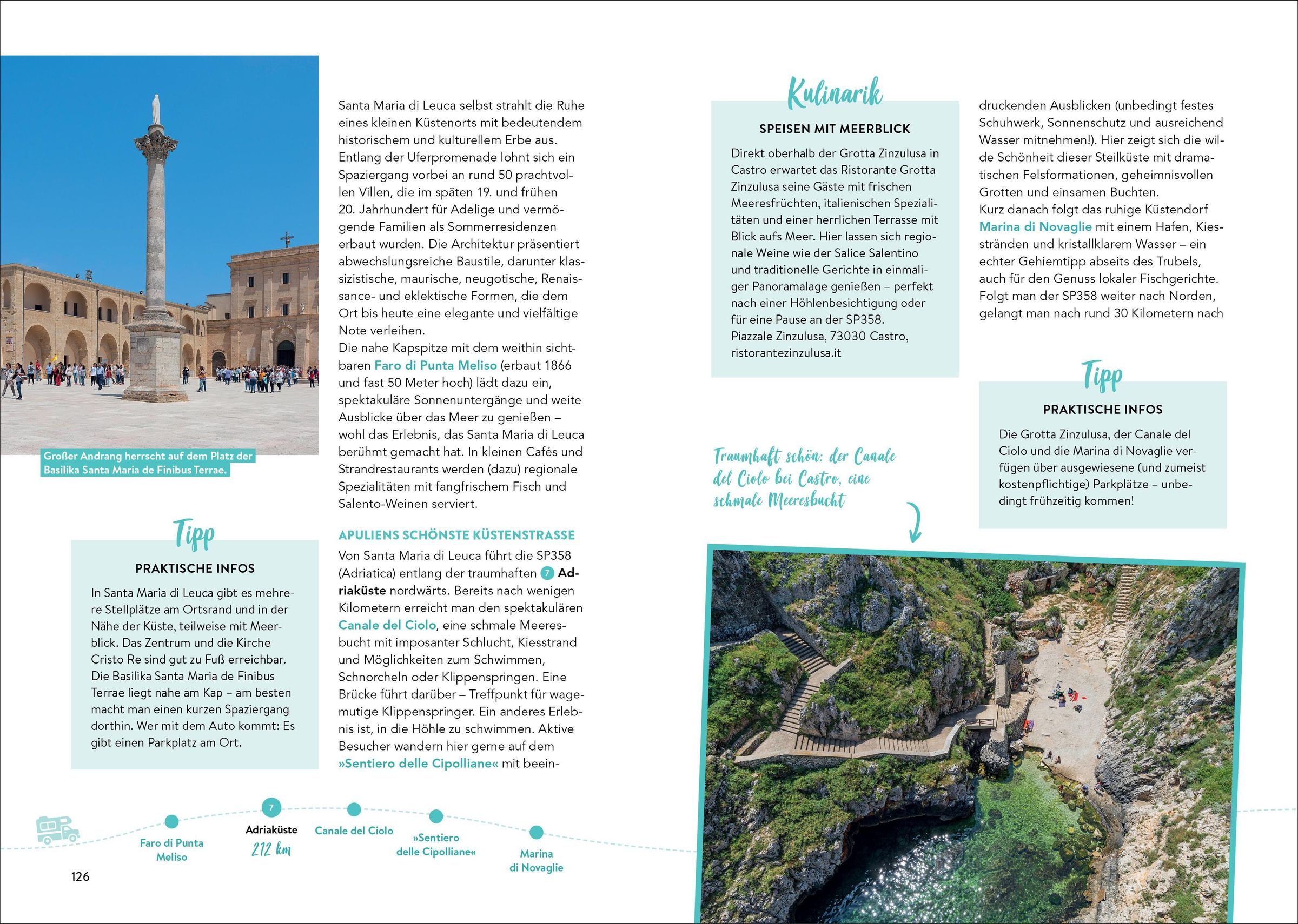 Die prächtige Schönheit des südlichen Italiens erleben! Malerische Küsten, zerklüftete Gebirge und grüne Täler, Weinberge und Olivenhaine - diese Touren führen durch alles, was die Region zu bieten hat: atemberaubende Landschaften, versteckte Dörfer und kulturelle Schätze. Der Wohnmobilführer zeigt die Vielfalt der Region von Neapel bis Palermo und empfiehlt die besten Campingplätze entlang der schönsten Strecken.