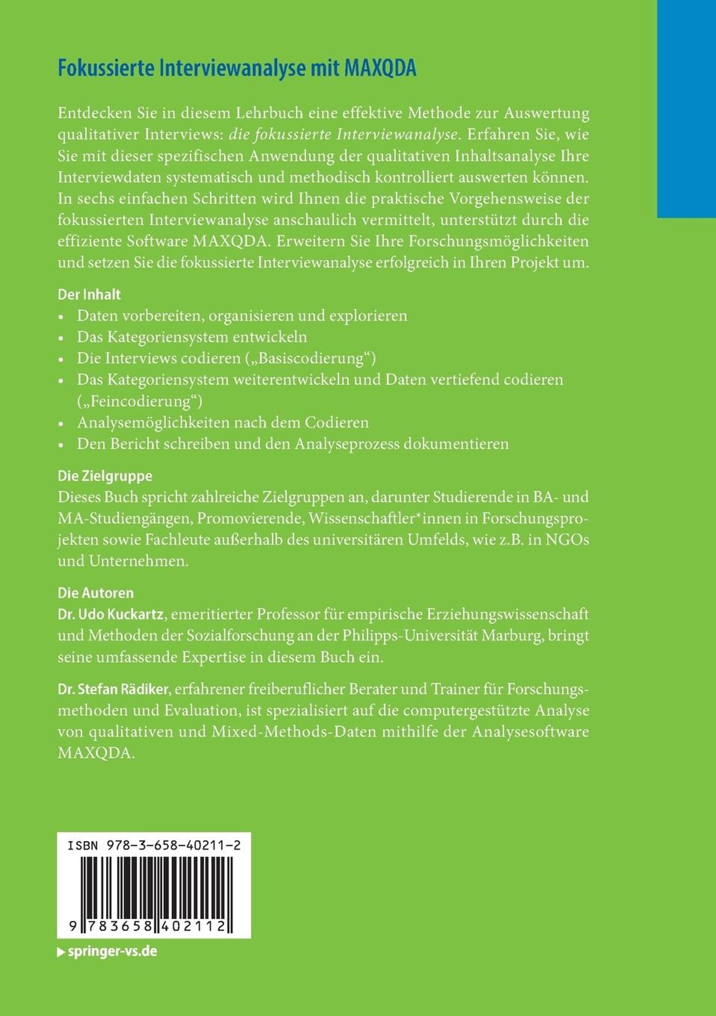 Entdecken Sie in diesem Lehrbuch eine effektive Methode zur Auswertung qualitativer Interviews: die fokussierte Interviewanalyse. Erfahren Sie, wie Sie mit dieser spezifischen Anwendung der qualitativen Inhaltsanalyse Ihre Interviewdaten systematisch und methodisch kontrolliert auswerten können. In sechs einfachen Schritten wird Ihnen die praktische Vorgehensweise der fokussierten Interviewanalyse anschaulich vermittelt, unterstützt durch die effiziente Software MAXQDA. Erweitern Sie Ihre Forschungsmöglichkeiten und setzen Sie die fokussierte Interviewanalyse erfolgreich in Ihren Projekt um.