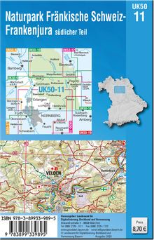Kartenblatt UK50-11 Naturpark Fränkische Schweiz - Frankenjura südlicher Teil REGIONEN: Oberpfalz, Oberfranken, Mittelfranken, Fränkische Schweiz, Aischgrund, Krenland, Veldensteiner Forst, Fränkische Alb, Sebalder Reichswald, Knoblauchsland ORTE: Erlangen, Forchheim, Lauf a. d.Pegnitz, Herzogenaurach, Pegnitz, Auerbach i. d.OPf.