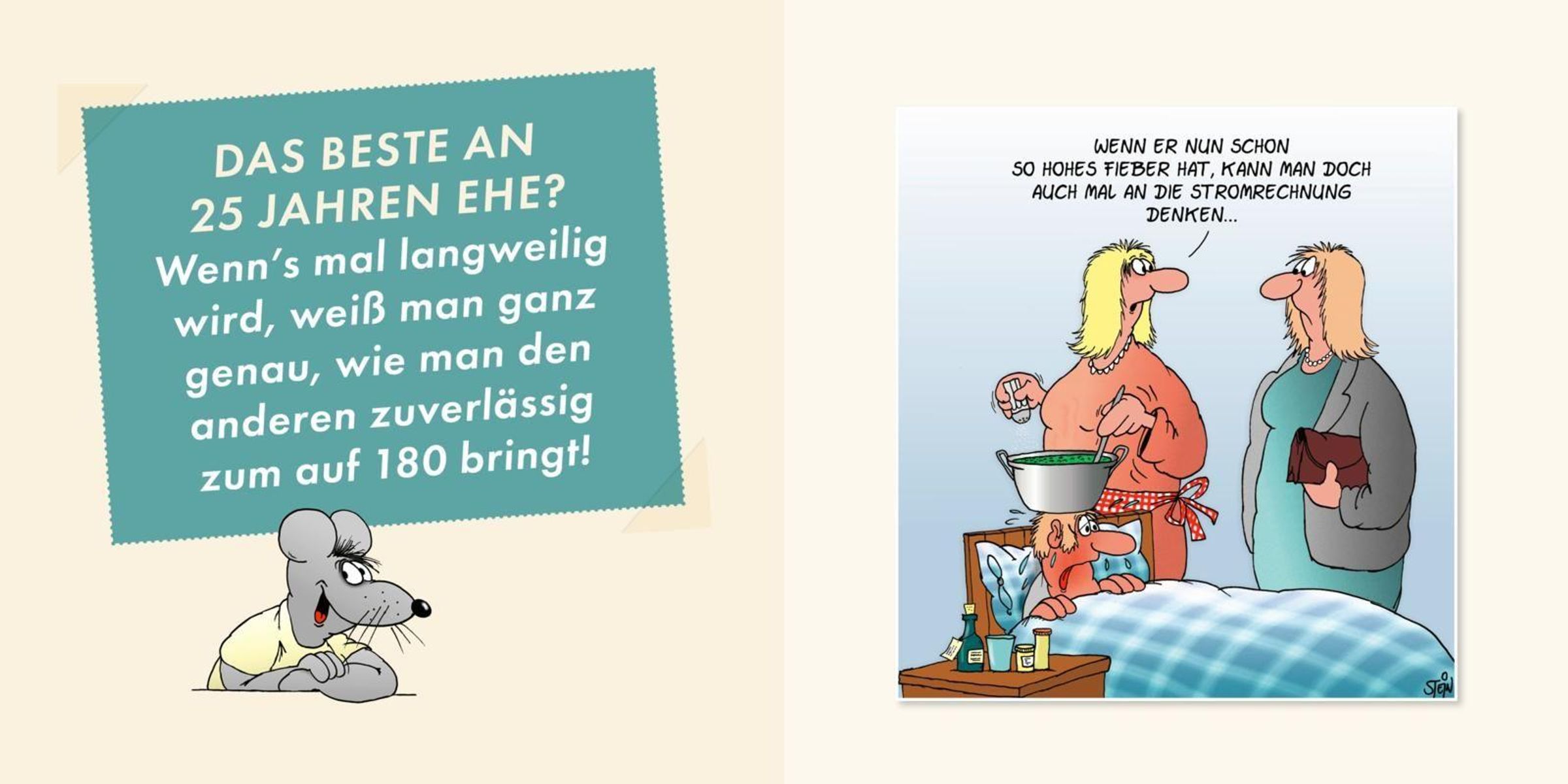 - Humorvolle Eheporträts: Uli Steins Cartoons bringen die Eigenheiten und Turbulenzen einer 25-jährigen Beziehung charmant und pointiert auf den Punkt.