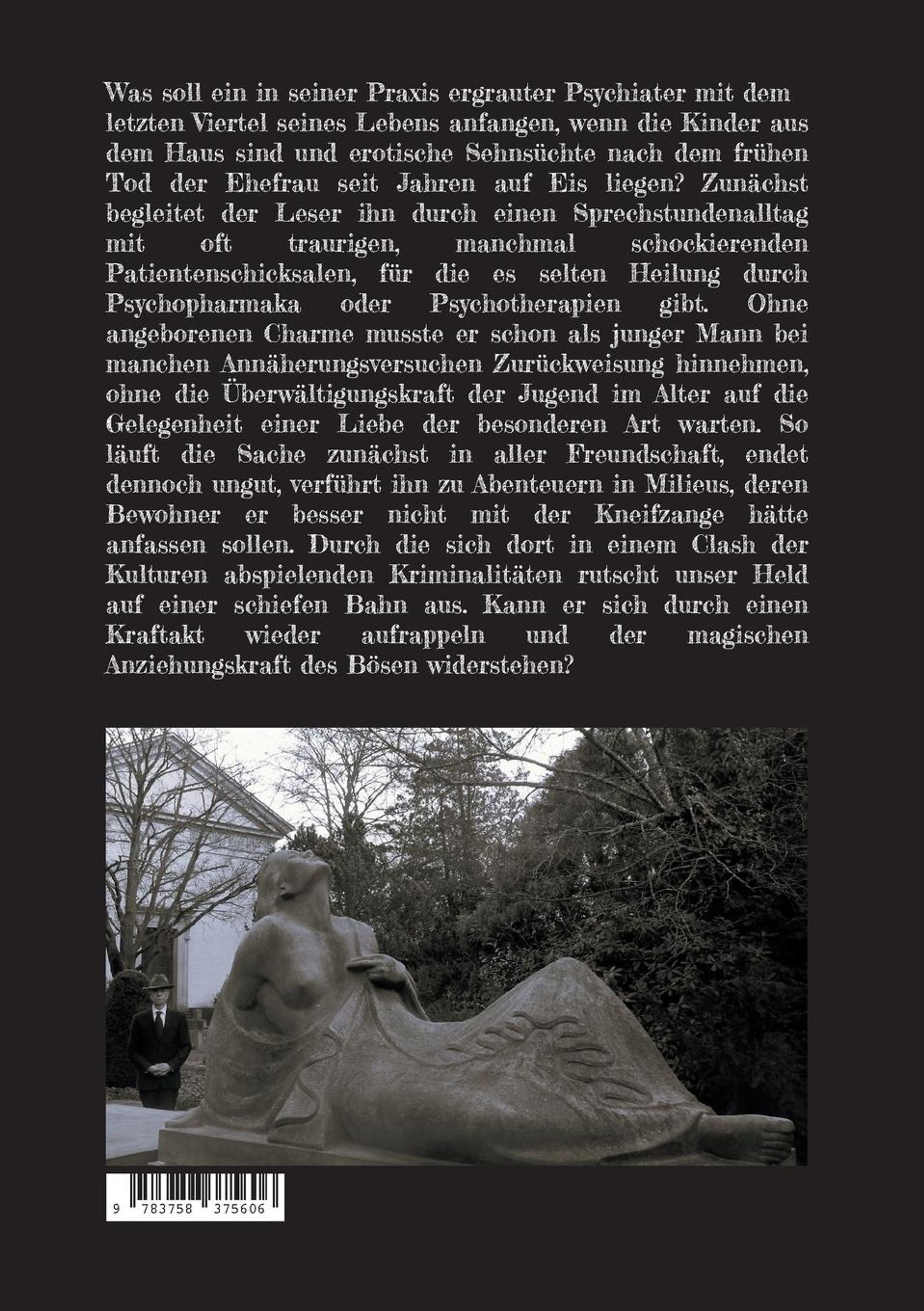 Was soll ein in seiner Praxis ergrauter Psychiater mit dem letzten Viertel seines Lebens anfangen, wenn die Kinder aus dem Haus sind und erotische Sehnsüchte nach dem frühen Tod der Ehefrau seit Jahren auf Eis liegen? Zunächst begleitet der Leser ihn durch einen Sprechstundenalltag mit oft traurigen, manchmal schockierenden Patientenschicksalen, für die es selten Heilung durch Psychopharmaka oder Psychotherapien gibt. Ohne angeborenen Charme musste er schon als junger Mann bei manchen Annäherungsversuchen Zurückweisung hinnehmen, ohne die Überwältigungskraft der Jugend im Alter auf die Gelegenheit einer Liebe der besonderen Art warten. So läuft die Sache zunächst in aller Freundschaft, endet dennoch ungut, verführt ihn zu Abenteuern in Milieus, deren Bewohner er besser nicht mit der Kneifzange hätte anfassen sollen. Durch die sich dort in einem Clash der Kulturen abspielenden Kriminalitäten rutscht unser Held auf einer schiefen Bahn aus. Kann er sich durch einen Kraftakt wieder aufrappeln und der magischen Anziehungskraft des Bösen widerstehen?
