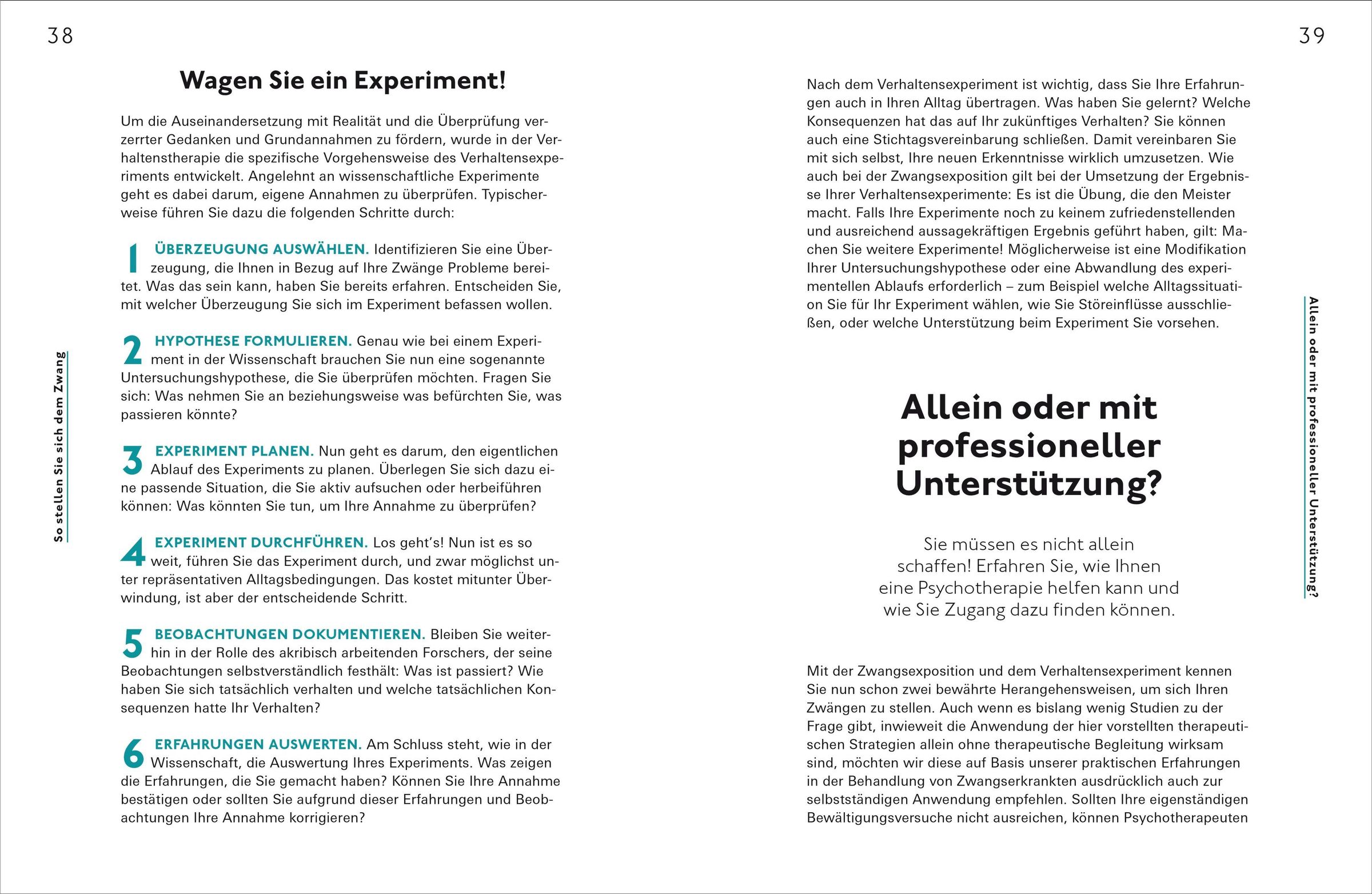 Die Lösung heißt: Konfrontation statt Vermeidung. Die Autoren erklären verständlich, wie sich zwangsauslösende Situationen erkennen lassen, Distanz zu ihnen geschaffen und die innere Logik der Zwänge überwunden wird - sodass der Kreislauf aus aufdringlichen Gedanken, der darauffolgenden Angst und den daraufhin ausgeführten Zwangshandlungen oder Vermeidungsstrategien durchbrochen werden kann. Auf diese Weise ebnet das Buch den Weg zurück zu mehr Selbstbestimmung. Darüber hinaus erfahren Betroffene, wann eine Psychotherapie oder Medikamente sinnvoll sind und wie ihr Umfeld sie unterstützen kann.
