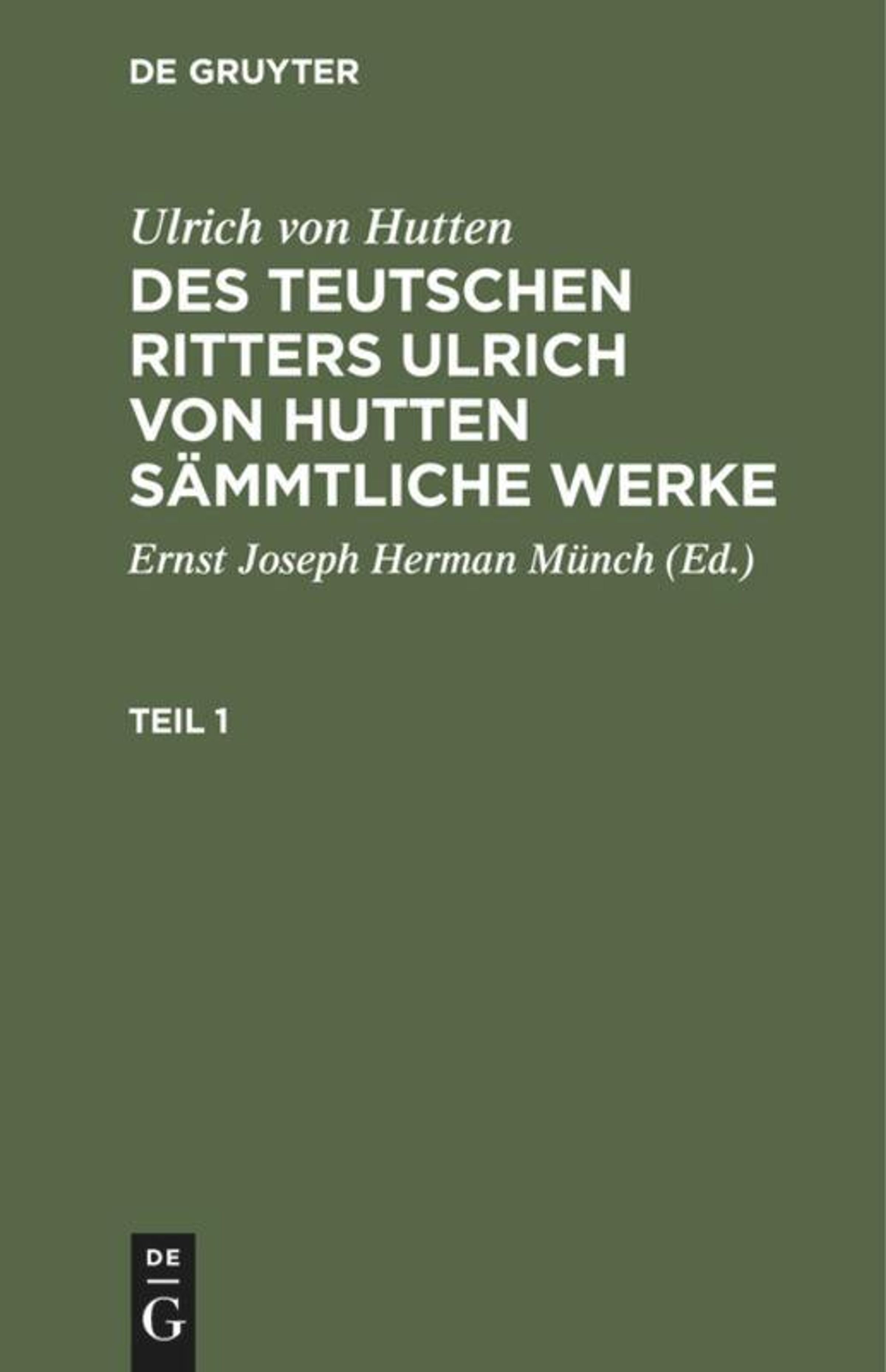 Ulrich Von Hutten: Ulrich von Hutten: Des teutschen Ritters Ulrich von Hutten sämmtliche Werke. Teil 1, Gebunden
