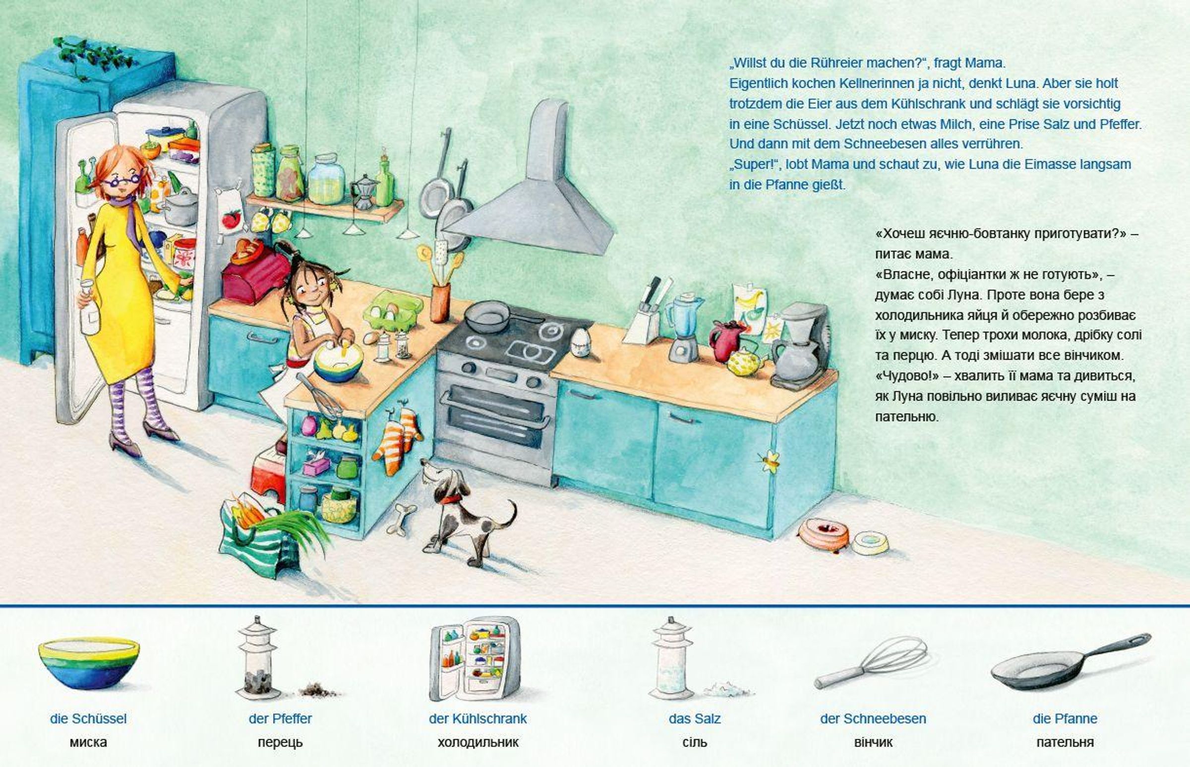 Luna liebt es, beim Kochen zu helfen. In der Küche kennt sie sich schon gut aus! Farbenfrohe Illustrationen laden zum Betrachten ein und eine Wort-Bild-Leiste auf jeder Seite greift wichtige Gegenstände erneut auf und fördert gezielt das Suchen, Finden und Benennen. Das Buch ist in weiteren Sprachfassungen - immer in Kombination mit Deutsch - erhältlich.