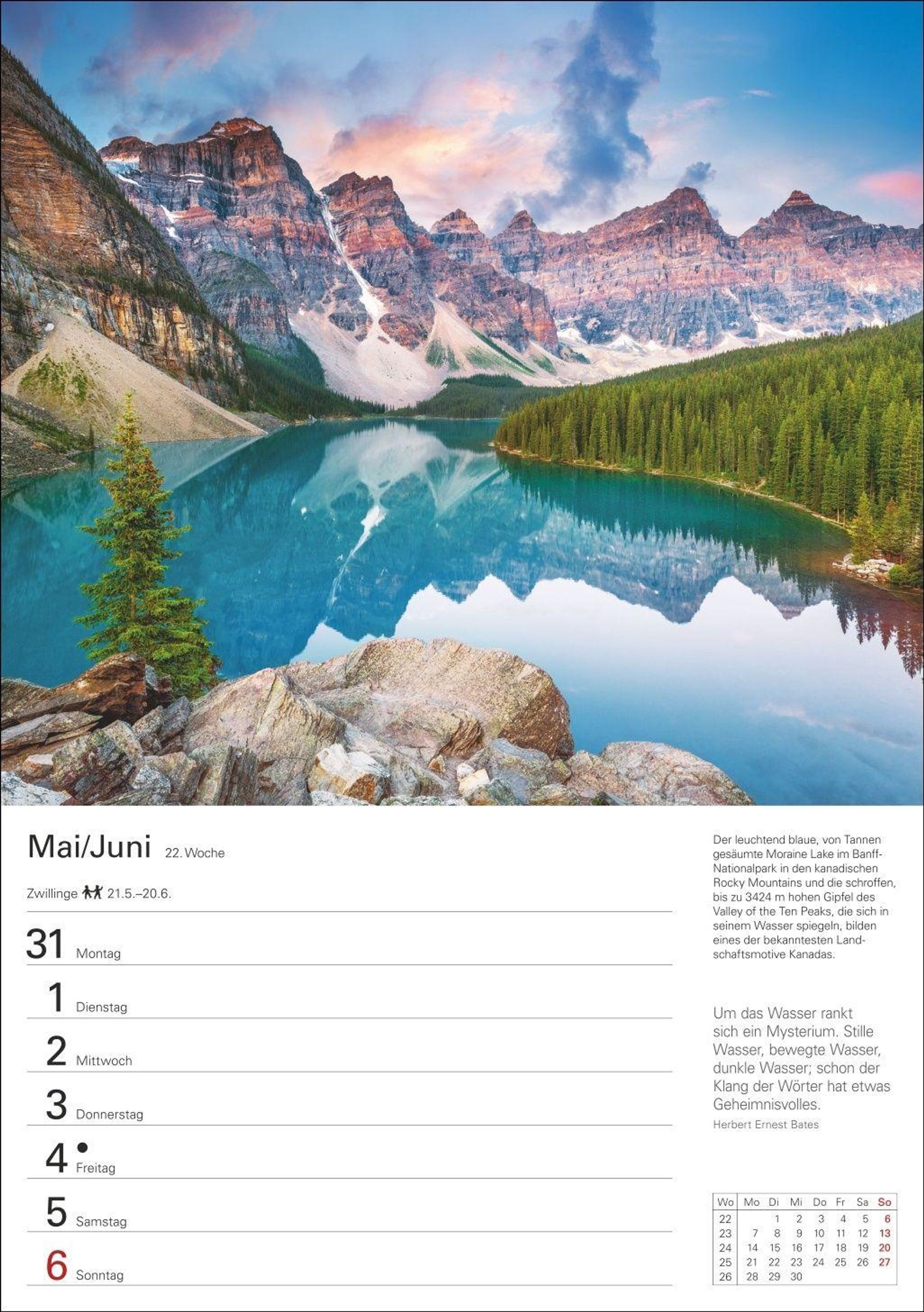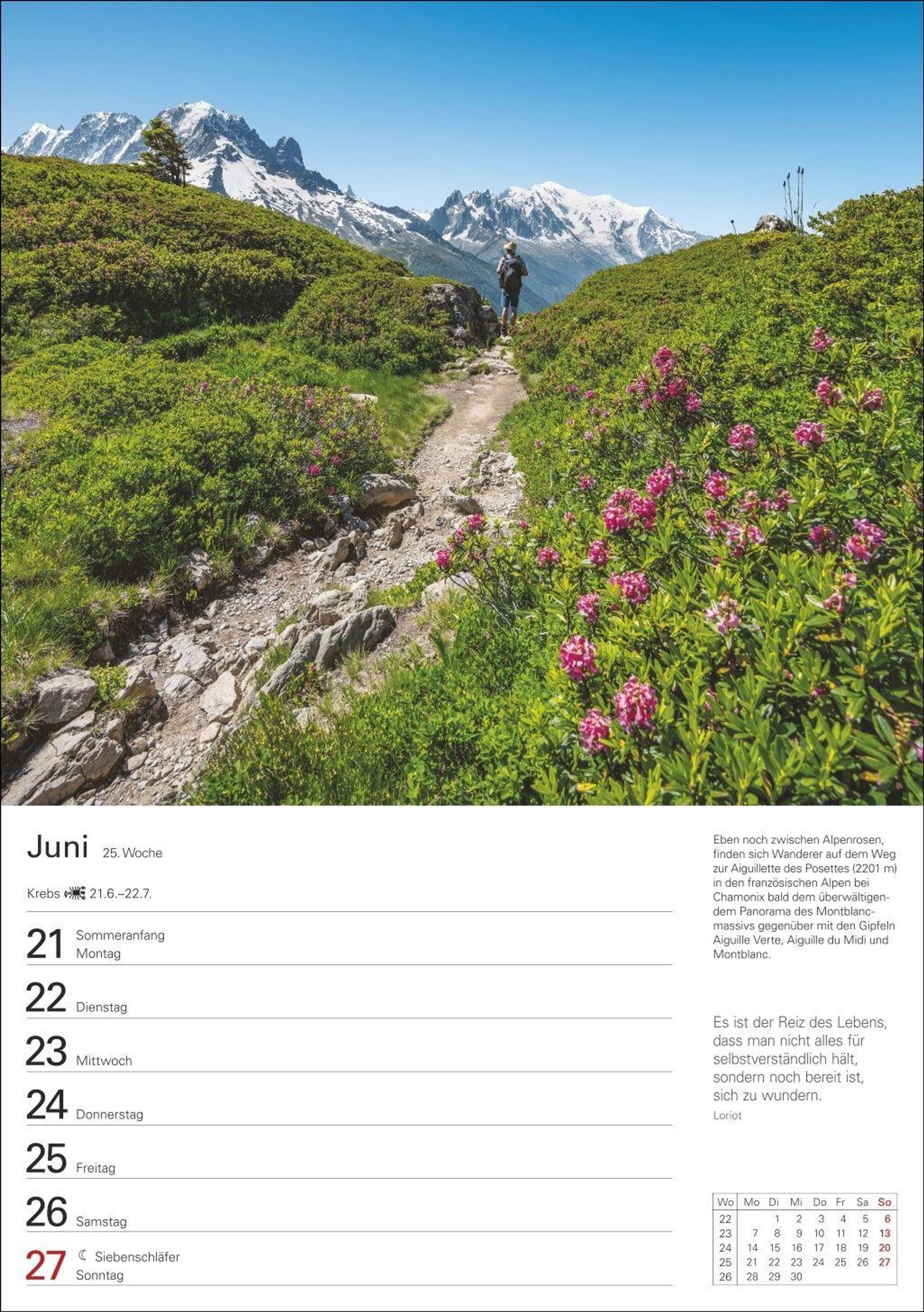 Wandkalender mit 53 magisch-schönen Aufnahmen von glasklaren Bergseen bis hin zu schneebedeckten Berggipfeln von den Alpen bis zu den Anden: Ein Muss für alle Bergsteiger und Wanderfreunde