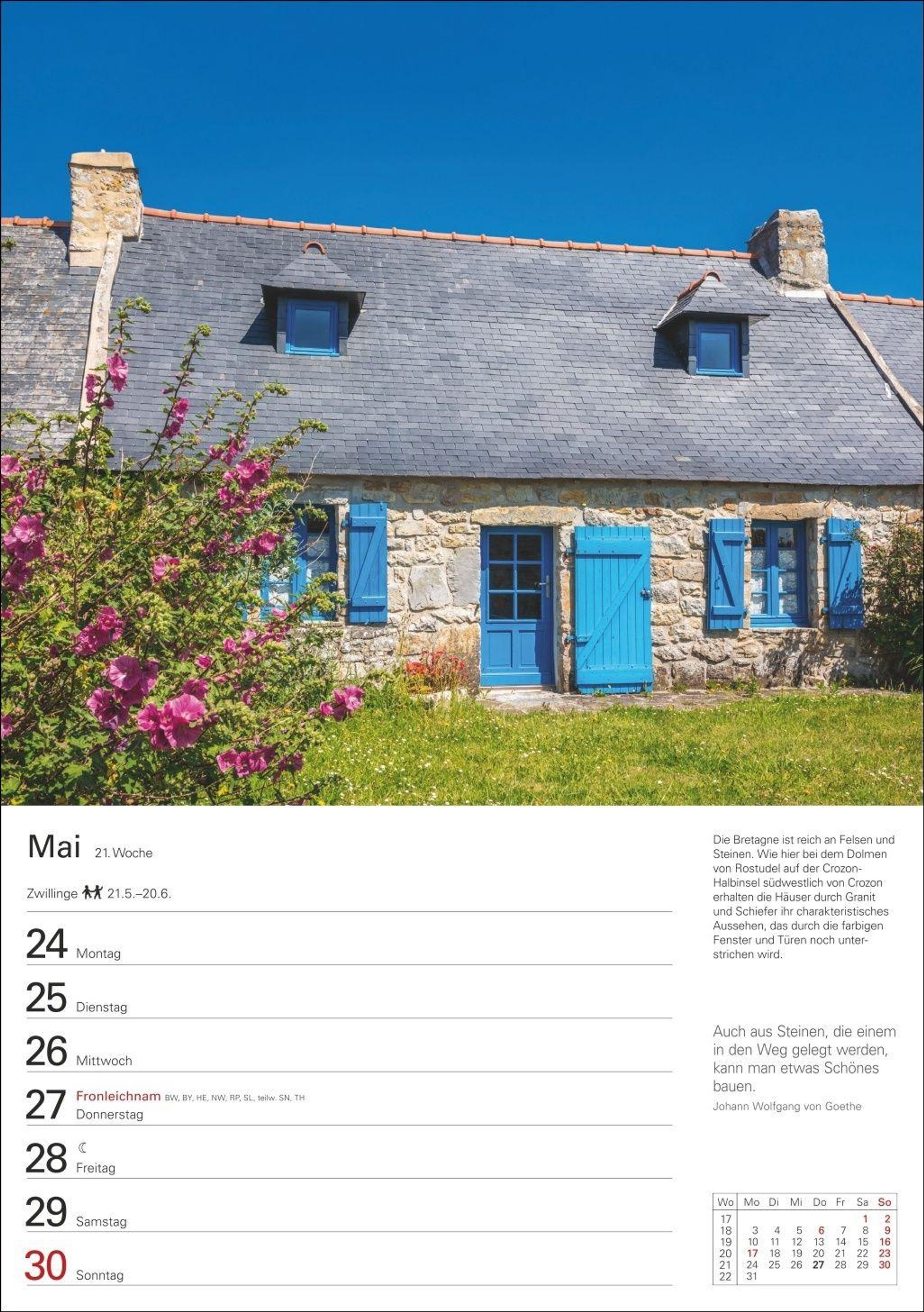 - Beeindruckende Landschaftsfotografie aus Frankreichs wild-romantischem Norden in einem Wochenplaner zum Aufhängen