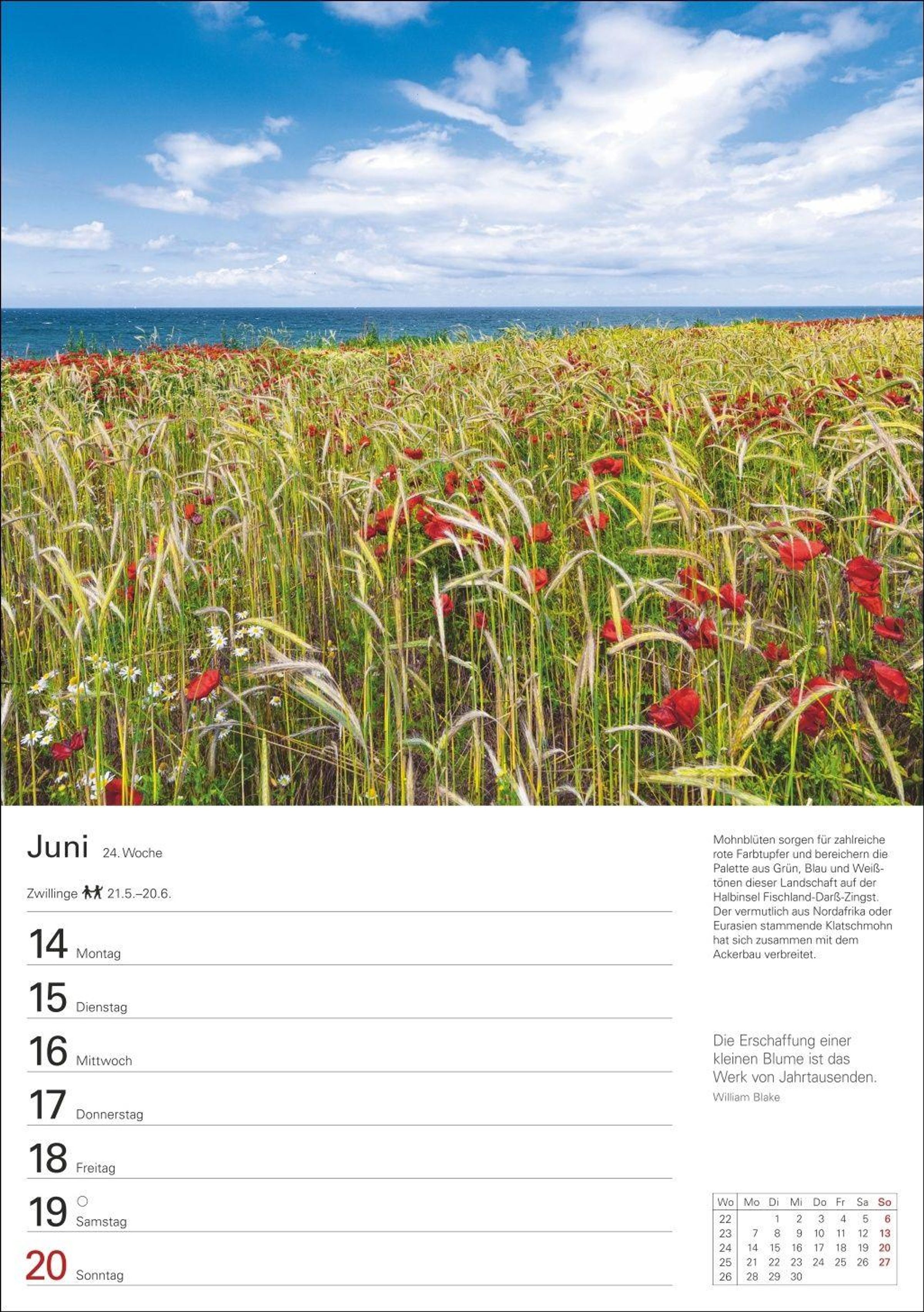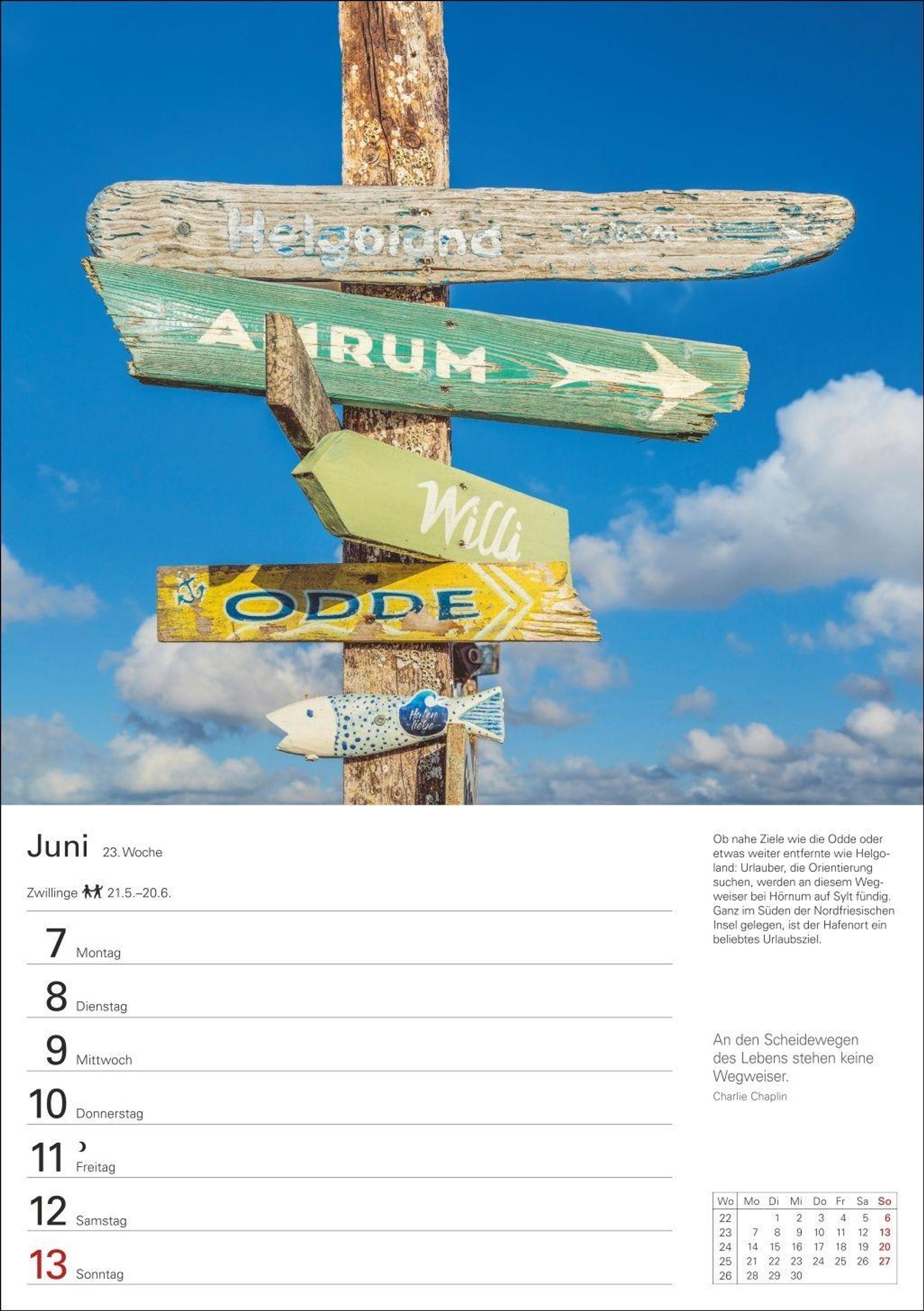 Stilvolle Fotografie mit Blick aufs Meer: Landschafts-Wandplaner mit Bildern der deutschen Küsten und Wochenchronik auf den Rückseiten