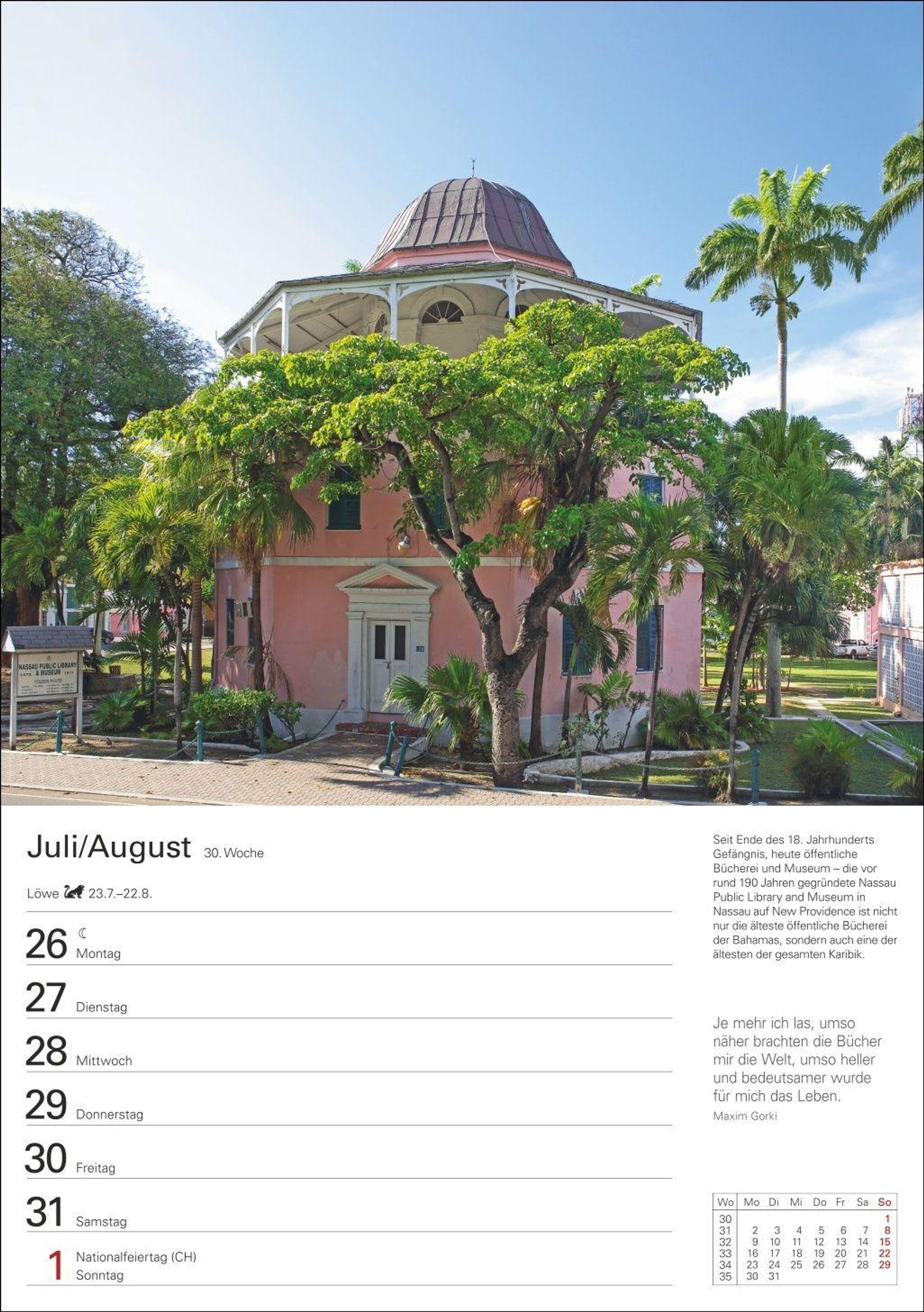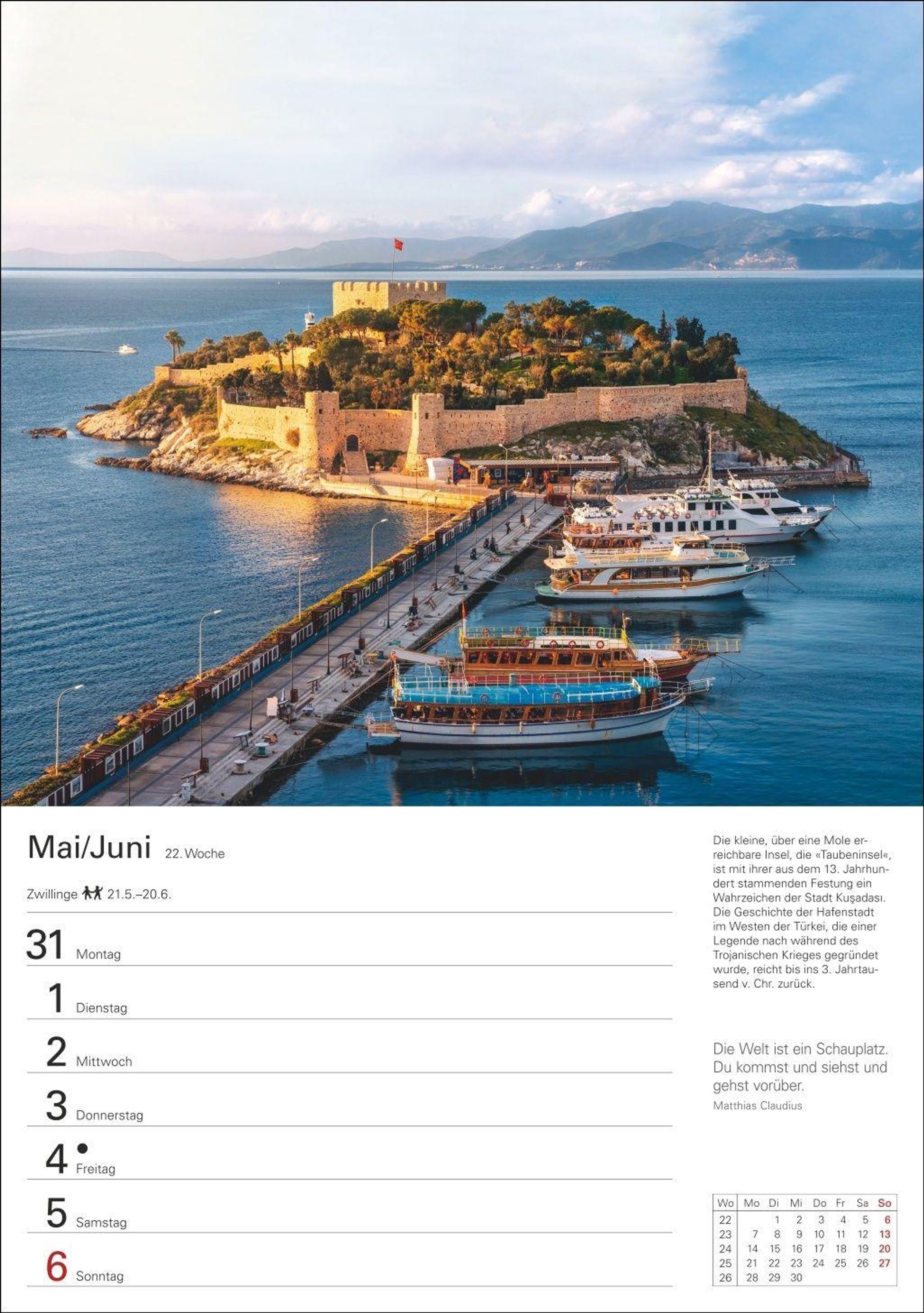 Praktisch und informativ: Wandkalender mit Spiralbindung, viel Platz für Eintragungen sowie Bilderläuterungen und inspirierenden Zitaten und lesenswerter Chronik auf den Rückseiten