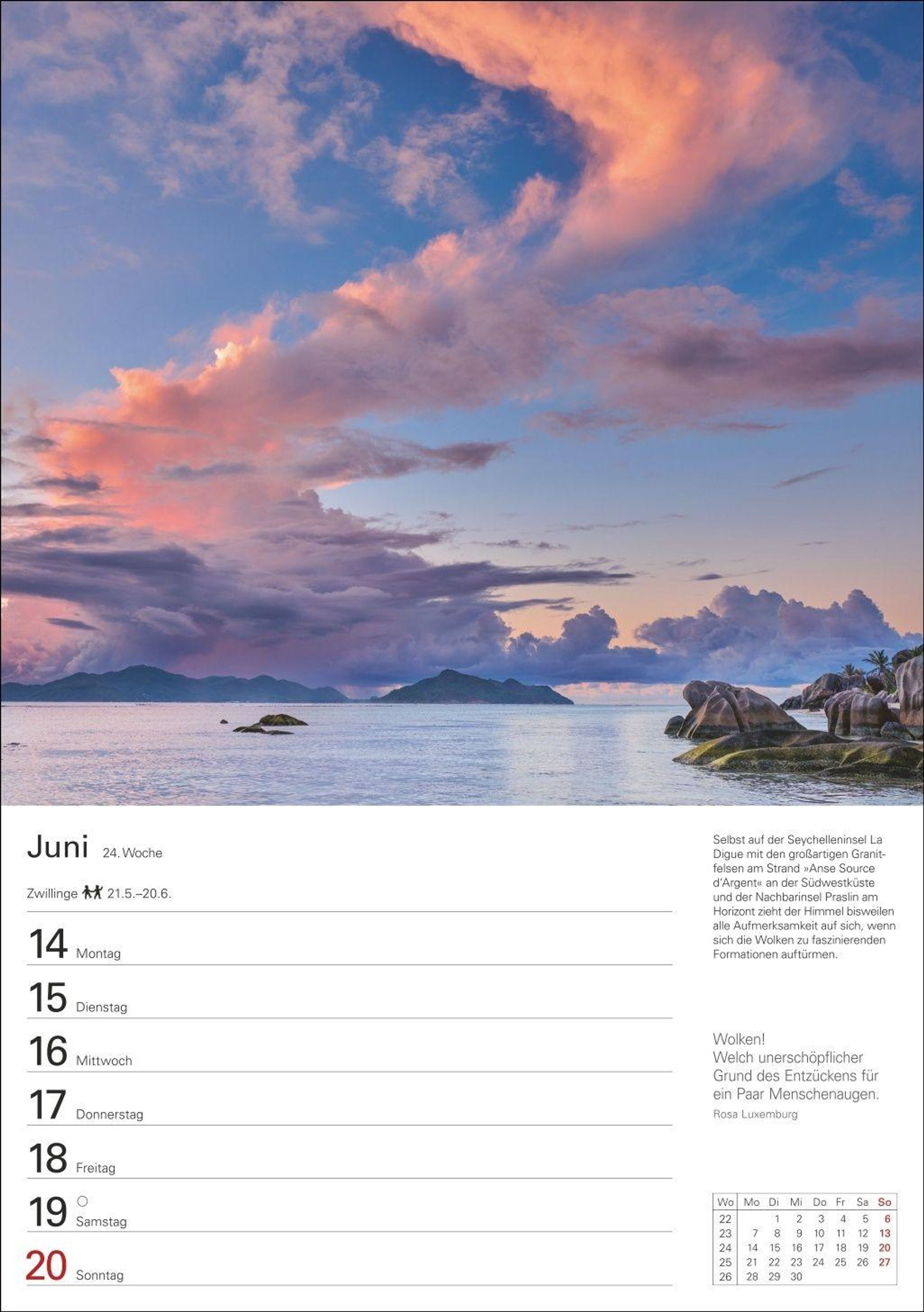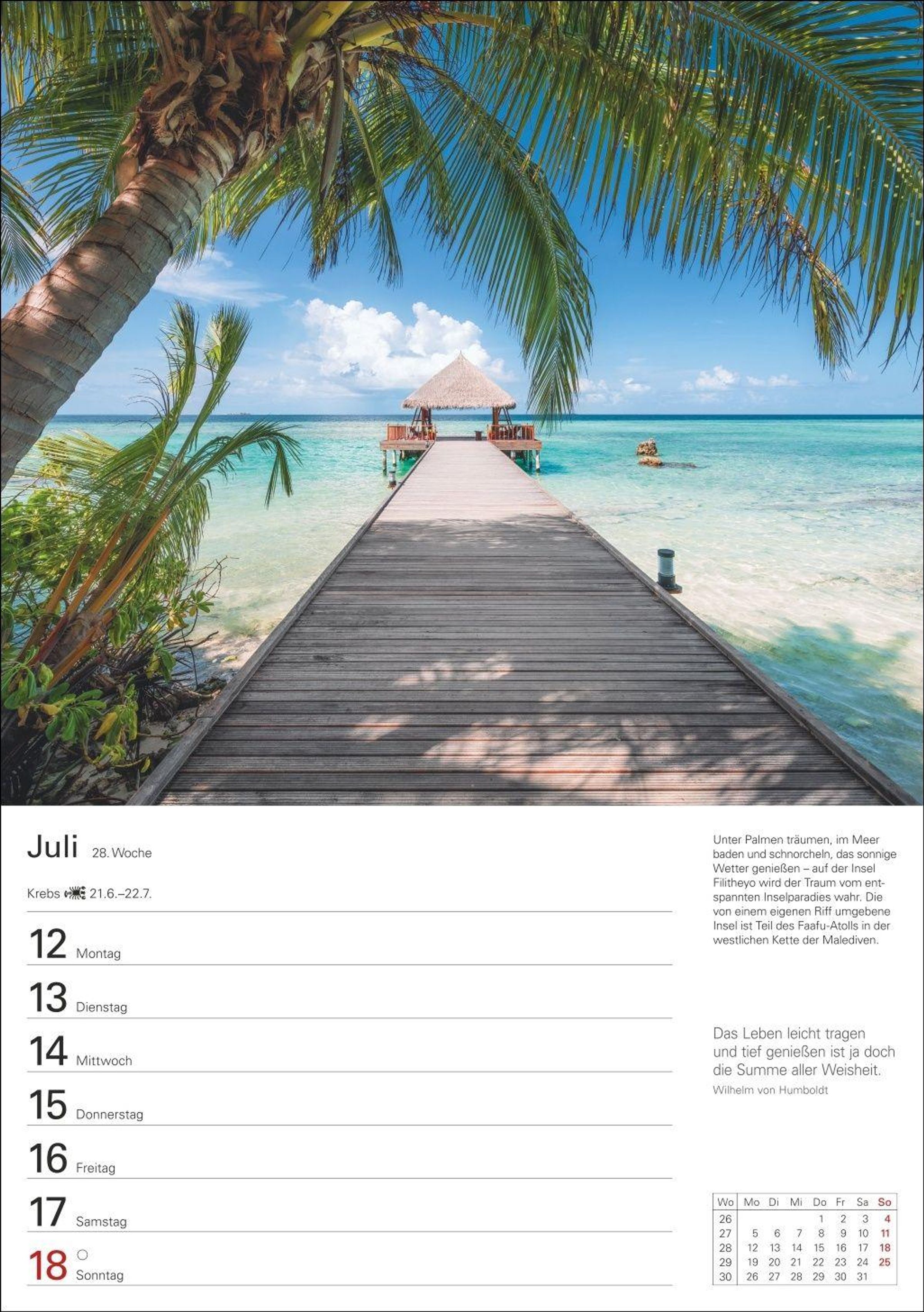 Trauminseln, die einfach an jeder Wand ihren Platz finden: Terminplaner im kompakten 25 x 35, 5 cm Hochformat