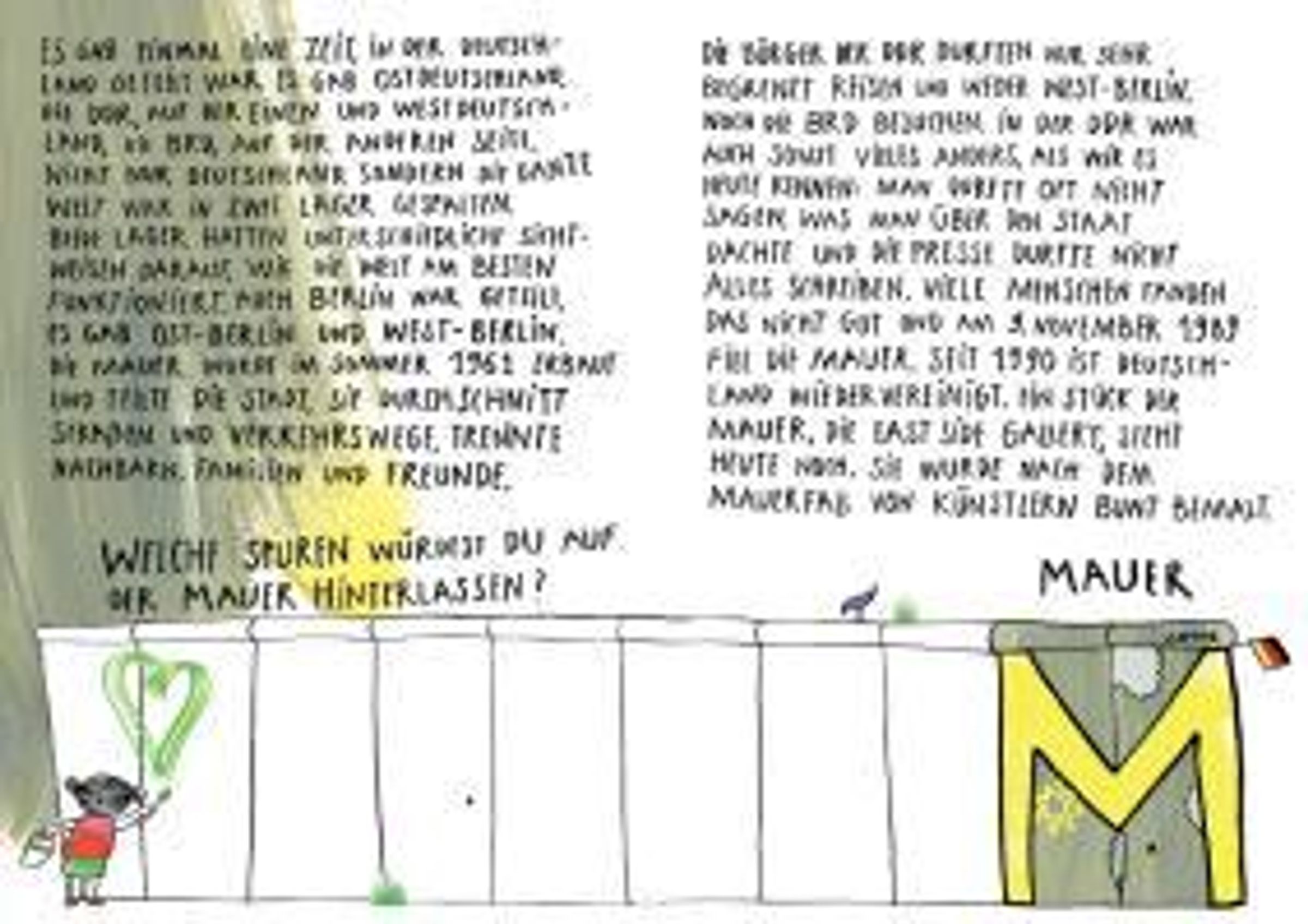 Wer ist Icke und wo ist JWD? Wie riecht der Sommer in Berlin? Was machen Drachen am Tempelhofer Feld? Was liegt am Grund der Spree? Wo wachsen Großstadtpflanzen? Und was hat der Bär mit Berlin am Hut? Das Mitmachbuch "Mit dem ABC durch Berlin." antwortet auf diese und 19 weitere Fragen. In 26 Etappen führen die Illustratorin Ulrike Jensen und die Autorin Elisabeth Wirth neugierige Kinder durch Berlin. Die Stadt ist hier nicht einfach nur eine Metropole. Berlin ist ein kulturelles Ereignis, ein politisches Zentrum, von Geschichte und unterschiedlichen Einflüssen geprägt, Berlin ist ein pulsierendes Verkehrsnetz, ein Freiraum und ein großer Spielplatz. Mit viel Liebe zum Detail hat Ulrike Jensen die Facetten der Stadt eingefangen. Was die Currywurst mit Berlin zu tun hat, warum Berlin einmal durch eine Mauer getrennt war und was Hauptstadt bedeutet, erzählen die Texte von Elisabeth Wirth. Eine turbulente Entdeckungsreise zum Stöbern und Gucken, Lernen, Malen, Basteln und Suchen für Kinder und Berlinliebhaber.