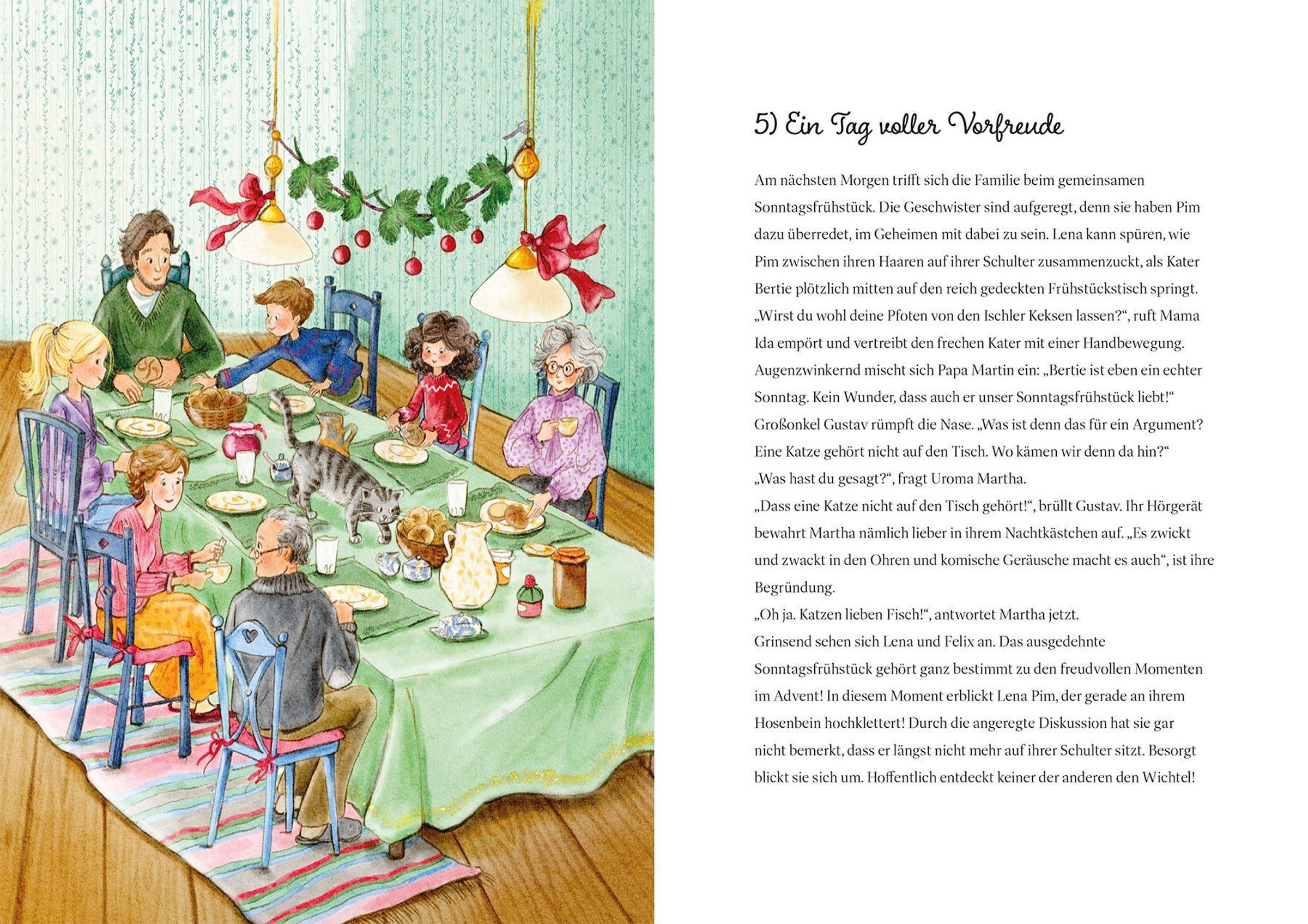 Das Wichtelwunder im Kornstubenhaus: Als Lena und Felix eine grüne Wichteltür entdecken, purzelt unverhofft ein kleiner Wichtel in ihr Leben - tollpatschig, herzensgut und voller lustiger Ideen. Für die Kinder wird die Adventzeit zum Abenteuer: In 24 Kapiteln erleben die Kinder Schabernack in der Backstube, eine Schlittenfahrt im Winterwald und natürlich gibt es köstlichen Wichtelkakao. Gemeinsam arbeiten sie daran, sich und den Bewohnern im Kornstubenhaus die schönste Zeit des Jahres zu schenken.