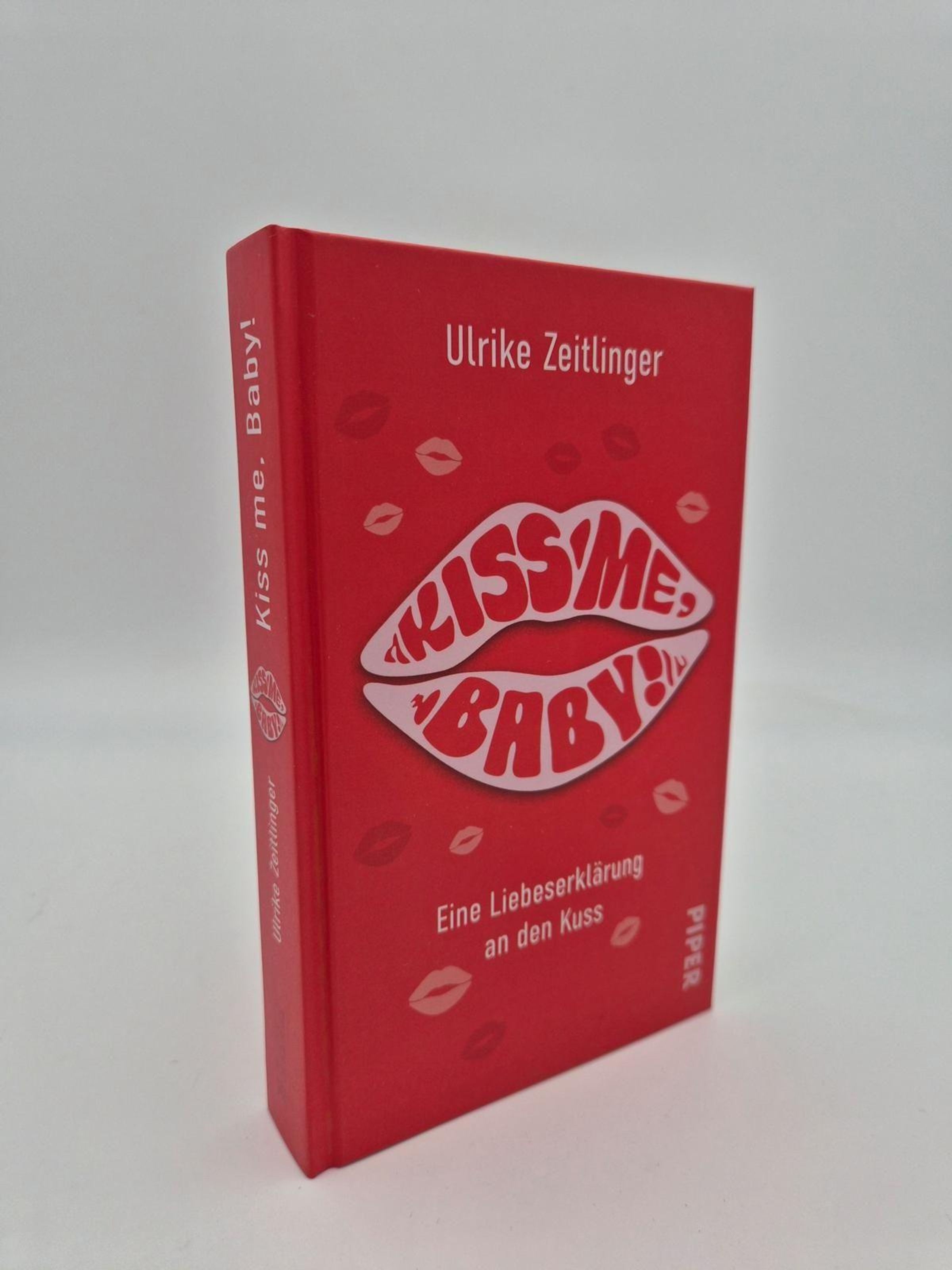 Text: „Ulrike Zeitlinger“, „Kiss me, baby!“, „Eine Liebeserklärung an den Kuss“, „Piper“. Rote Lippen auf rotem Hintergrund., Buch