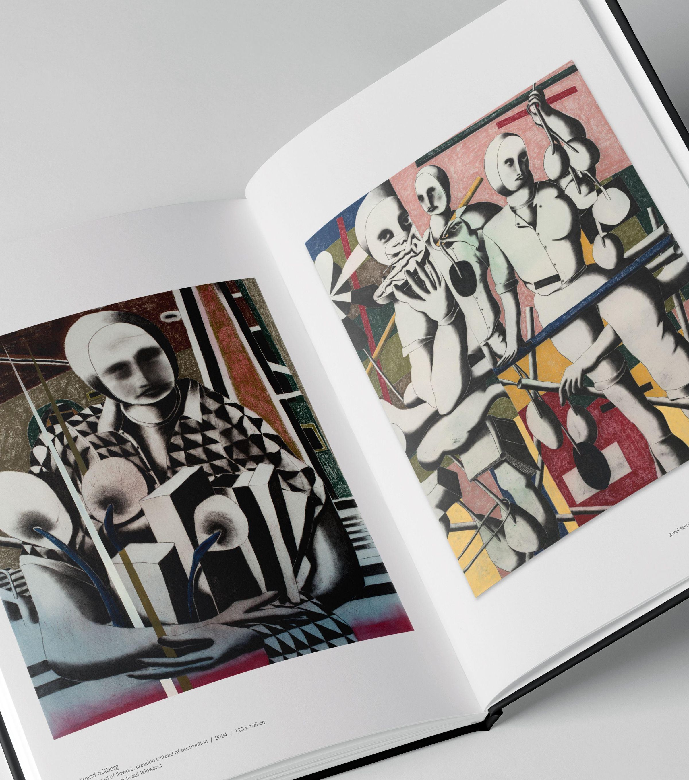 Ferdinand Dölberg stellt in seinen Mixed-Media-Werken die Frage nach Persönlichkeit, nach Individualität in Zeiten von Zersplitterung und Konflikt. Mehrdimensionale Räume, darin spukhafte Figuren und Gesichter und abstrahierte Körperformen der nonbinären Gestalten bestimmen die Arbeiten. Sarah Neumann zeigt einen Airbrush-Werkzyklus, der mit nicht Greifbarem spielt: Inspiration findet sich in Träumen oder fernen Erinnerungen. Verletzbarkeit und taumelnde Sicherheiten bestimmen die Werke beider Künstler. Ein facettenreicher Katalog zweier aufstrebender Kunstschaffender zu einer Ausstellung im Kunstverein Ulm.