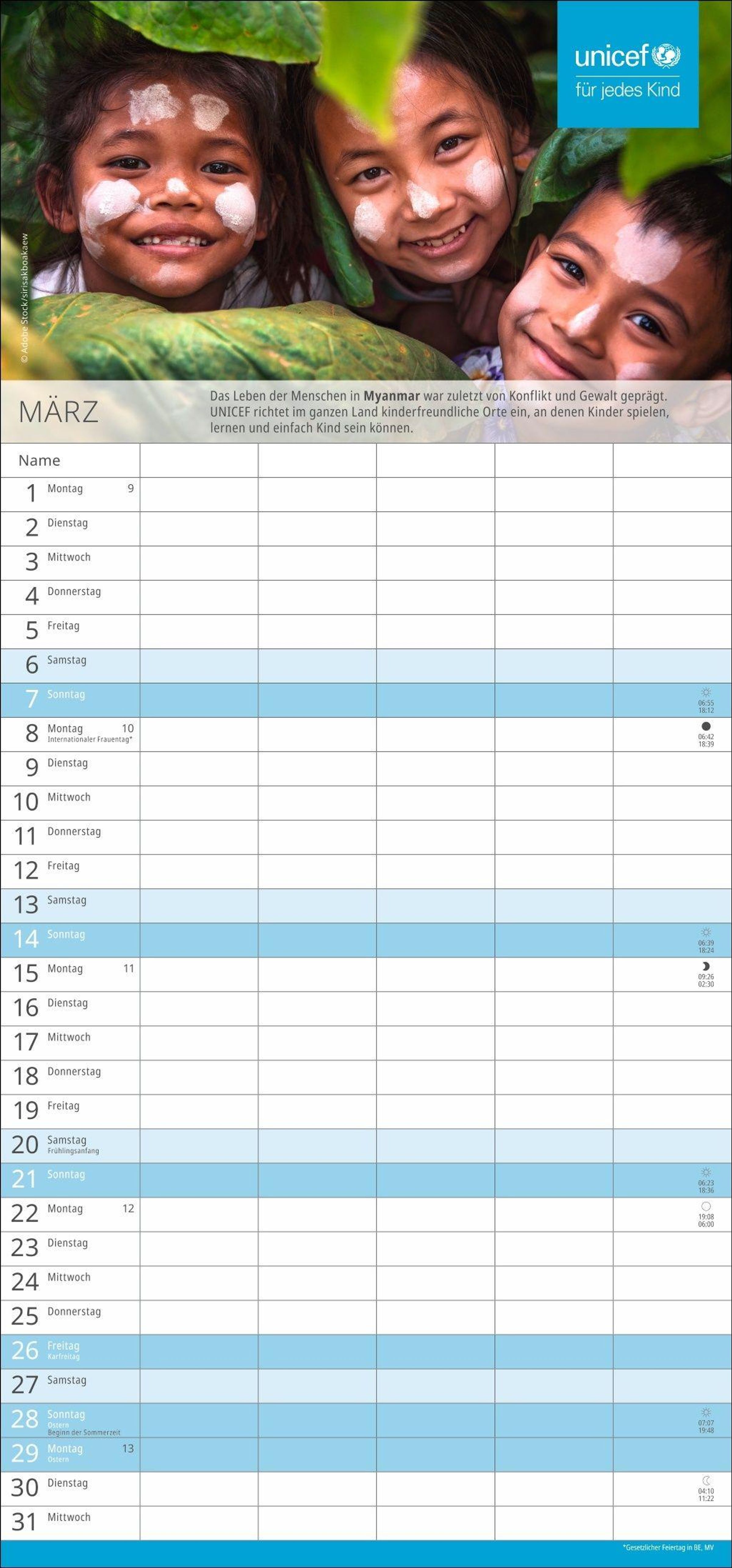 Spenden Sie Hoffnung: Mit dem Kauf des Familien-Wandkalenders unterstützen Sie UNICEF und damit humanitäre Hilfe in über 190 Ländern