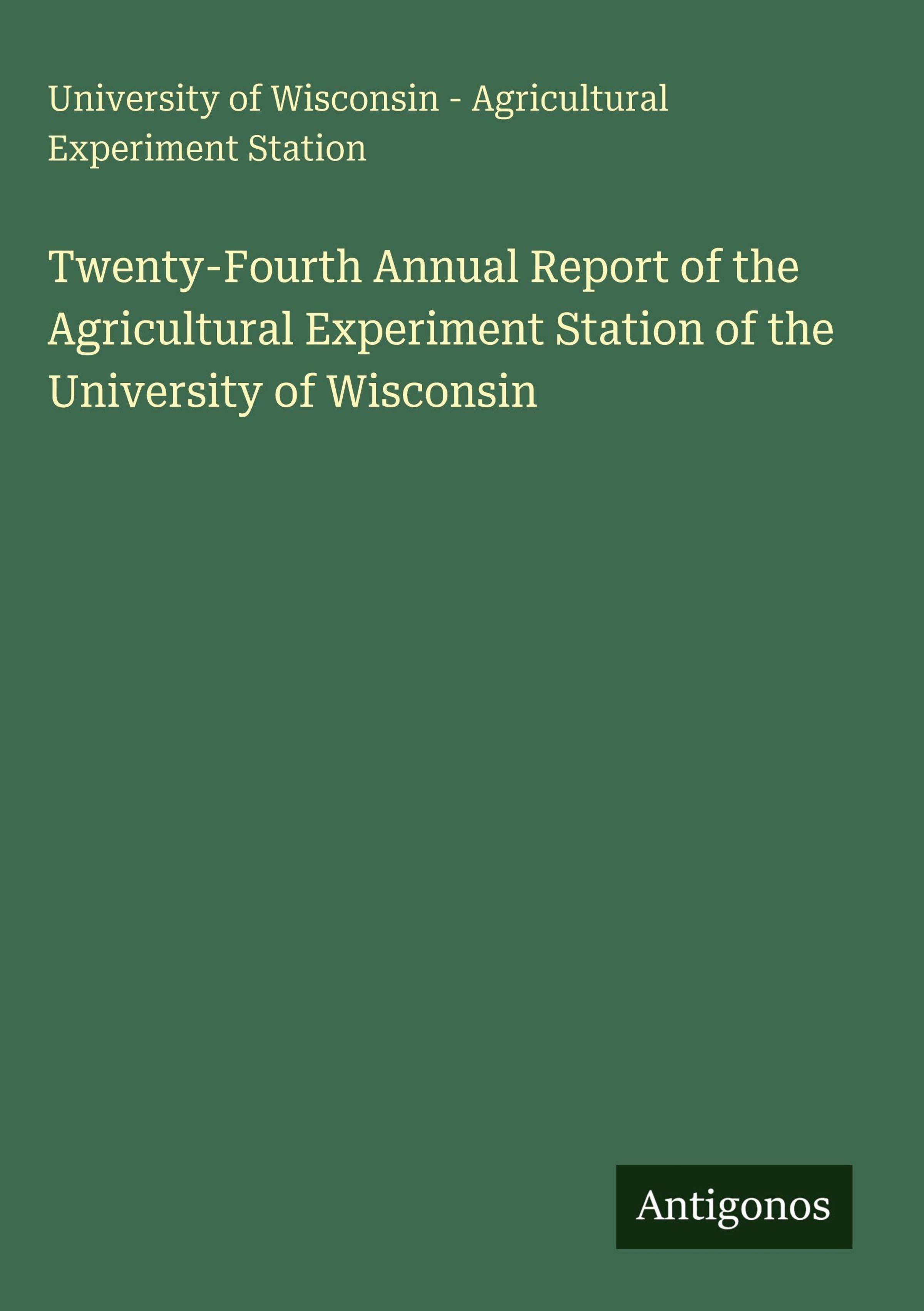 University of Wisconsin - Agricultural Experiment Station: Twenty-Fourth Annual Report of the Agricultural..., Gebunden
