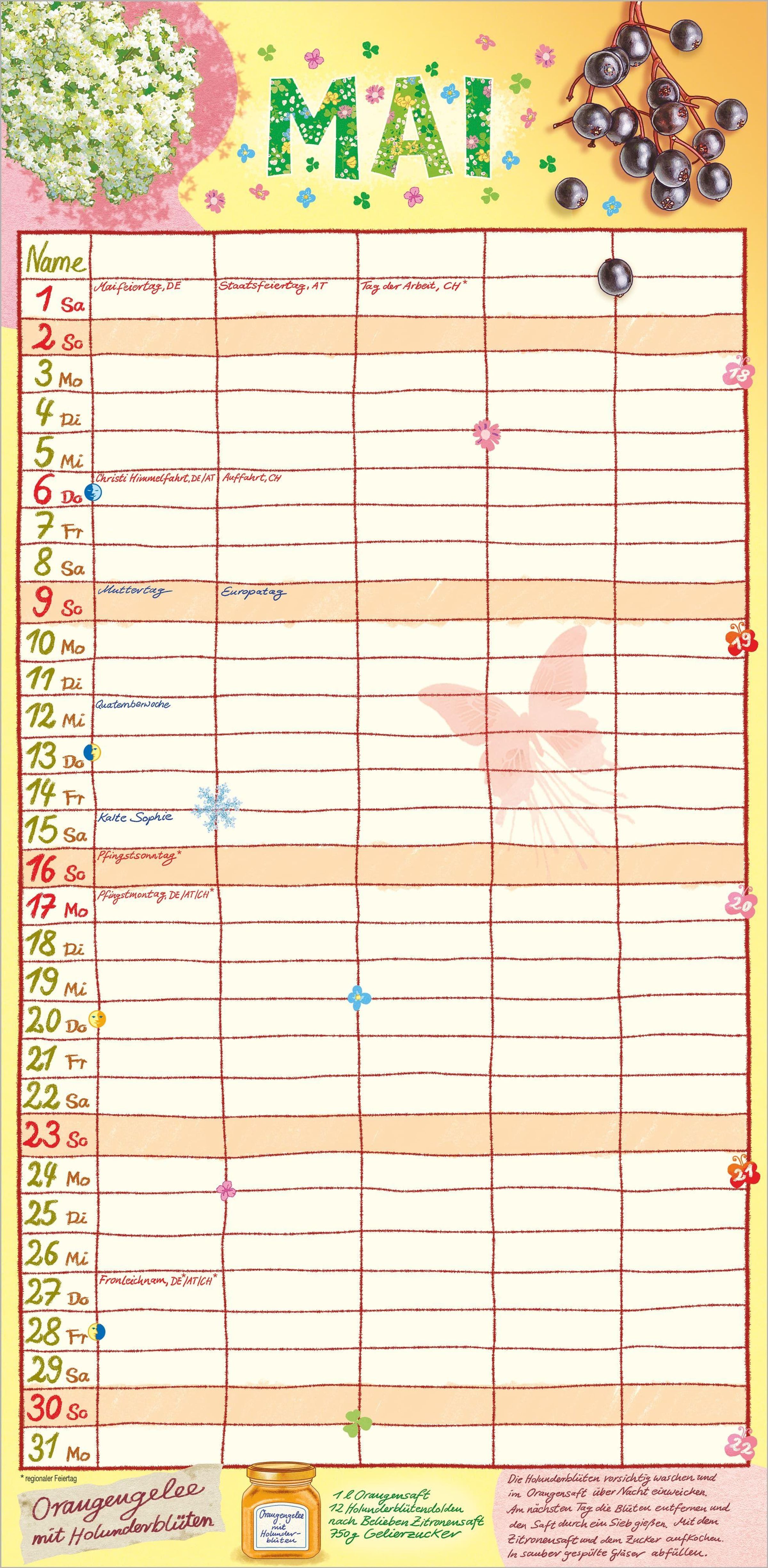 Das große Format von 22 x 45 cm bietet ausreichend Platz für Termine, Geburtstage, Arztbesuche oder Familienausflüge. Passend zur Jahreszeit und zu besonderen Festen sorgt der Illustrator Frank Bayer mit seinen farbenfrohen, stimmungsvollen Bildern Monat für Monat für gute Laune. Das deutschsprachige Kalendarium enthält alle Feiertage für Deutschland, Österreich, die Schweiz, Frankreich und Italien -- inklusive Ferientermine für eine perfekte Planung.