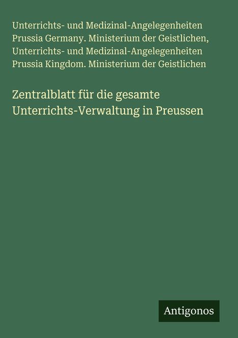 Unterrichts- und Medizinal-Angelegenheiten Prussia Germany. Ministerium der Geistlichen: Zentralblatt für die..., Gebunden
