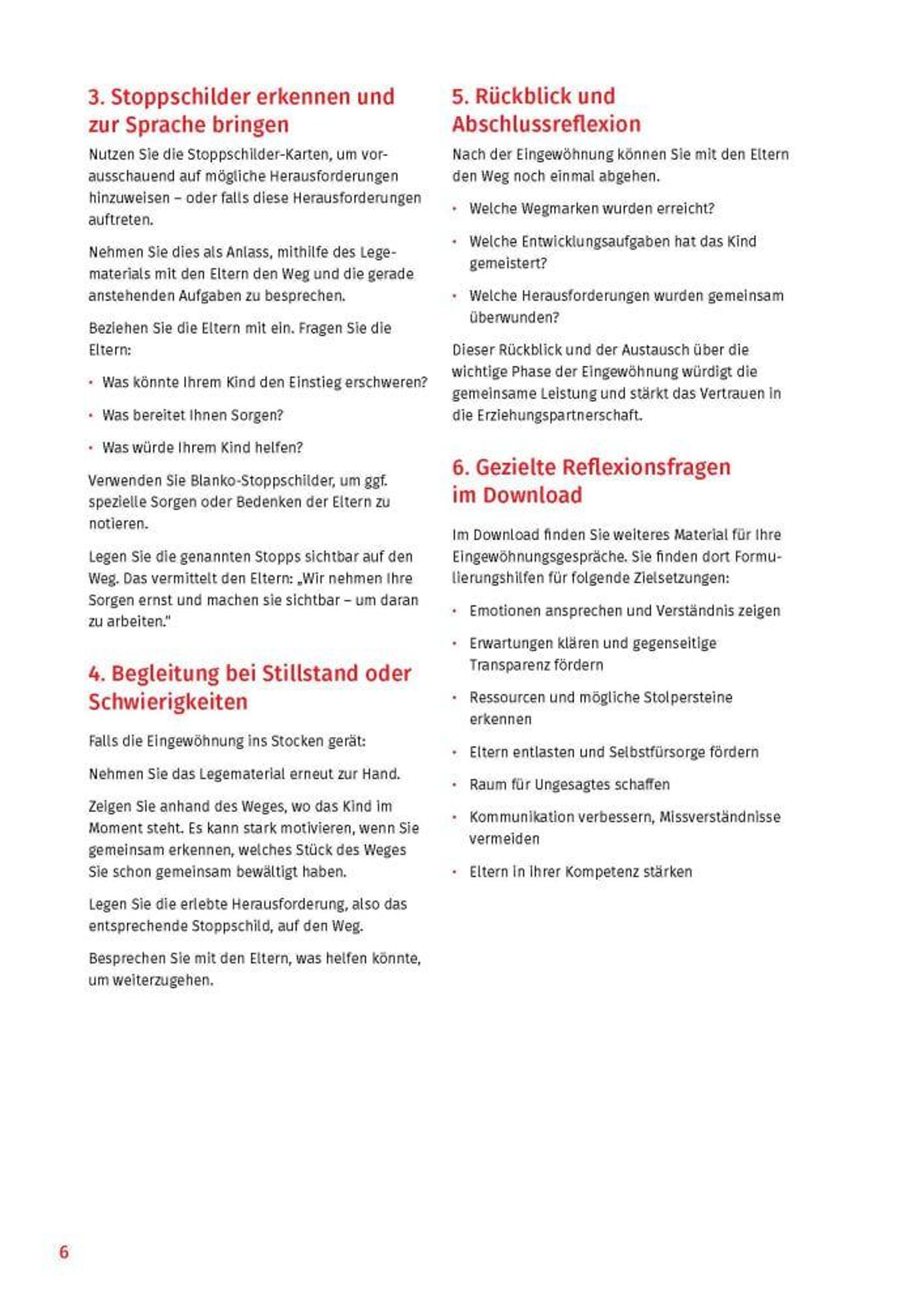 - Der Weg zur Kita: Was sind die Aufgaben der Fachkräfte und der Eltern? Welche Entwicklungsaufgaben bewältigt das Kind? Wo braucht das Kind Unterstützung?