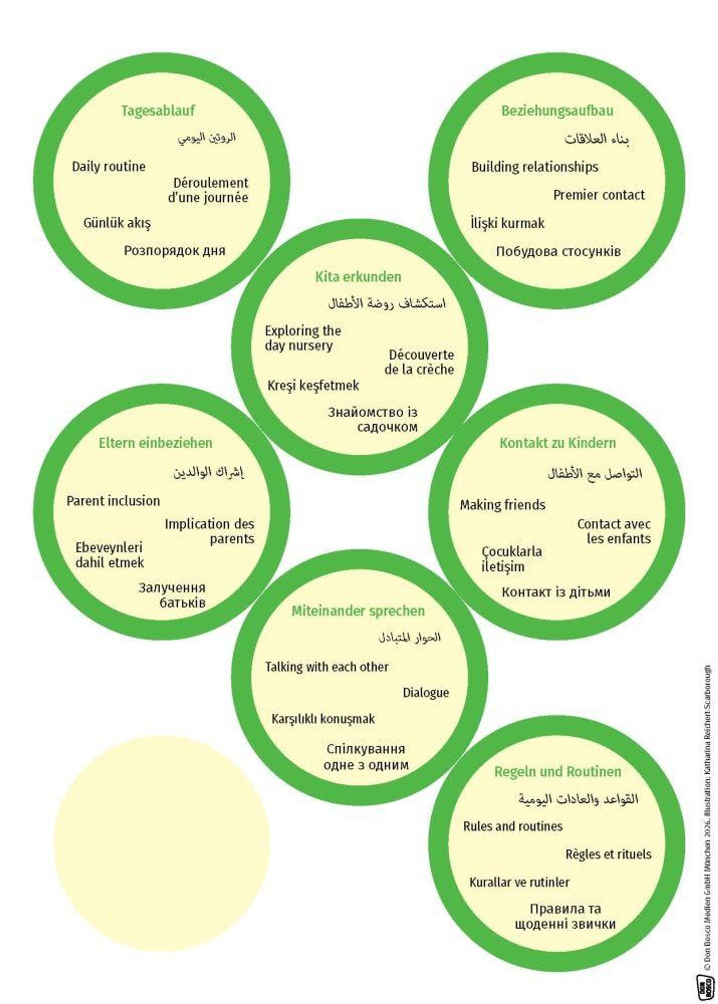 - Bildvorlagen für Elterngespräche zur Transition in die Kita mit Begriffen in 5 Sprachen