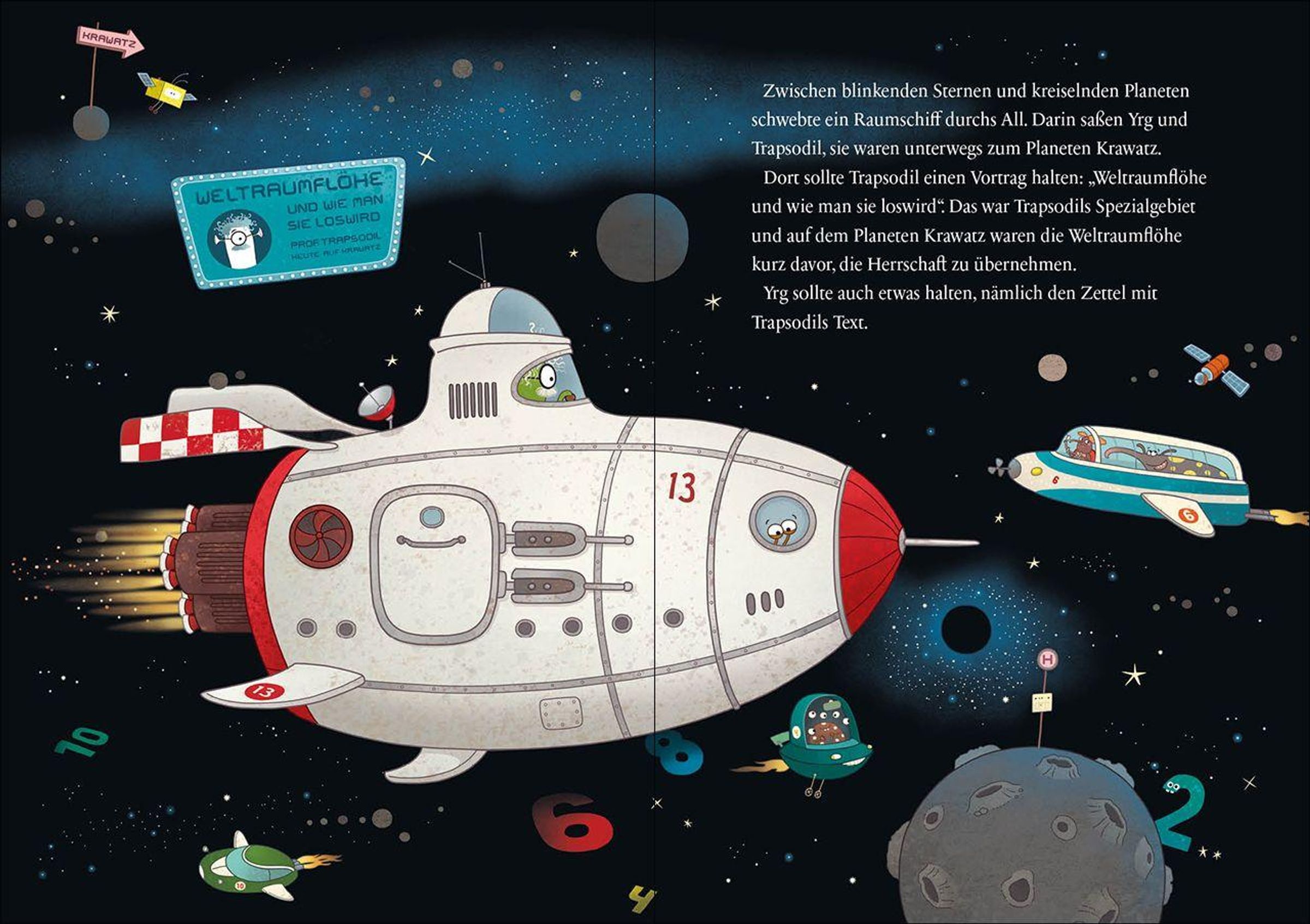 "Zahlen Allerlei" von Ursula Poznanski und Sabine Büchner. Bunte, skurrile Figuren und Zahlen im Weltraum, Loewe-Logo unten., Buch