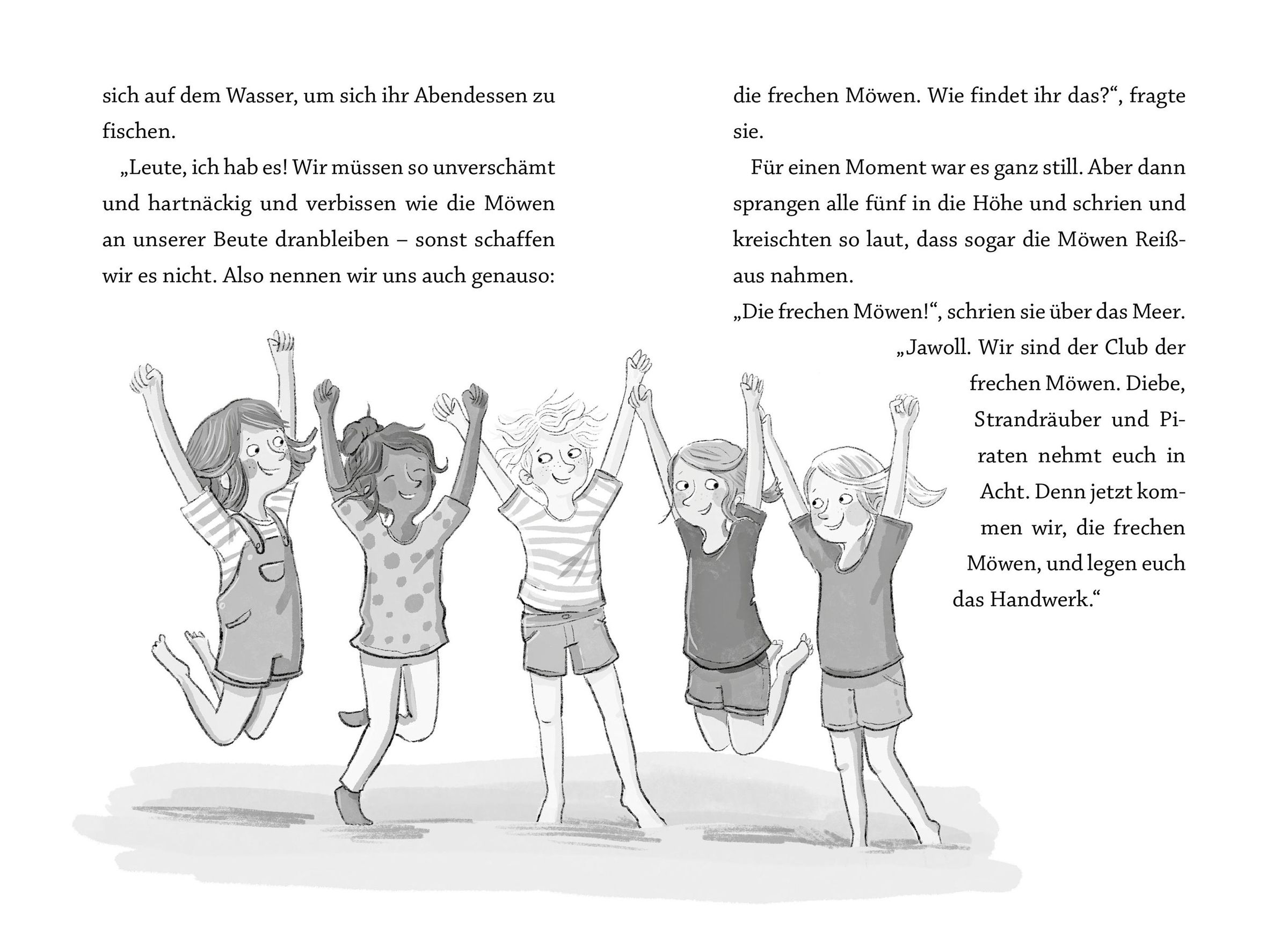 Ferienzeit und die Urlaubskasse ist leer! Stella und Rosalie rechnen schon mit einem Urlaub auf Balkonien, aber zum Glück hat eine Kollegin ihrer Mutter auf einer Nordseeinsel ein Ferienhaus geerbt und keine Zeit, selbst hinzufahren. Also geht es zusammen mit Familienkater Kasimir auf Reisen. Doch schon die Ankunft im >>Haus Sturmmöwe<< ist abenteuerlich. Wie gut, dass Stella und Rosalie schon neue Freunde gefunden haben: Nachbarsjunge Enno sowie die ungleichen Cousinen Naima und Elin. Gemeinsam gründen die fünf den Club der frechen Möwen. Bei einem ihrer Streifzüge finden sie heraus, dass in letzter Zeit immer wieder Robbenjunge von der nahegelegenen Aufzuchtstation verschwinden. Sie beschließen, der Sache auf den Grund zu gehen, und finden sich bald mitten in einem spannenden Inselabenteuer.