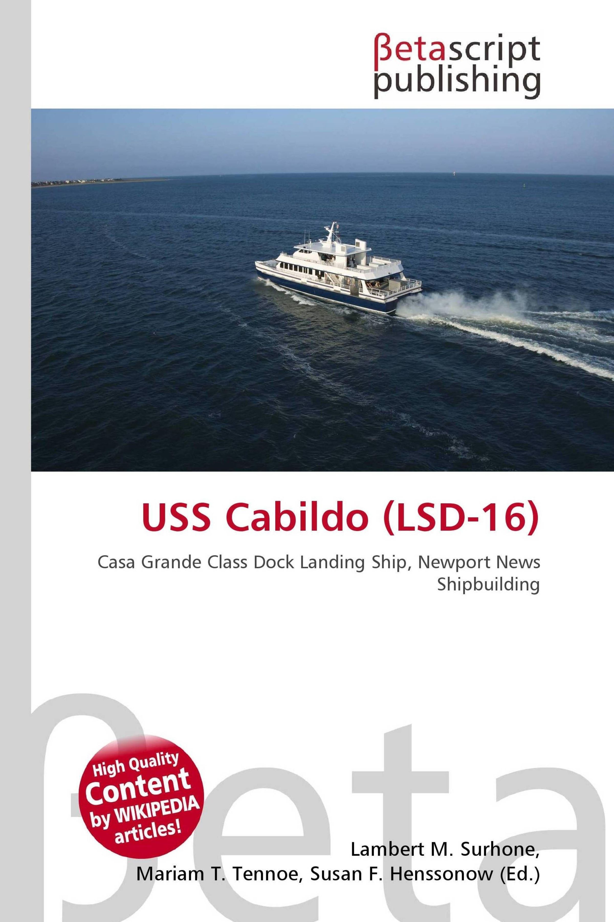 Please note that the content of this book primarily consists of articles available from Wikipedia or other free sources online. USS Cabildo (LSD-16) was a Casa Grande-class dock landing ship of the United States Navy. She was named for The Cabildo in New Orleans, the old town hall and now a historical museum, where the formal transfer of the Louisiana Territory from France to the United States took place. Cabildo was laid down on 24 July 1944 by Newport News Shipbuilding and Drydock Co., Newport News, Virginia; launched on 22 December 1944, sponsored by Miss A. B. Pendleton; and commissioned on 15 March 1945, Commander E. B. Holdorff, USNR, in command.