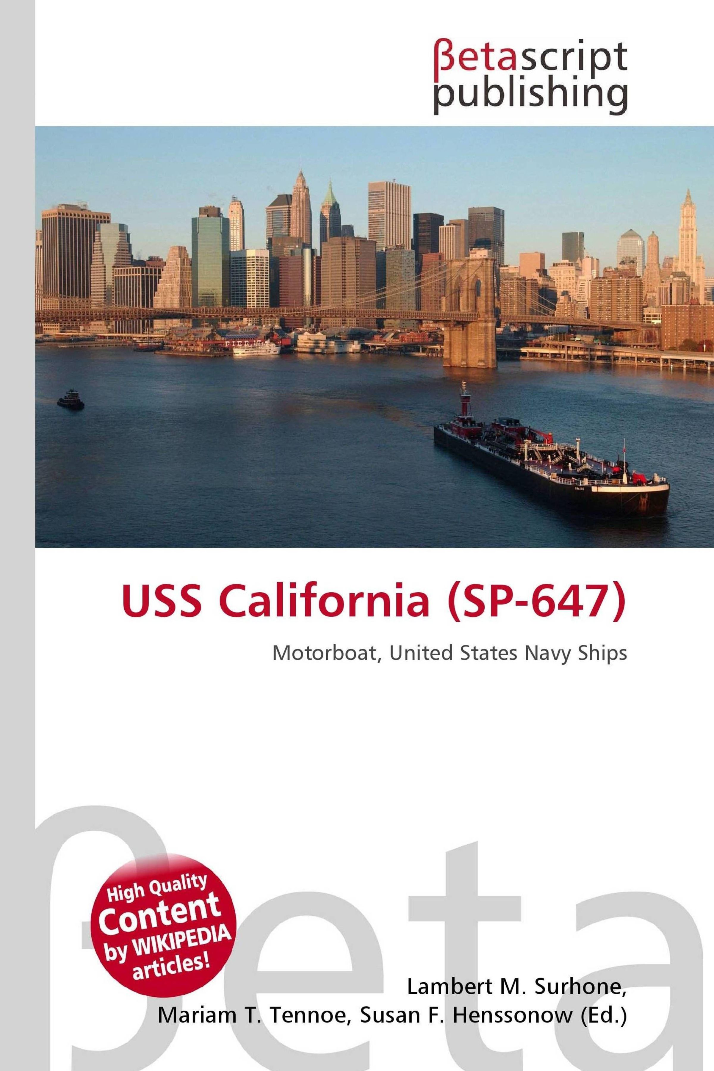 Please note that the content of this book primarily consists of articles available from Wikipedia or other free sources online. USS California (SP-647) -- later known as USS SP-647 -- was originally a motorboat used by the San Francisco Bar Pilot's Association as a pilot boat. She was leased by the Navy, and outfitted as an armed patrol craft, assigned to patrol and protect San Francisco harbor. At war's end, she was returned to the pilot's association. California, a 58' 2" motorboat, was built in 1910 at San Francisco, California, for local employment as a pilot boat. She was leased from the San Francisco Bar Pilot's Association and commissioned in the Navy as USS California (SP-647) on 28 April 1917.