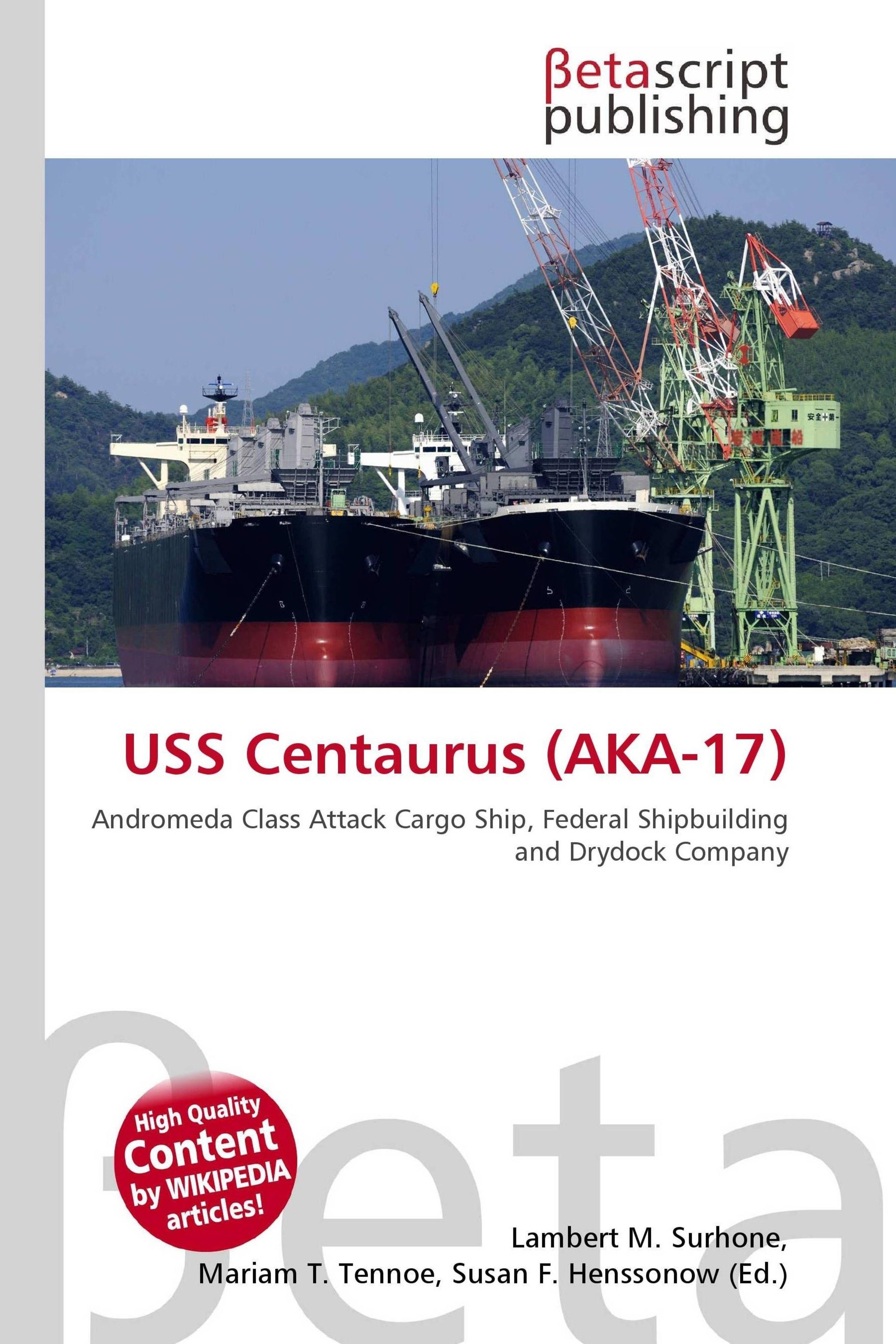 „USS Centaurus (AKA-17)“, „High Quality Content by WIKIPEDIA articles!“. Frachtschiff mit Kränen vor bewaldeten Hügeln., Buch
